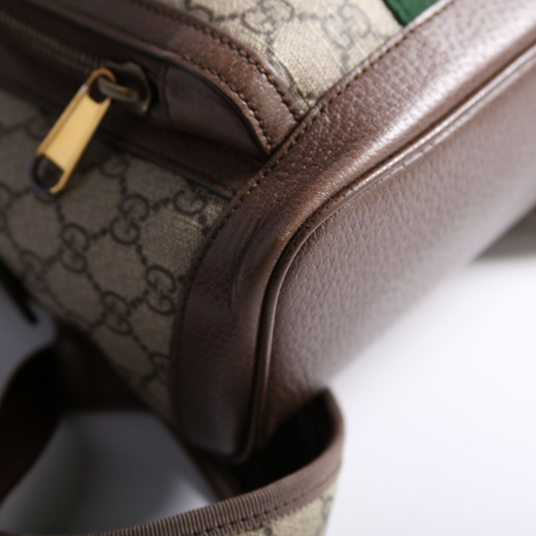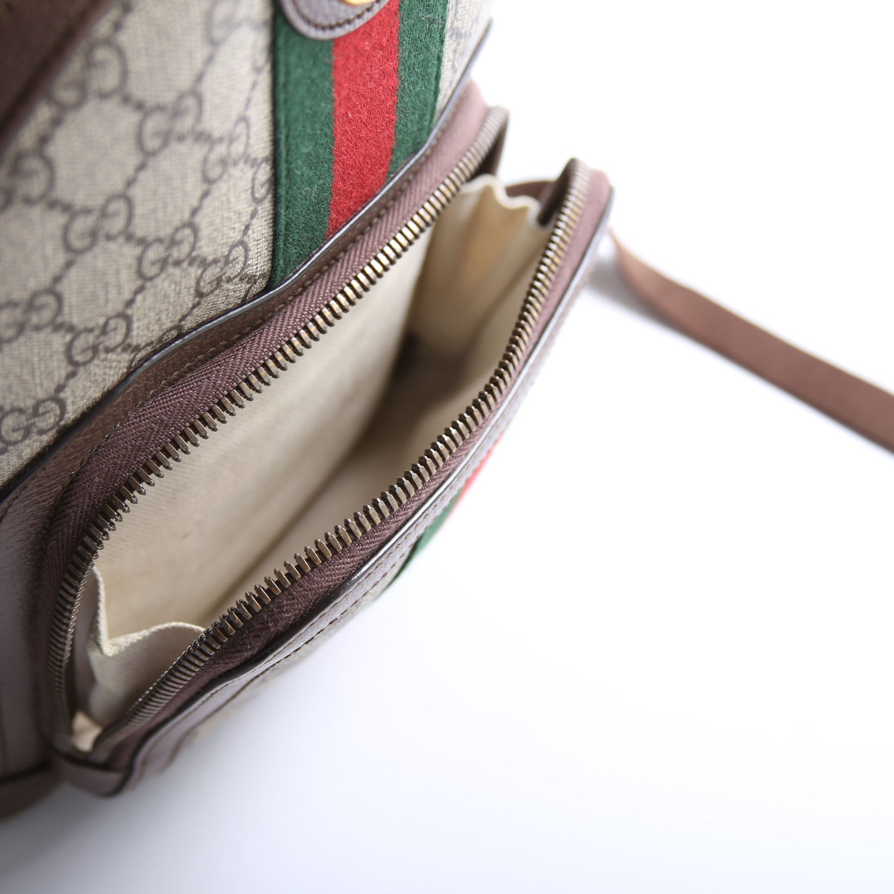 This pre-owned Gucci Ophidia Backpack is guaranteed 100% authentic. The exterior is in the classic Gucci GG Supreme coated canvas.