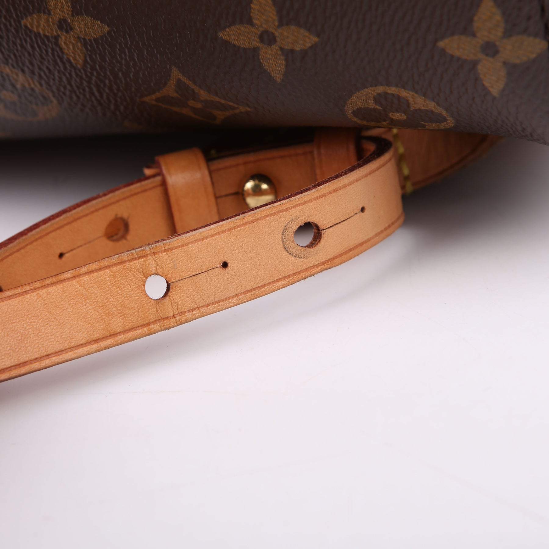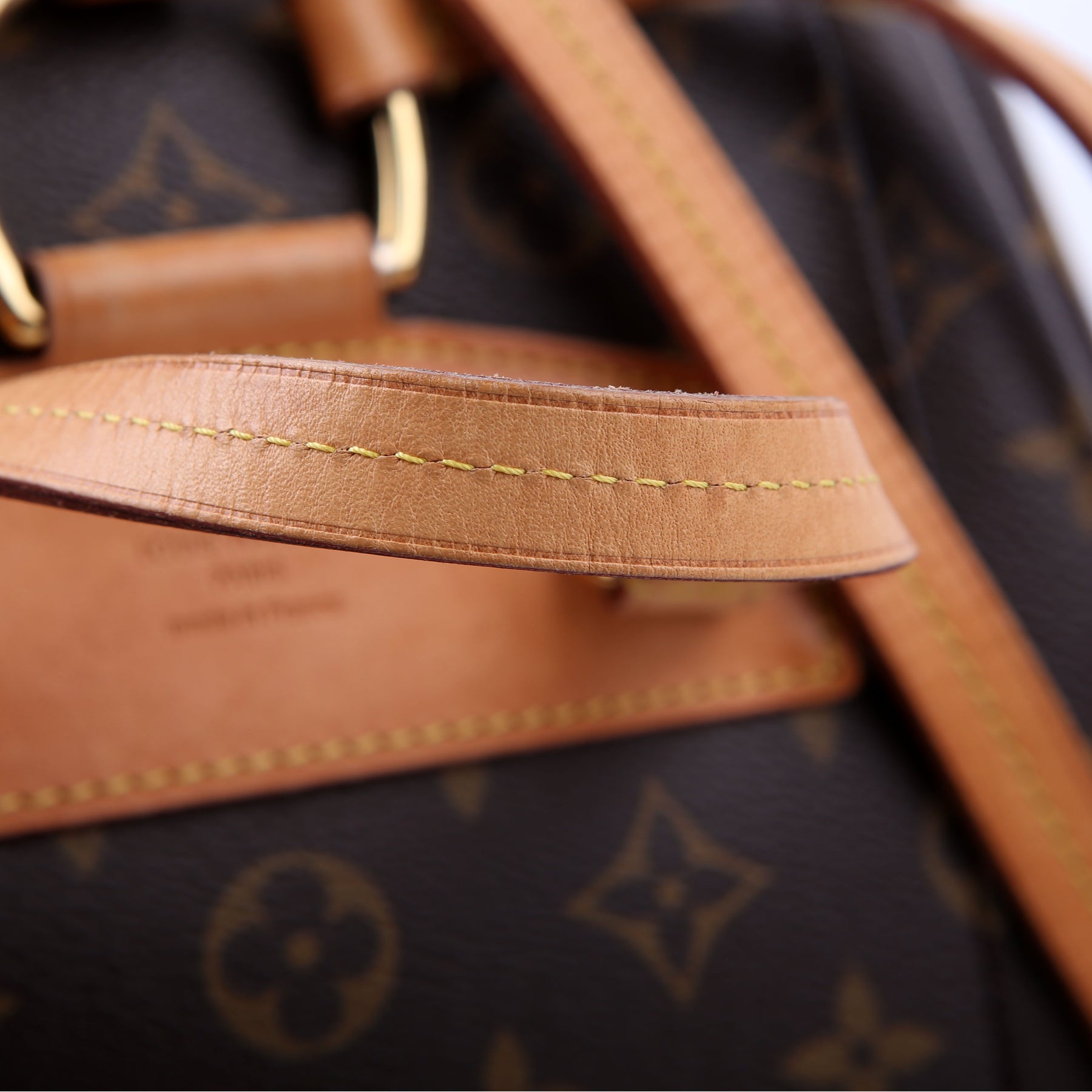This pre-owned Louis Vuitton Montsouris PM NM is guaranteed 100% authentic. The exterior is in the classic Louis Vuitton Empreinte leather.