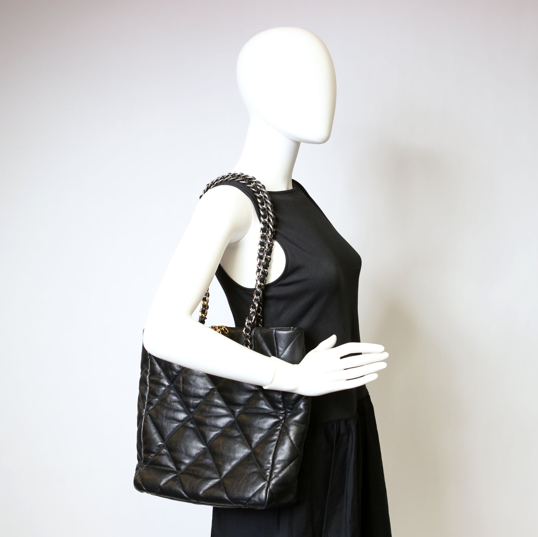 Chanel 19 Quilted Goatskin N/S Shopping Tote Black