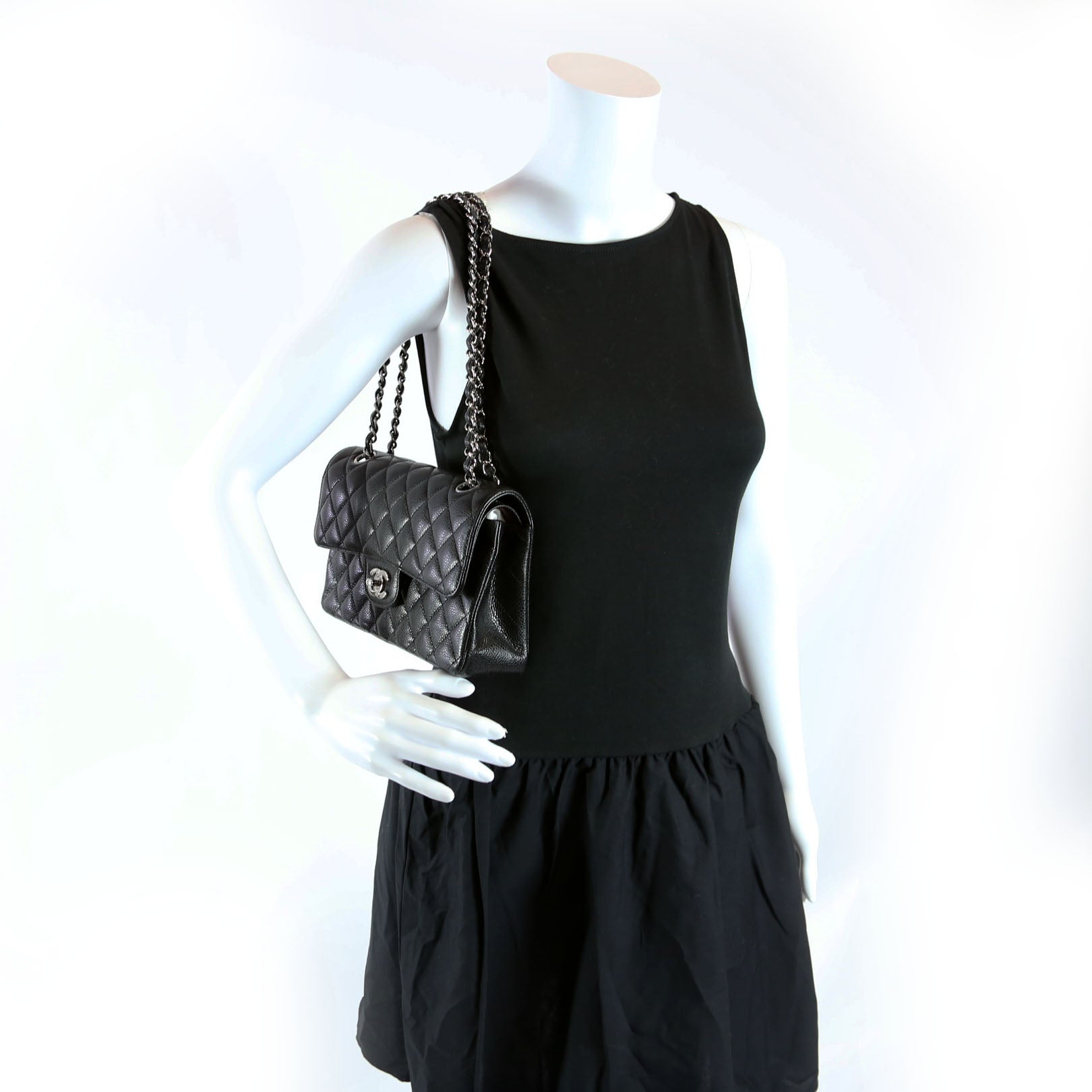 Classic Flap Small Caviar 31M Black/Silver
