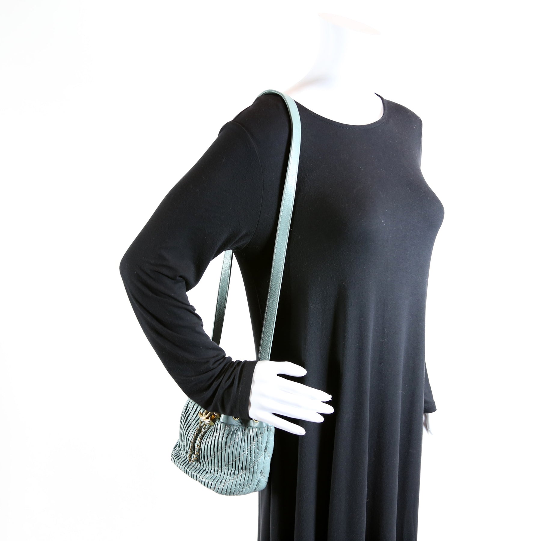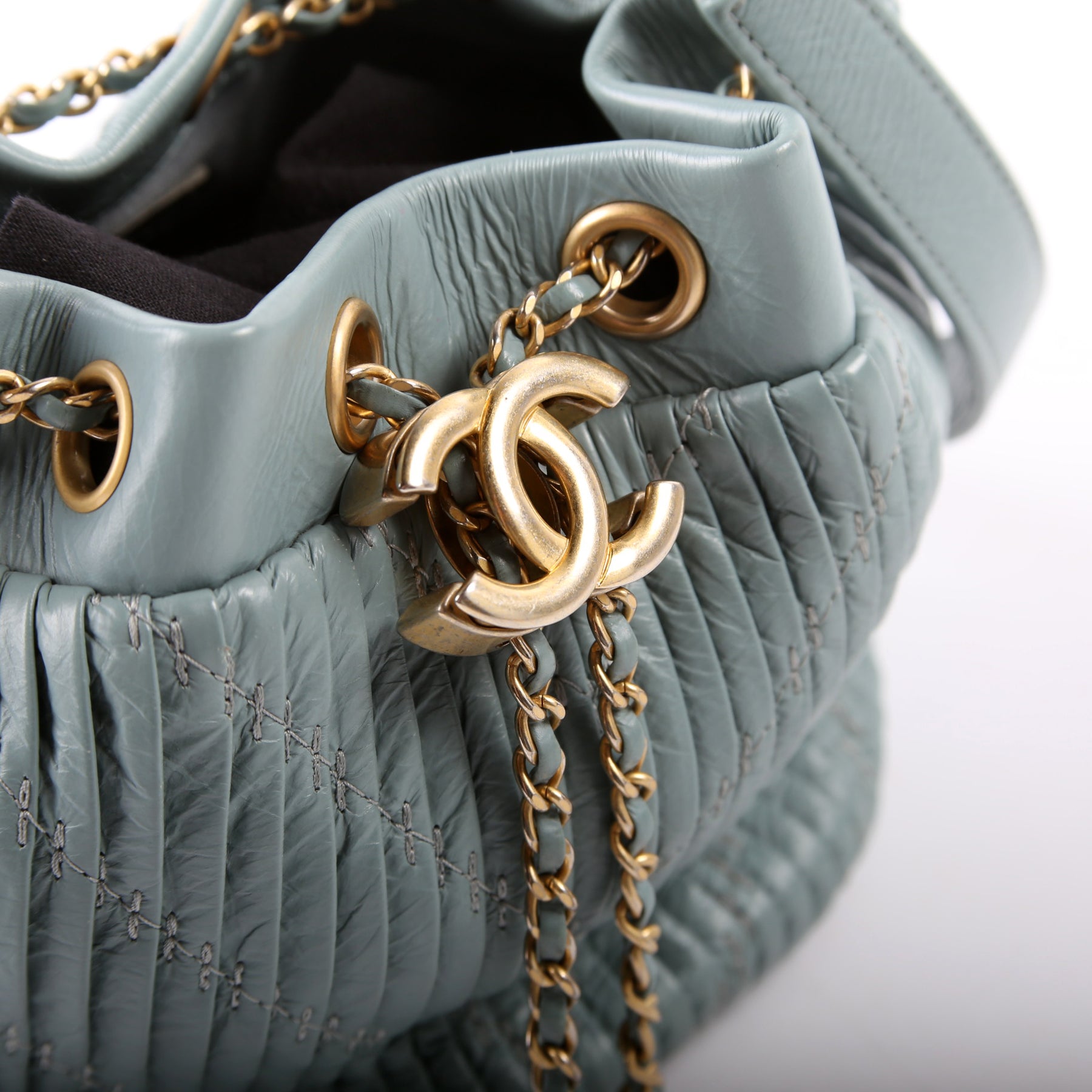 This pre-owned Chanel Coco Pleats Drawstring Bag is guaranteed 100% authentic.