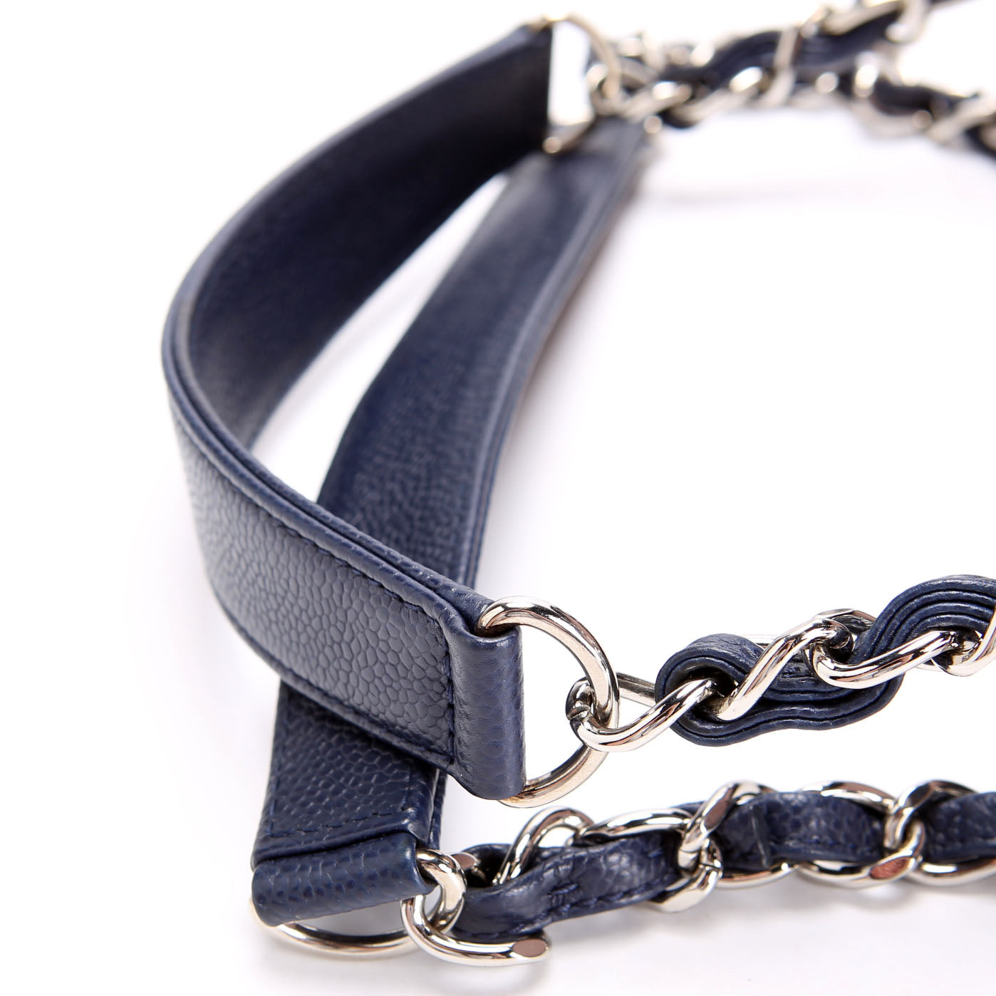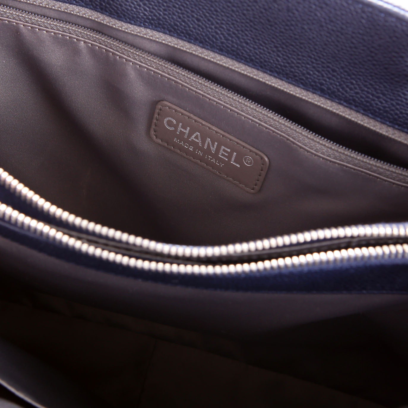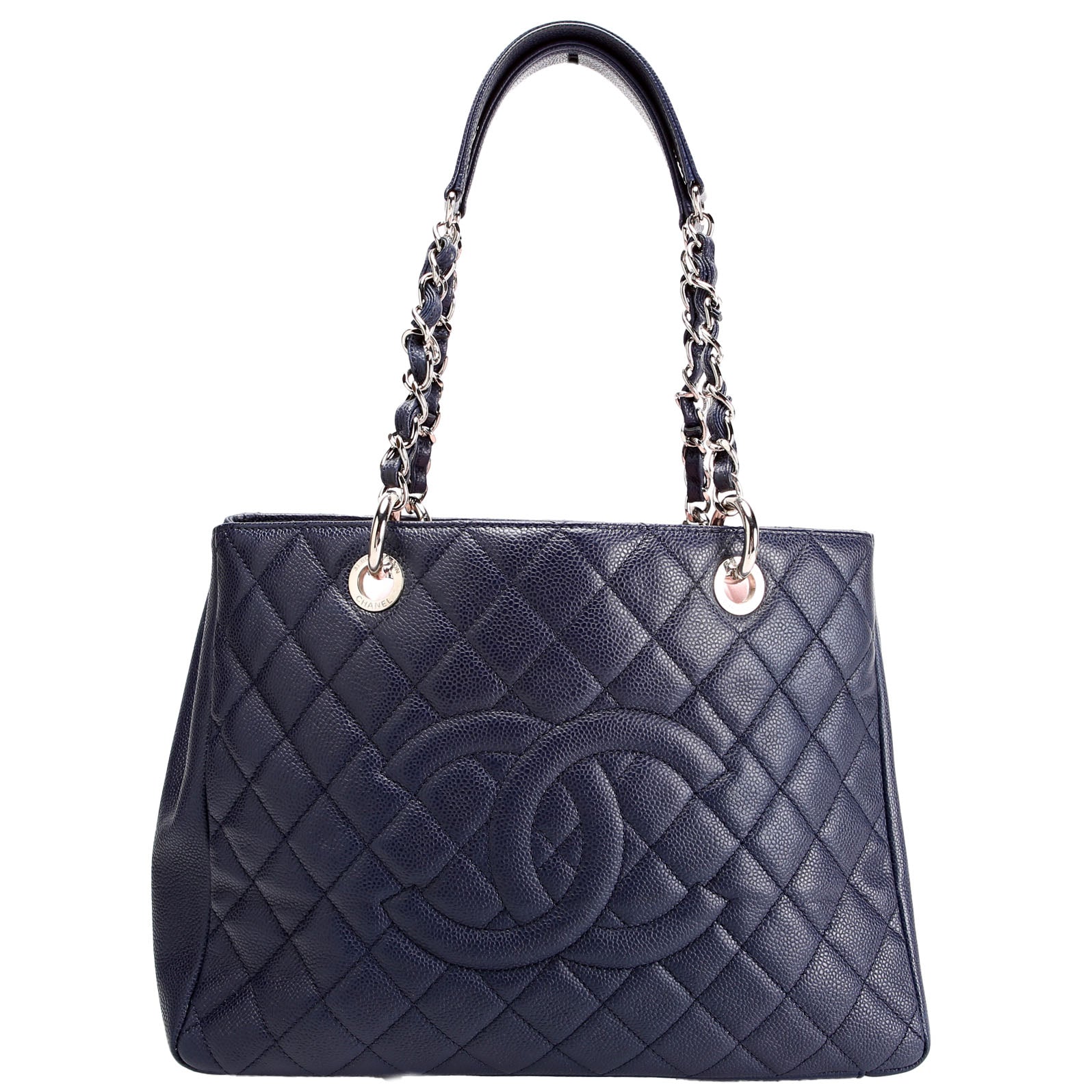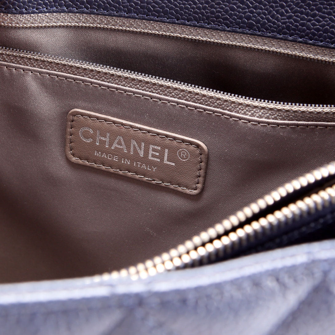 Grand Shopping Tote Caviar 18M Navy/Silver