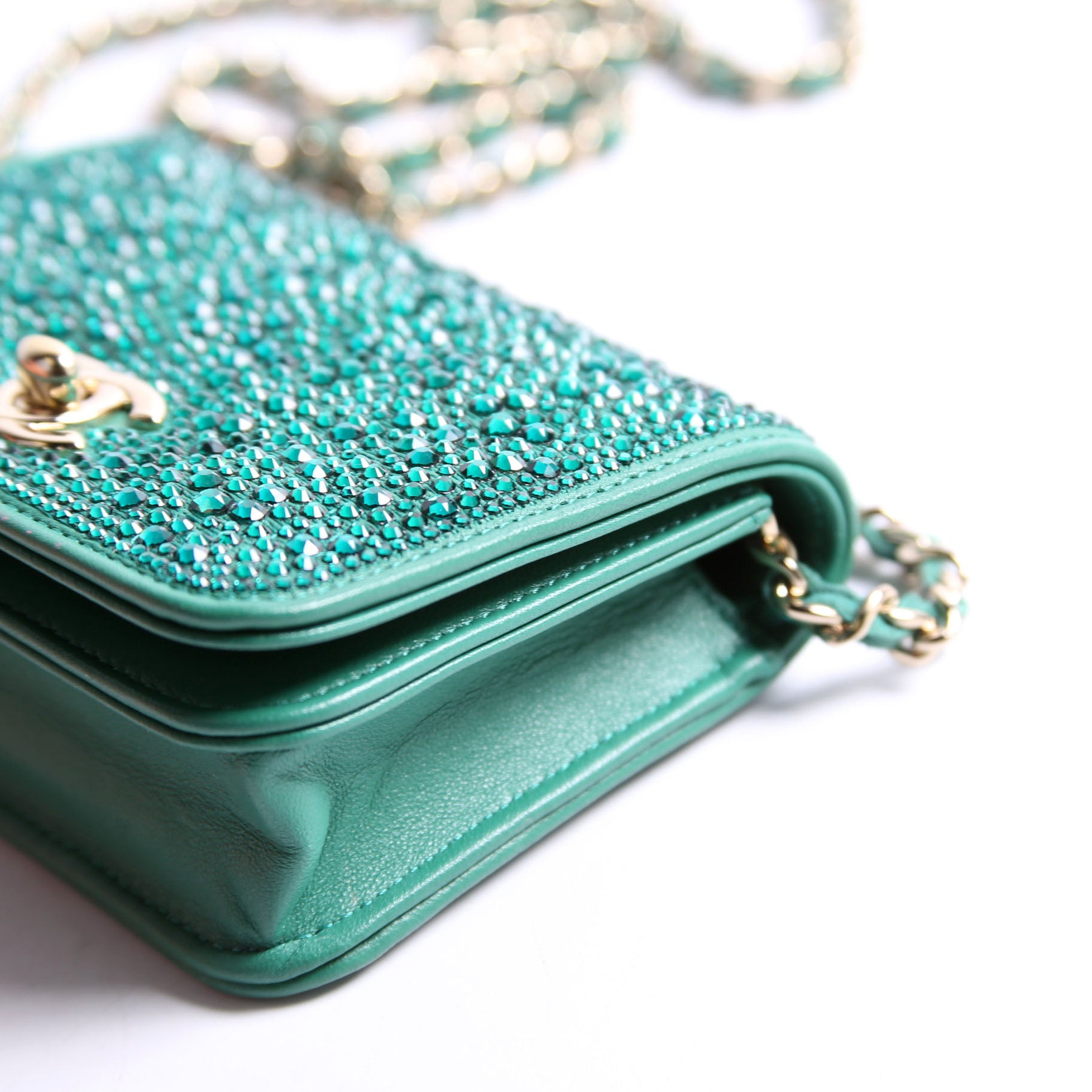 Strass Diamante Mini Clutch Lambskin RFID Green