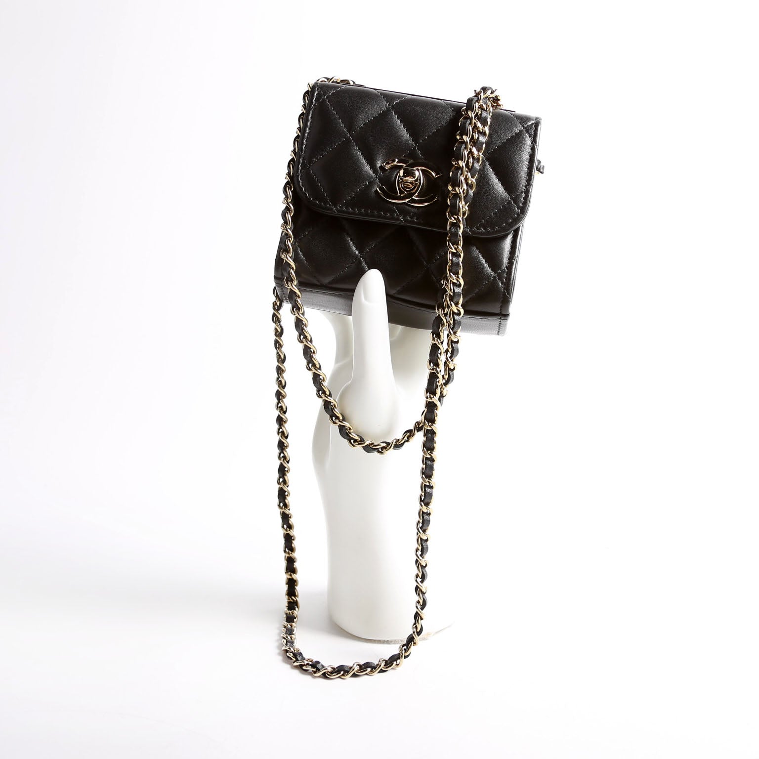 This pre-owned Chanel Trendy CC Clutch With Chain is guaranteed 100% authentic. The exterior is in the classic Chanel Quilted Lambskin leather.