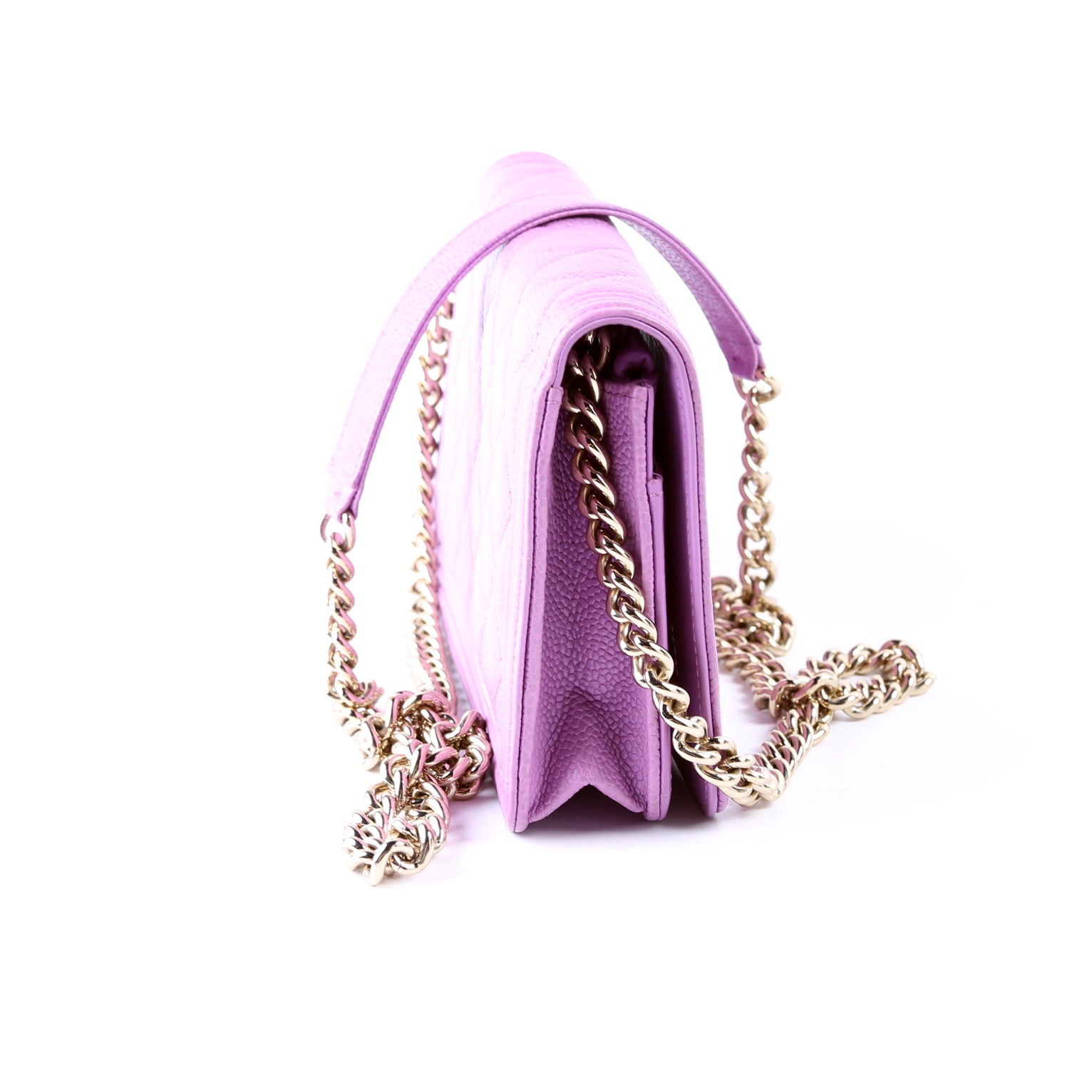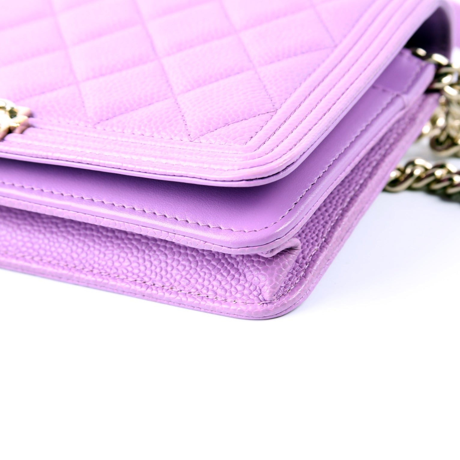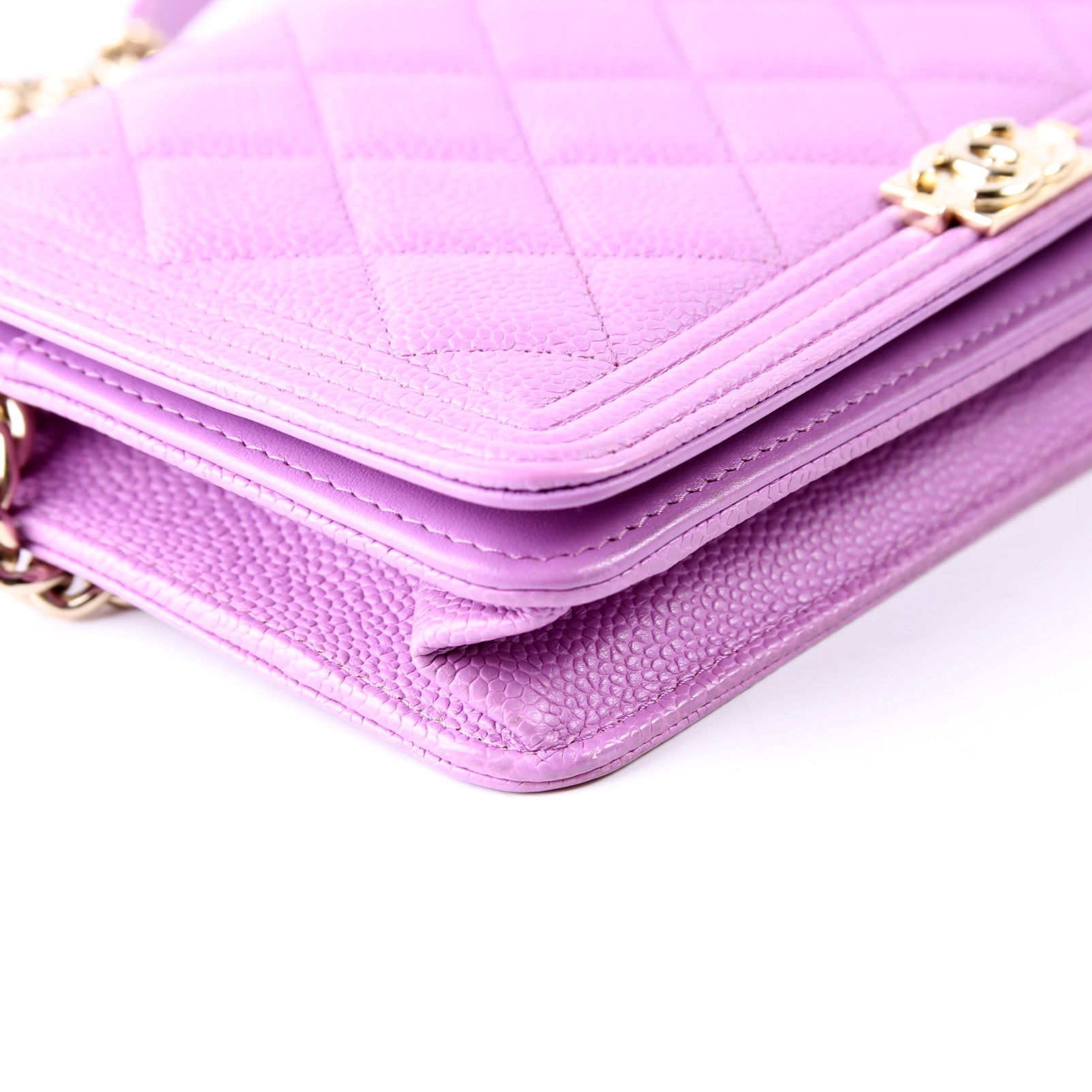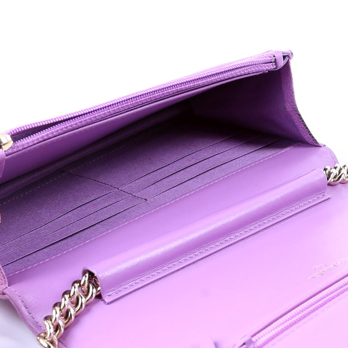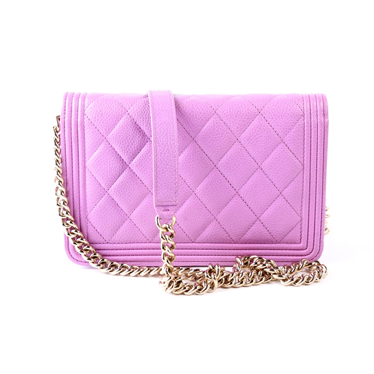 This pre-owned Chanel WOC Boy is guaranteed 100% authentic. The exterior is in the classic Chanel Caviar leather.