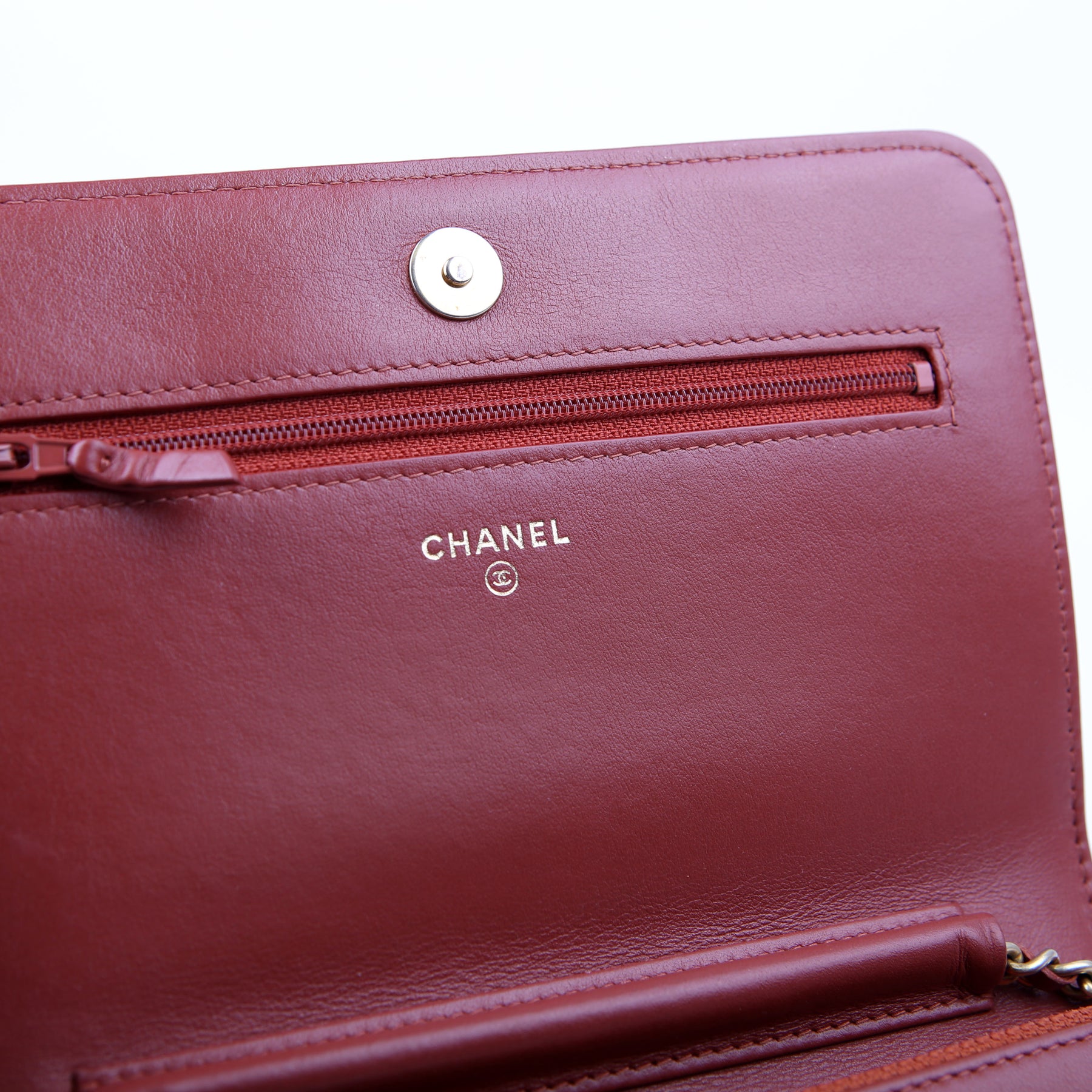 Interior: The interior is clean and free of rips or tears. The interior features two zip closure pocket and two open pockets. The leather has minor wear from the zipper.