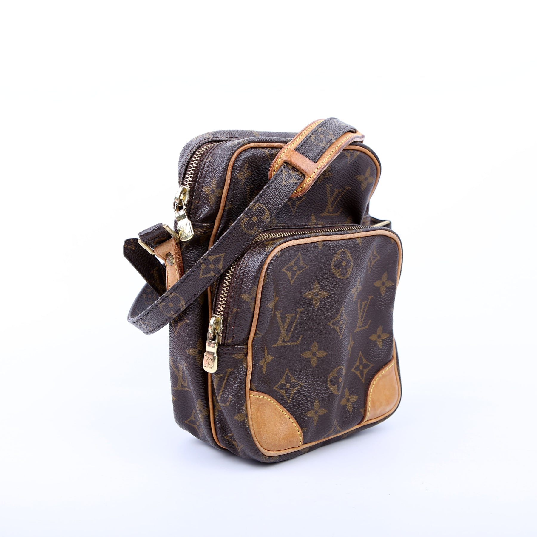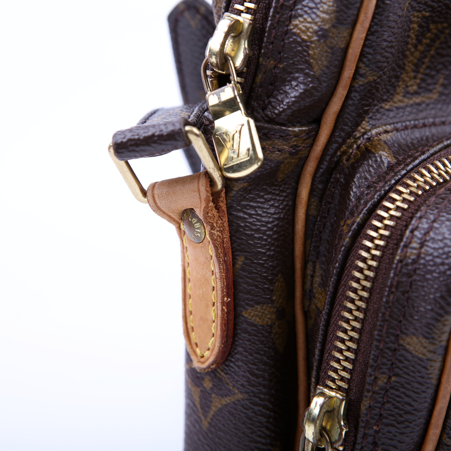 This pre-owned Louis Vuitton Amazone is guaranteed 100% authentic. The exterior is in the classic Louis Vuitton Monogram coated canvas.