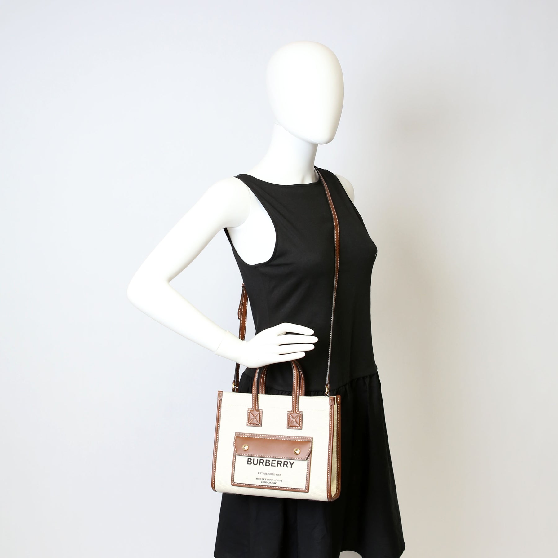This pre-owned Burberry Freya Canvas Mini Tote is guaranteed 100% authentic.