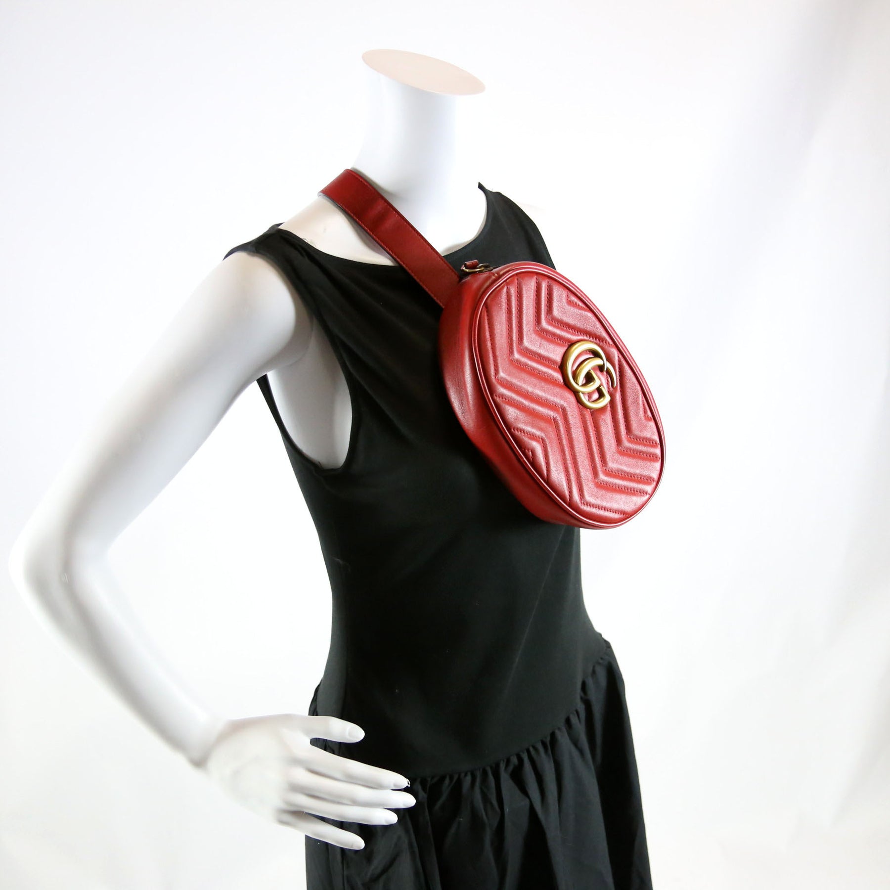 This pre-owned Gucci Marmont Large Belt Bag is guaranteed 100% authentic. The exterior is in the classic Gucci Matelasse Chevron Leather.