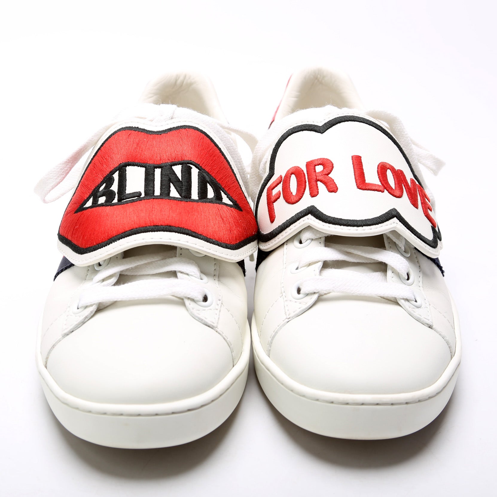 These pre-owned Gucci Ace Web Blind For Love Sneakers are guaranteed 100% authentic.