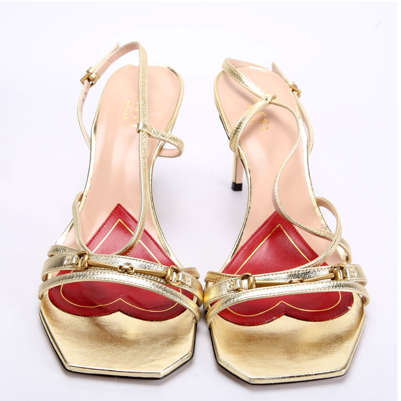 These pre-owned Gucci Victoria Strappy Horsebit Sandal Heels are guaranteed 100% authentic.