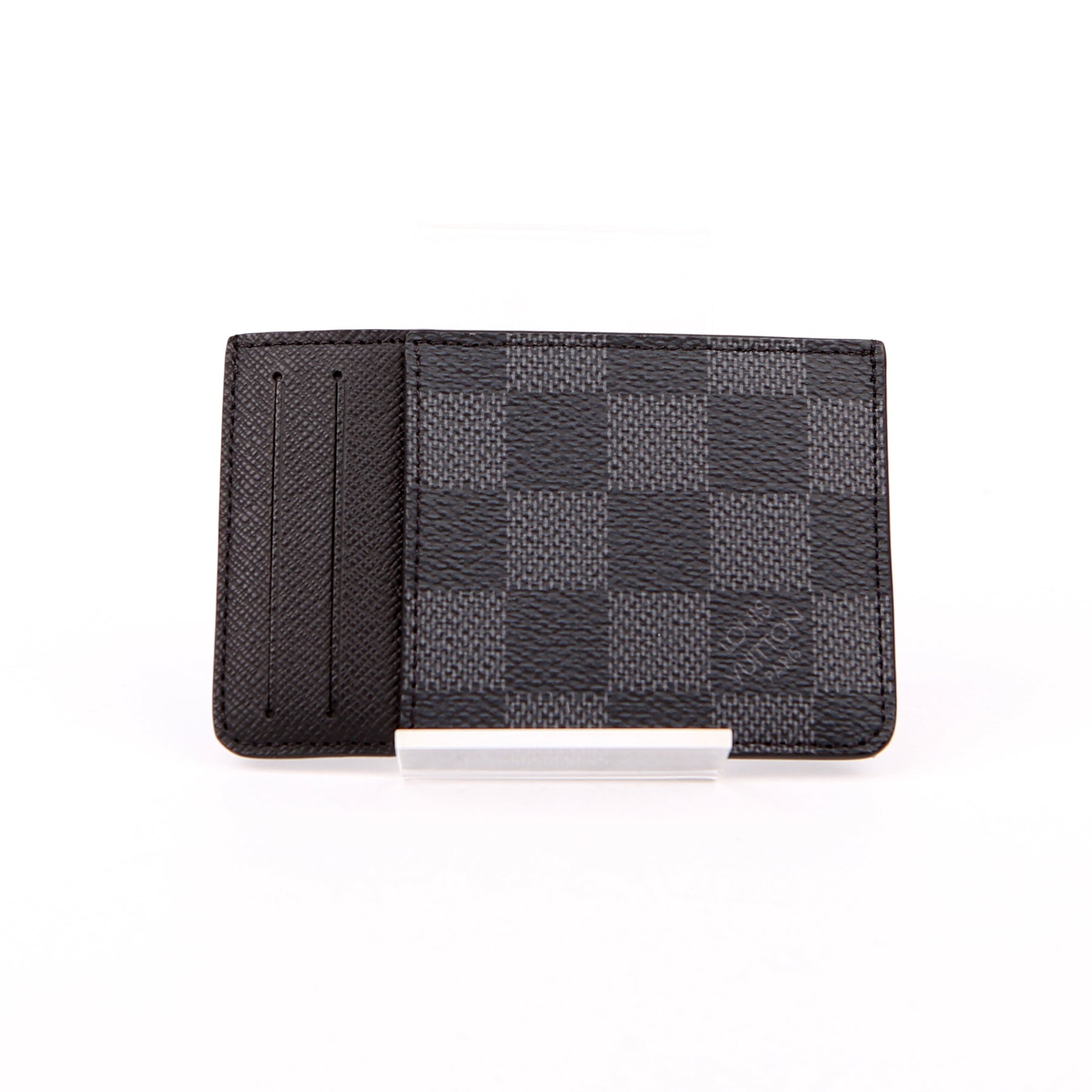This pre-owned Neo Porte Cartes Card Holder is guaranteed 100% authentic. The exterior is in the classic Damier Graphite Coated Canvas.