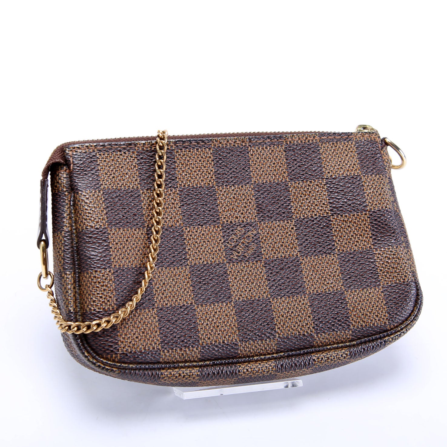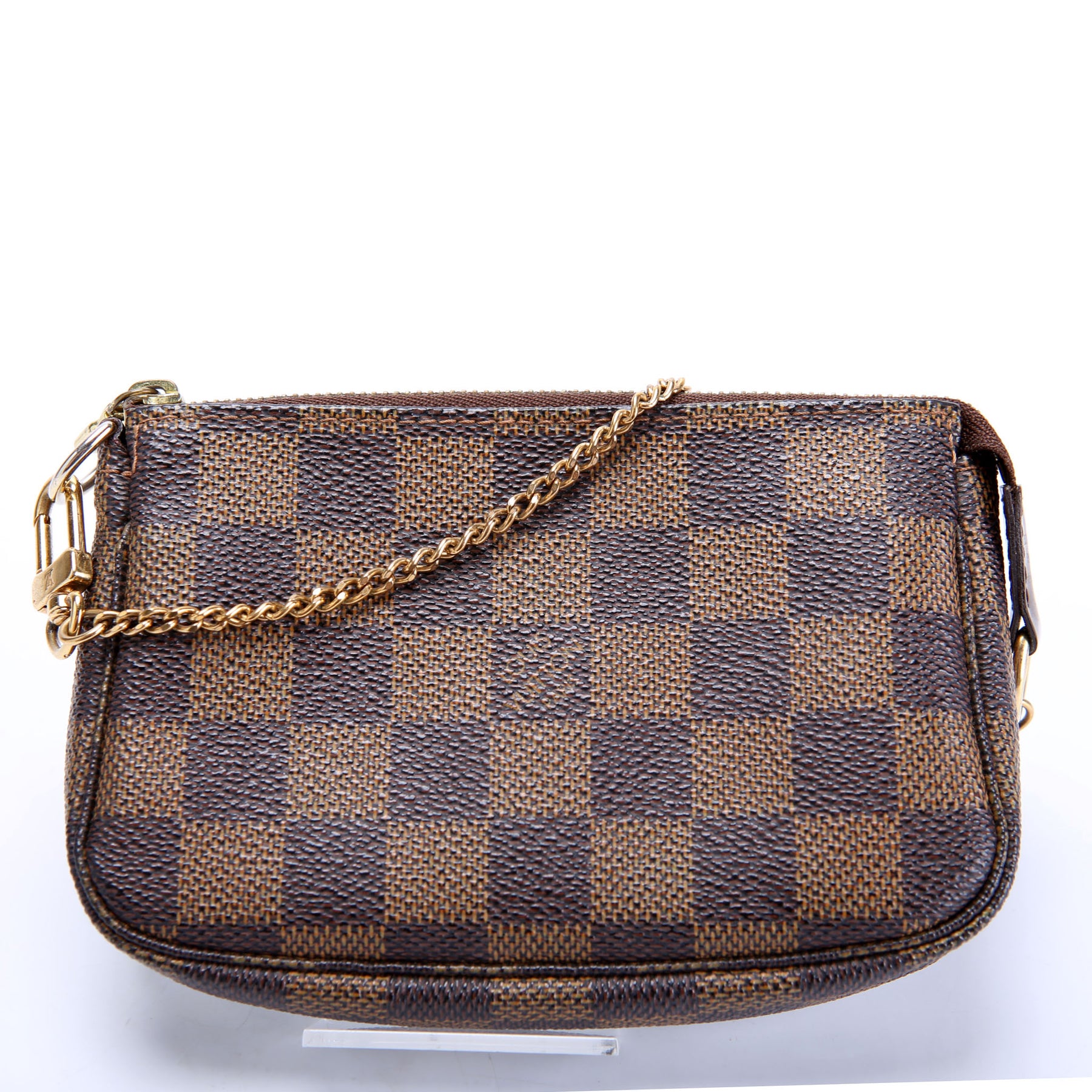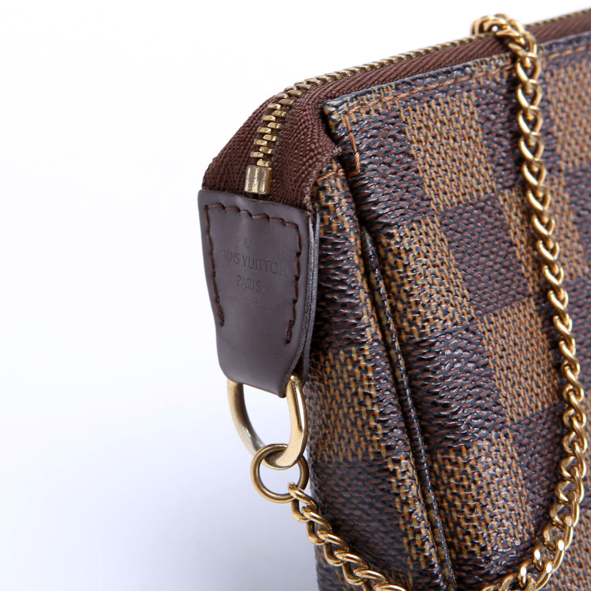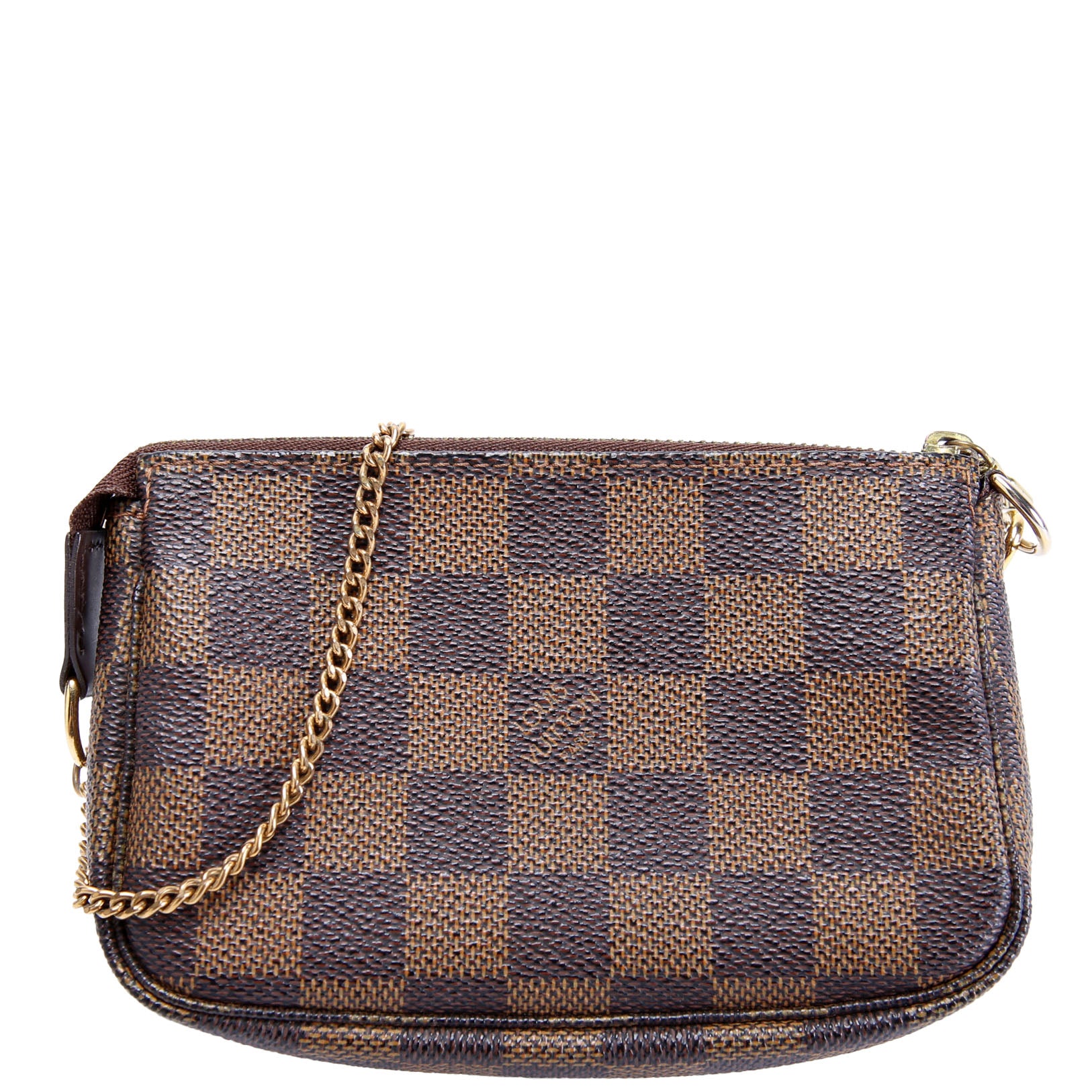 This pre-owned Louis Vuitton Pochette Access Mini Ebene is guaranteed 100% authentic. The exterior is in the classic Louis Vuitton Ebene coated canvas.