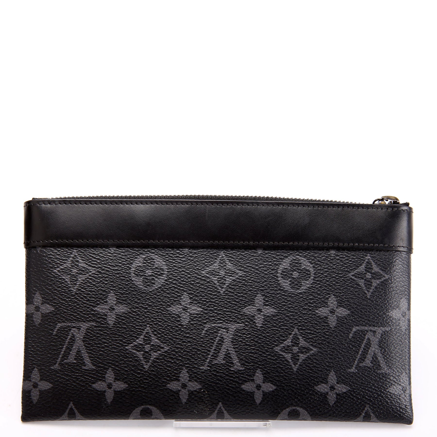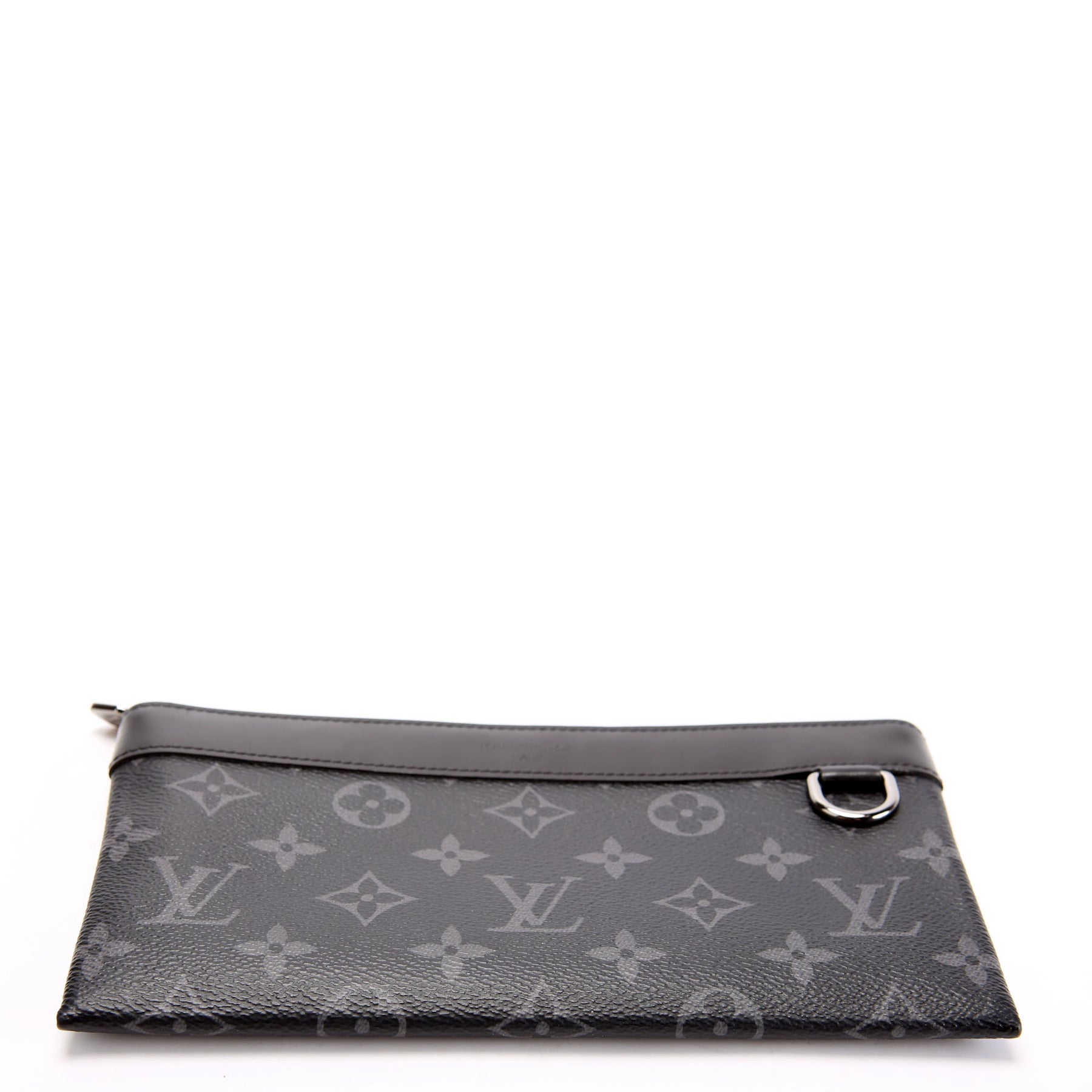 This pre-owned Louis Vuitton Pochette Discovery PM is guaranteed 100% authentic. The exterior is in the classic Louis Vuitton Monogram Eclipse coated canvas.