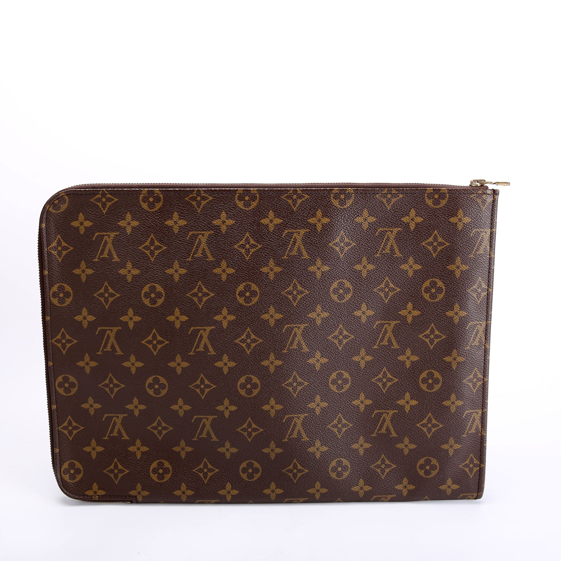This pre-owned Louis Vuitton Pochette Documents 38 is guaranteed 100% authentic. The exterior is in the classic Louis Vuitton Monogram coated canvas.