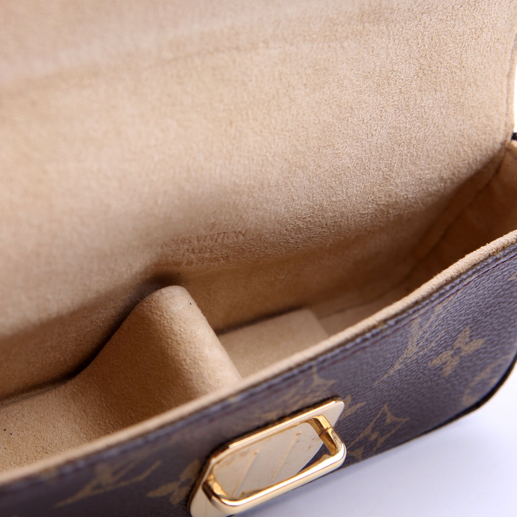 This pre-owned Louis Vuitton Pochette Lagoon Sunglasses Wristlet is guaranteed 100% authentic. The exterior is in the classic Louis Vuitton Monogram coated canvas.