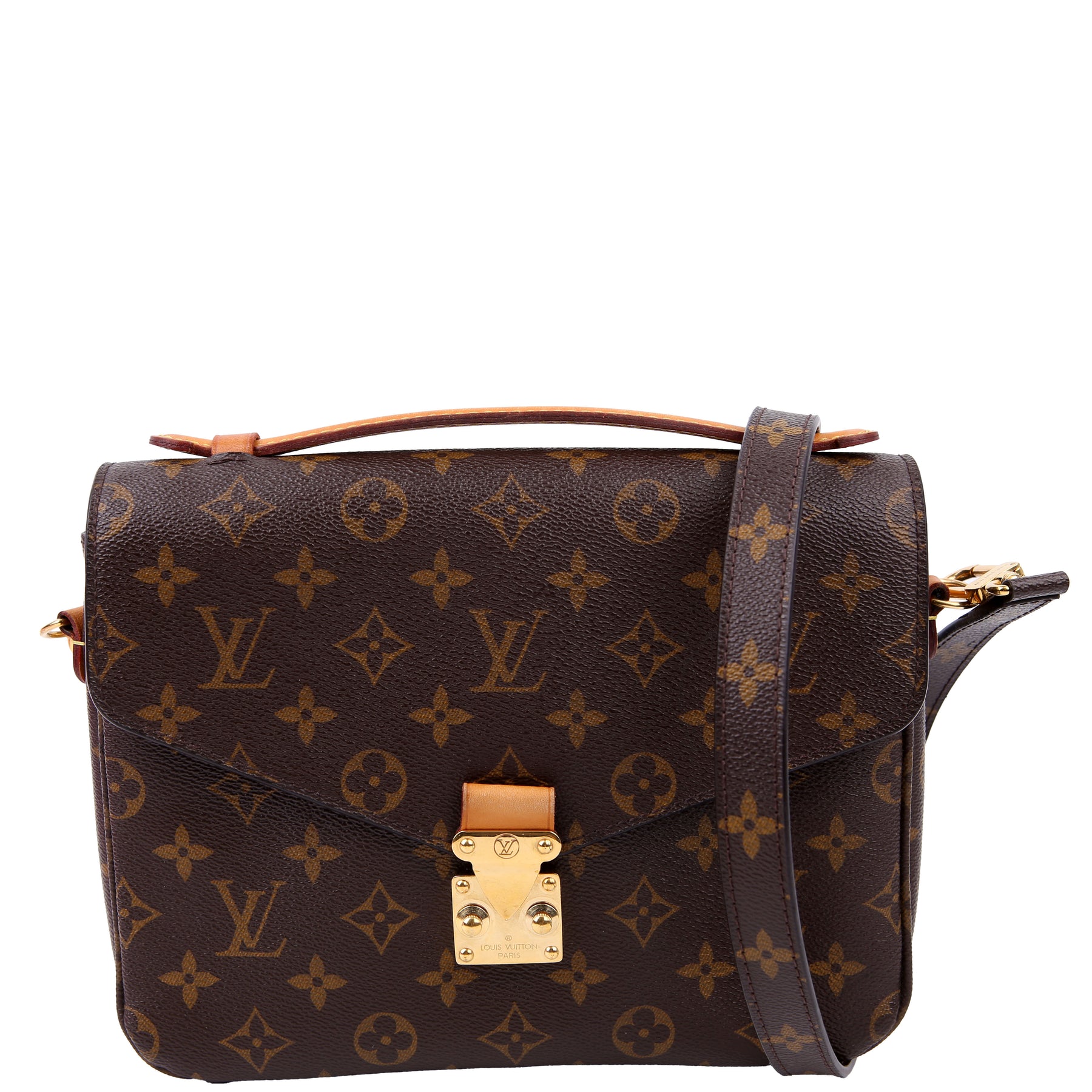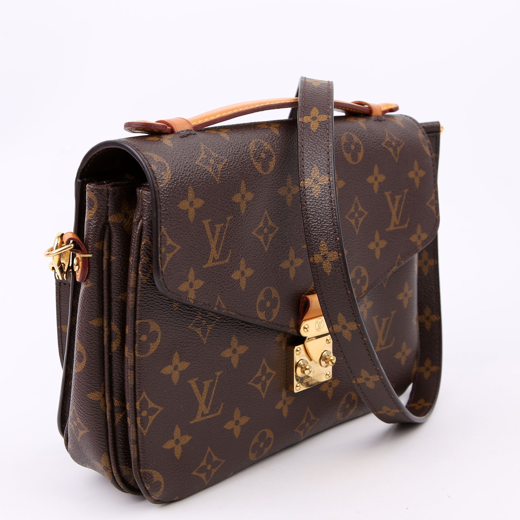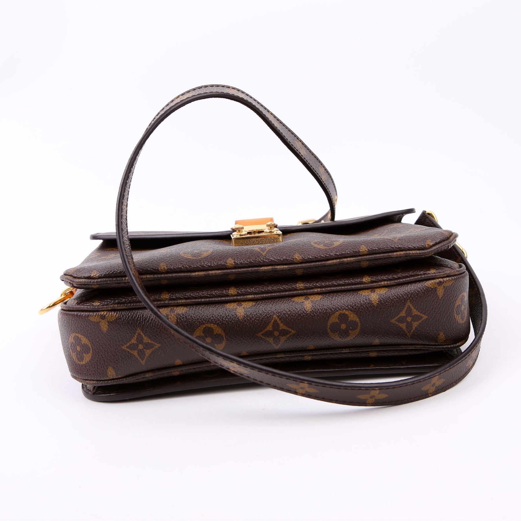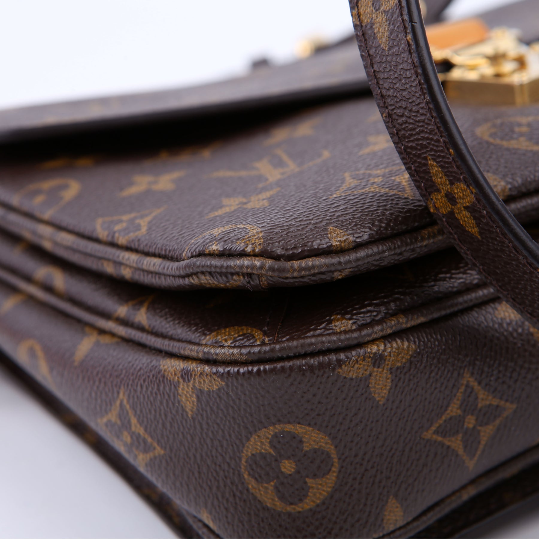 This pre-owned Louis Vuitton Pochette Metis is guaranteed 100% authentic. The exterior is in the classic Louis Vuitton Monogram coated canvas.