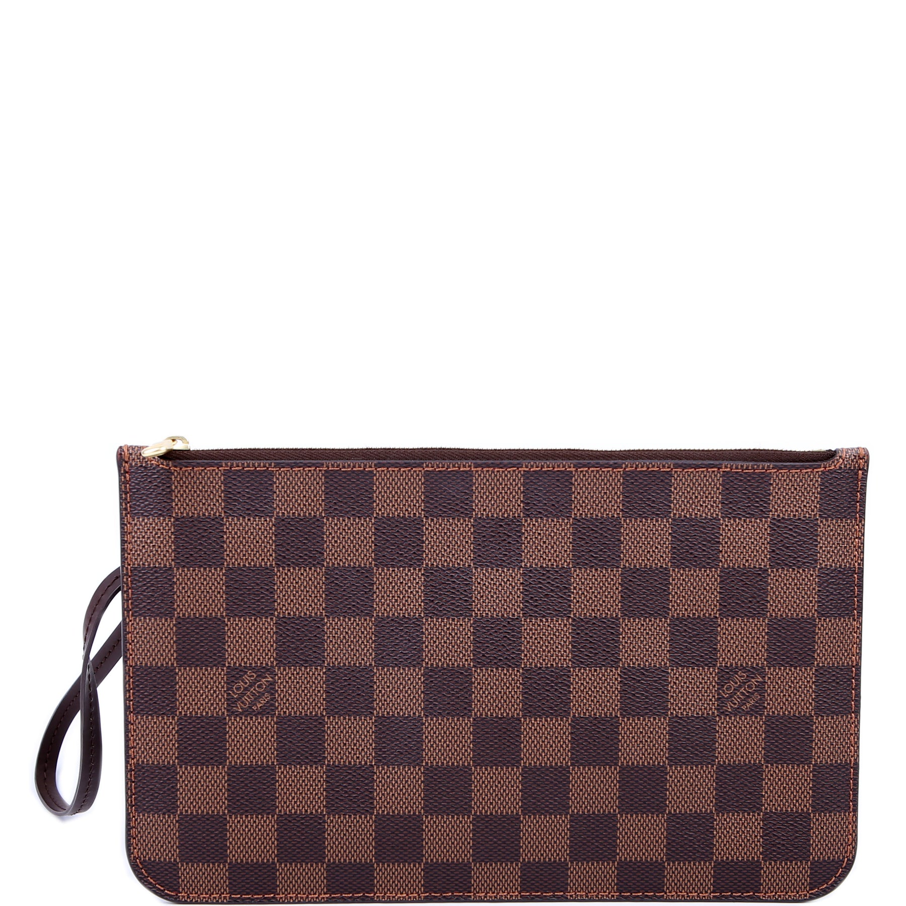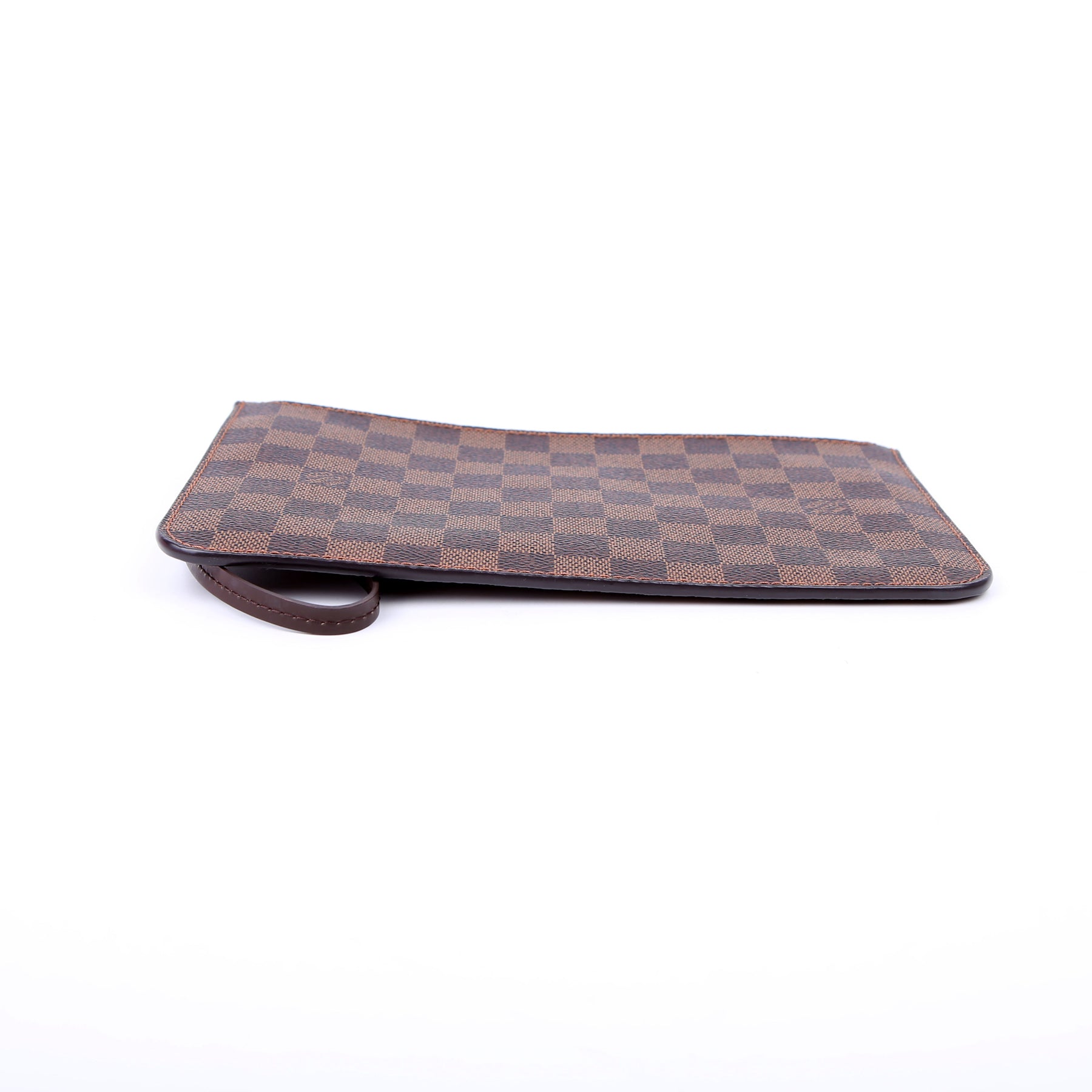 This pre-owned Louis Vuitton Pochette Only Neverfull is guaranteed 100% authentic. The exterior is in the classic Louis Vuitton Damier Ebene coated canvas.