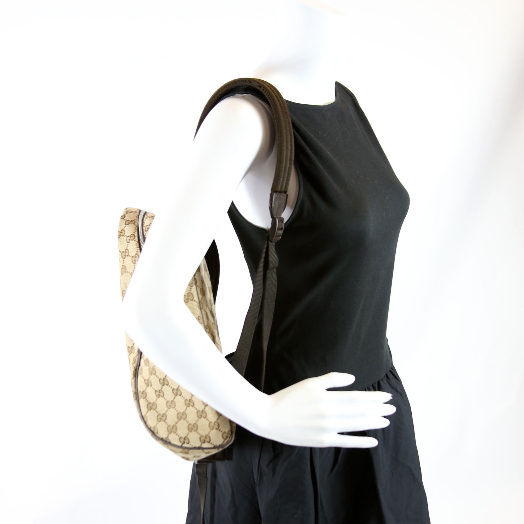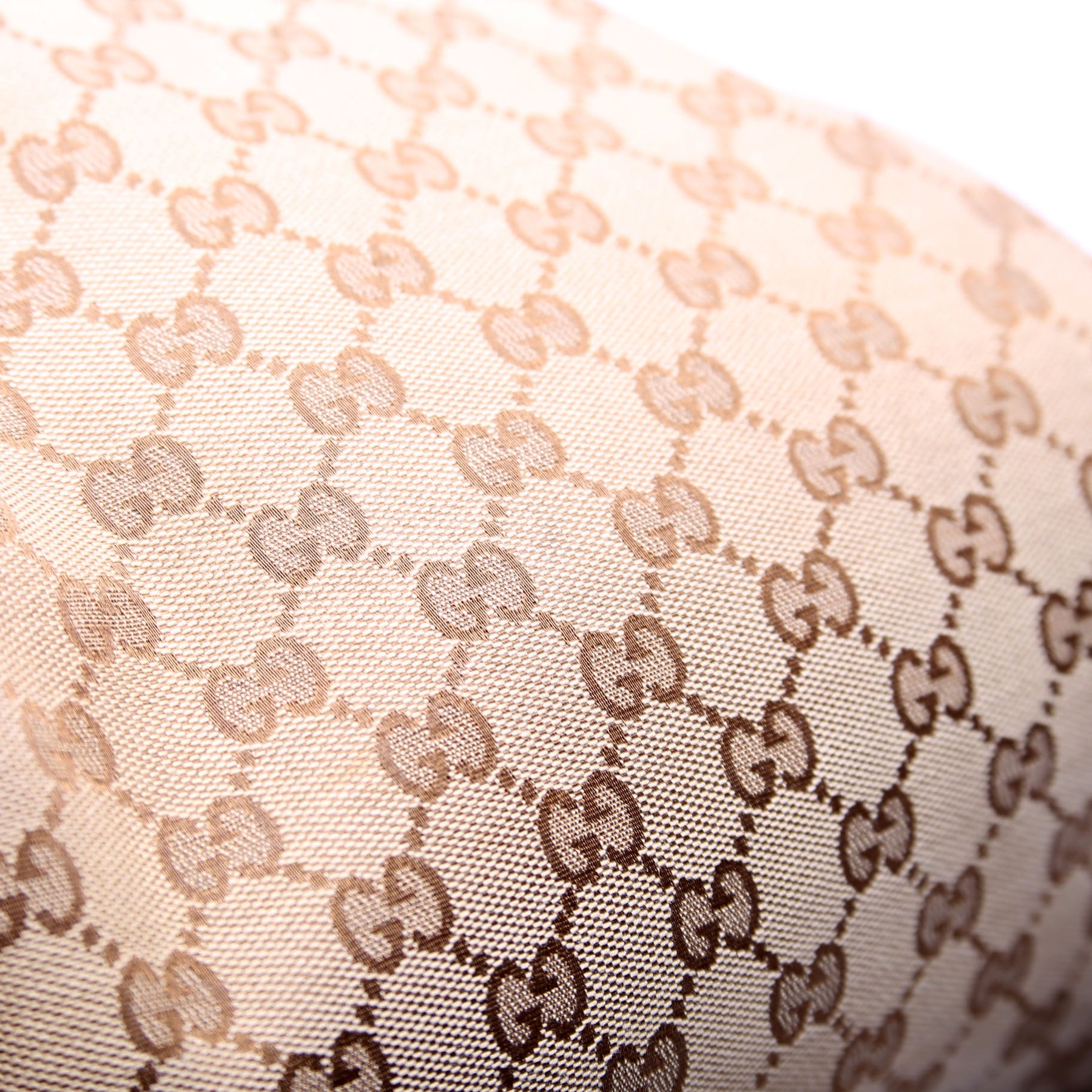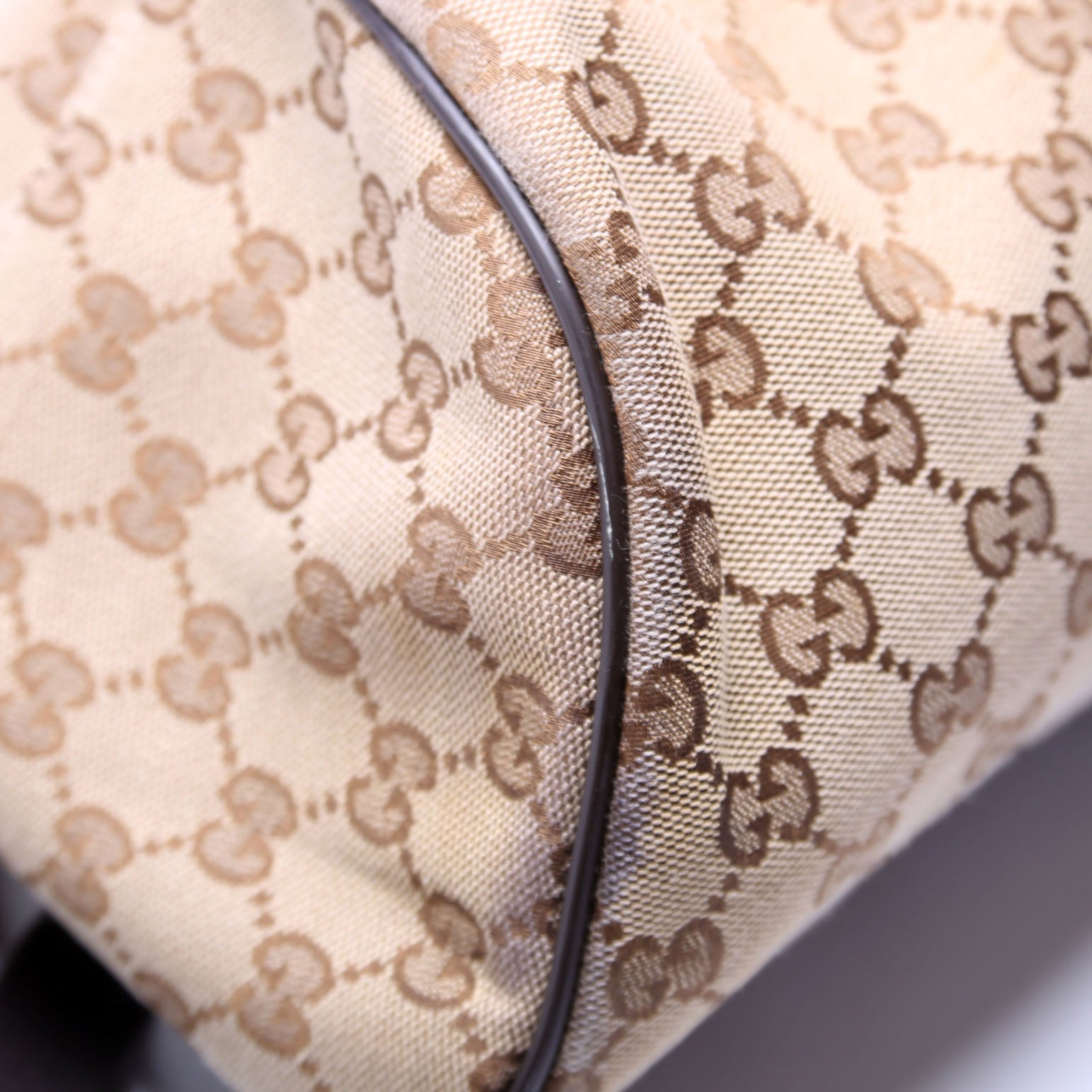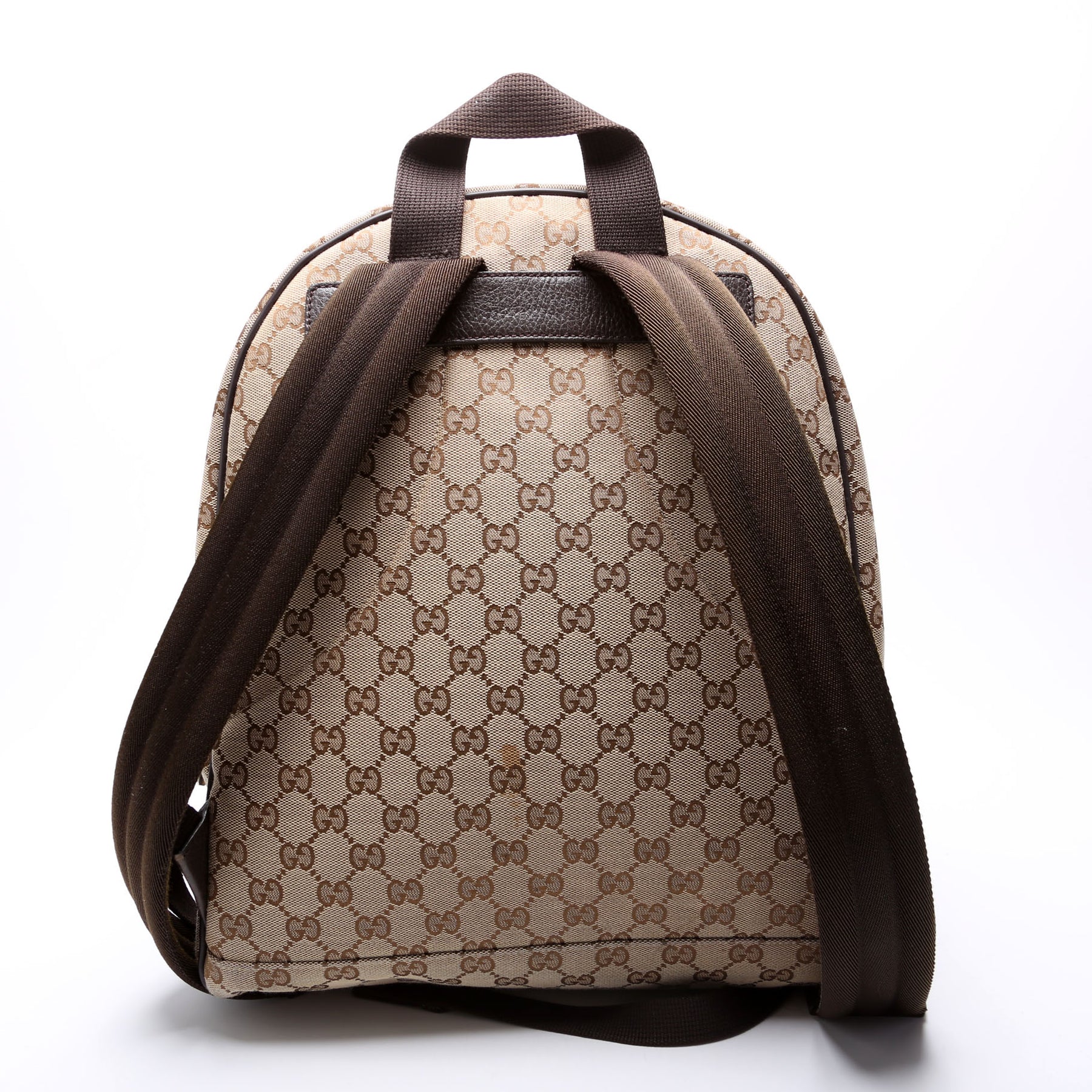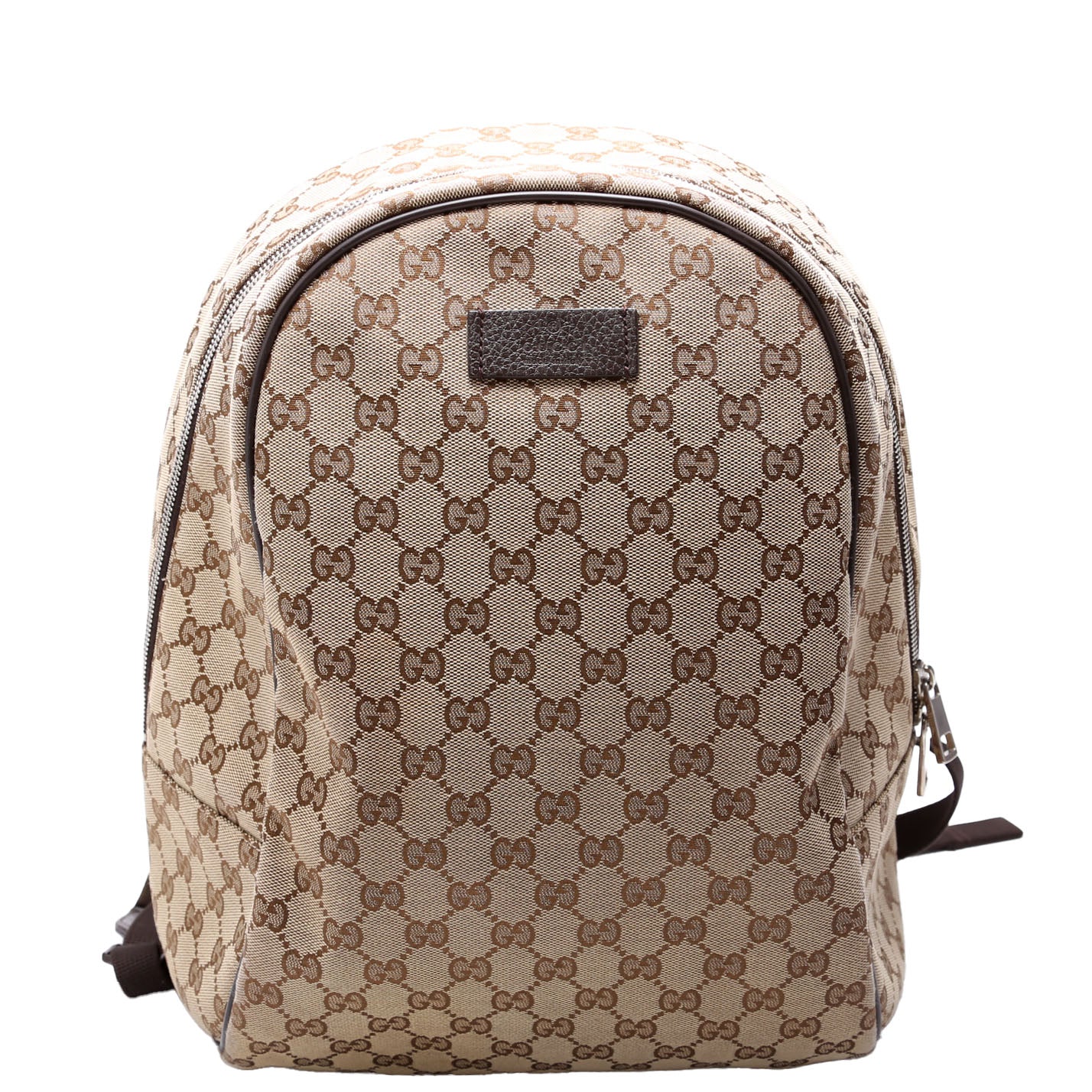 This pre-owned Gucci GG Canvas Travel Backpack is guaranteed 100% authentic. The exterior is in the classic Gucci GG canvas.