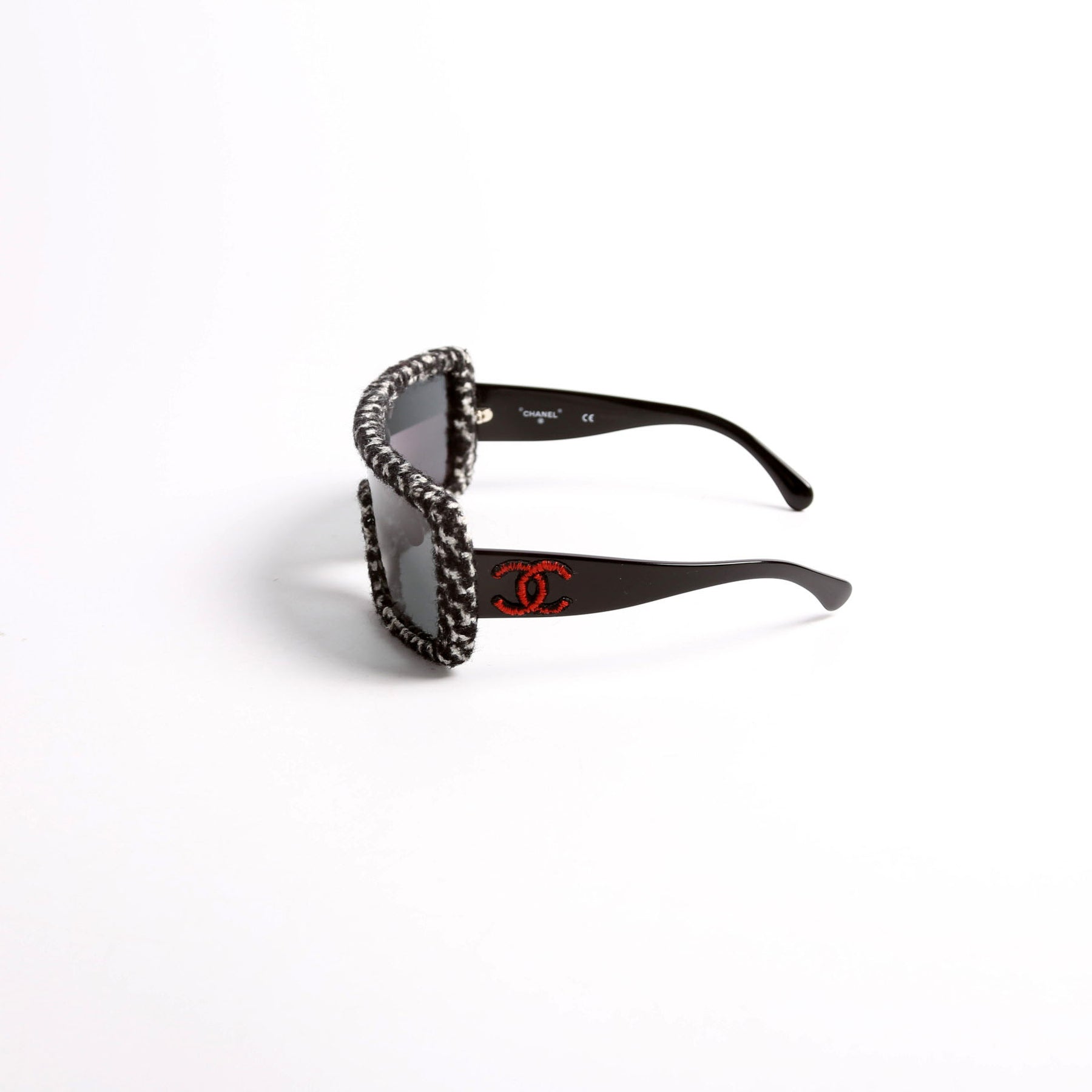 These pre-owned Chanel Shield Acetate Tweed Sunglasses are guaranteed 100% authentic.