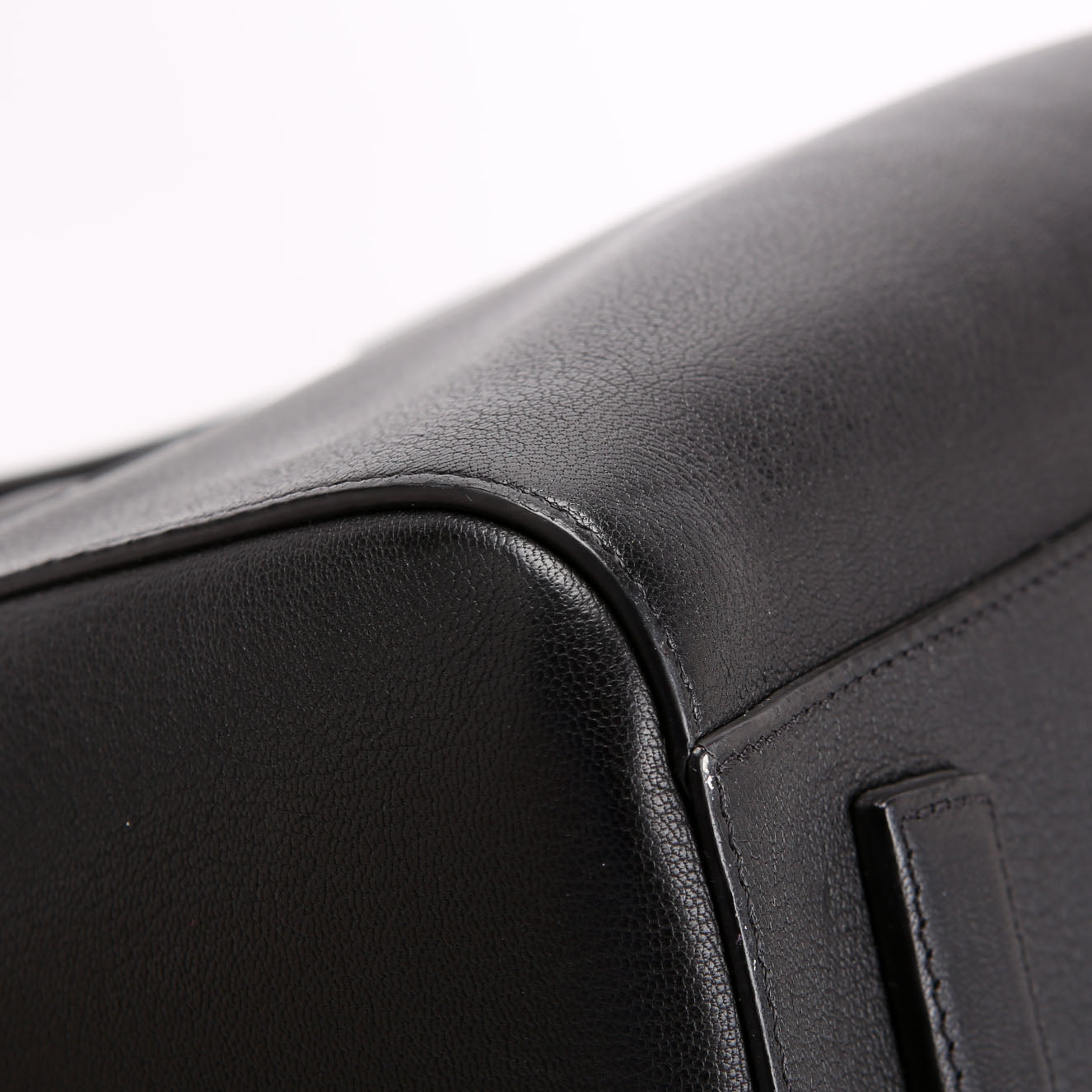 Exterior: The exterior features marks and scratching throughout. The base of the bag has marks, discoloration.