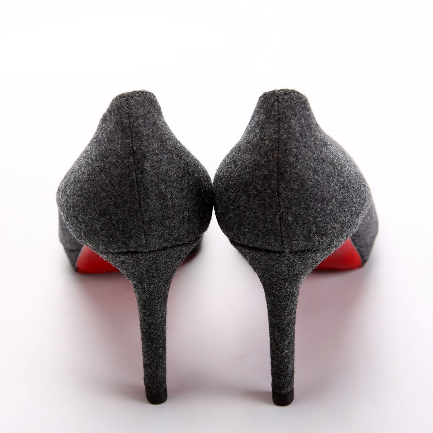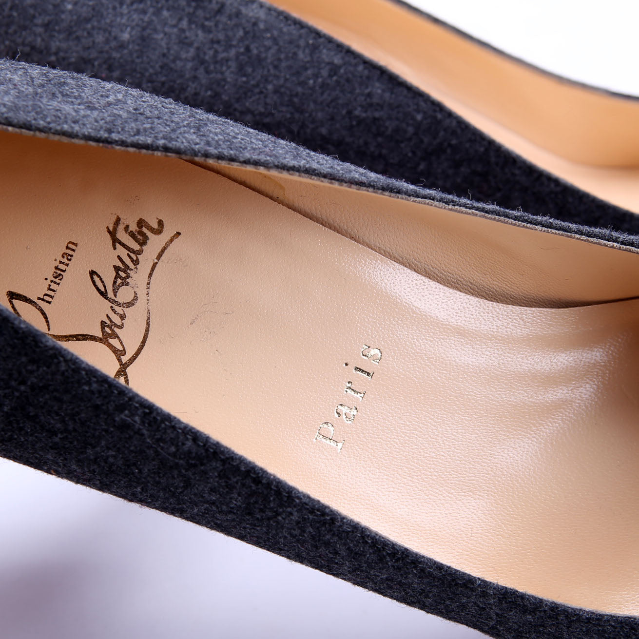 These pre-owned Christian Louboutin Bianca 85 Wool Platform Pumps are guaranteed 100% authentic.