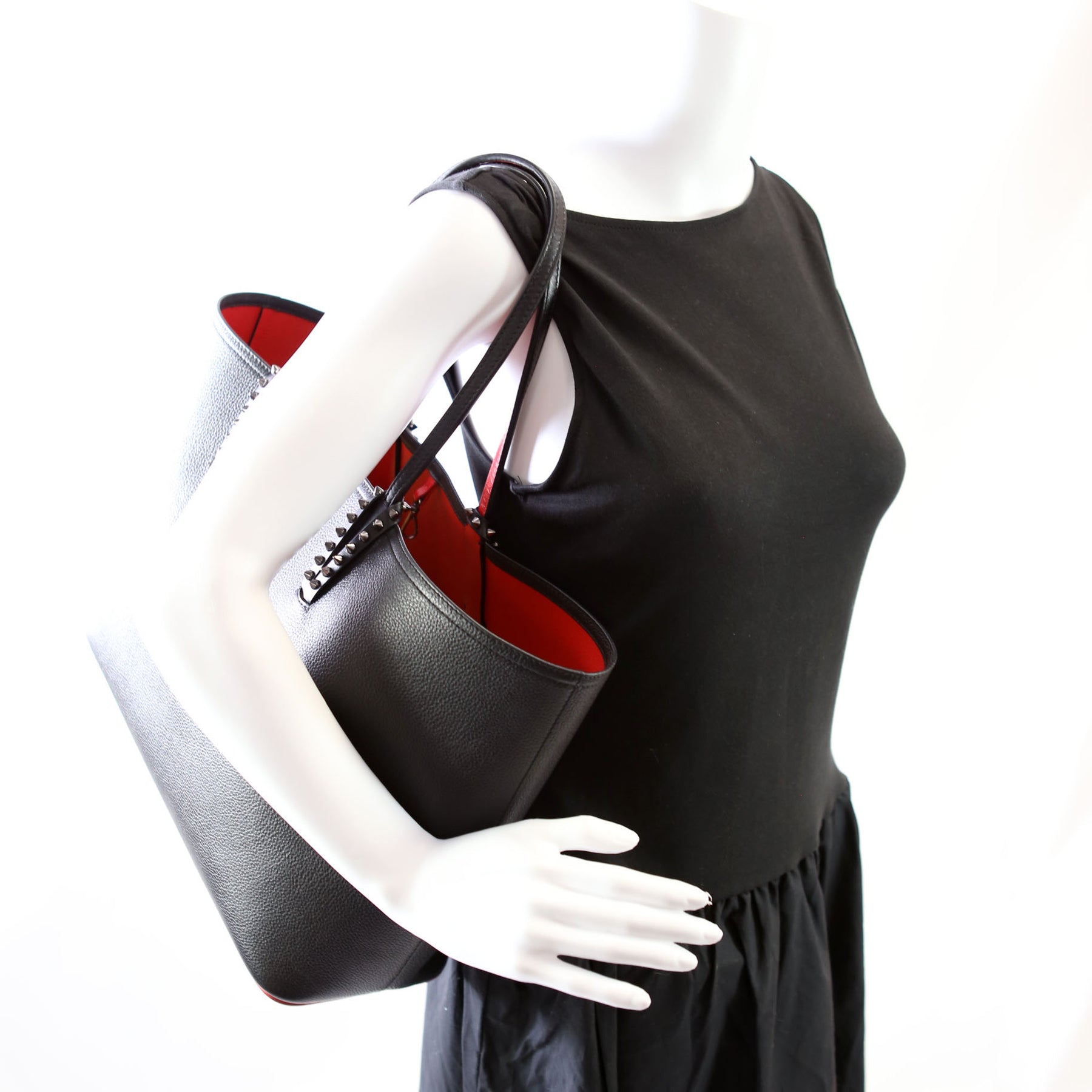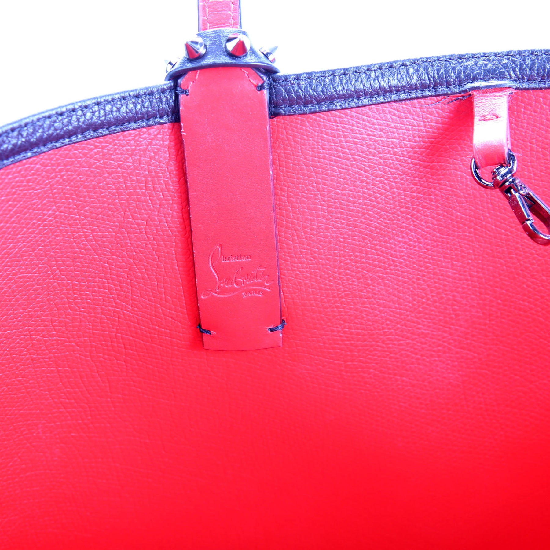 This pre-owned Christian Louboutin Cabata Small Tote with Pouch embossed Leather is guaranteed 100% authentic. The exterior is in the classic Christian Louboutin Calfskin Leather.