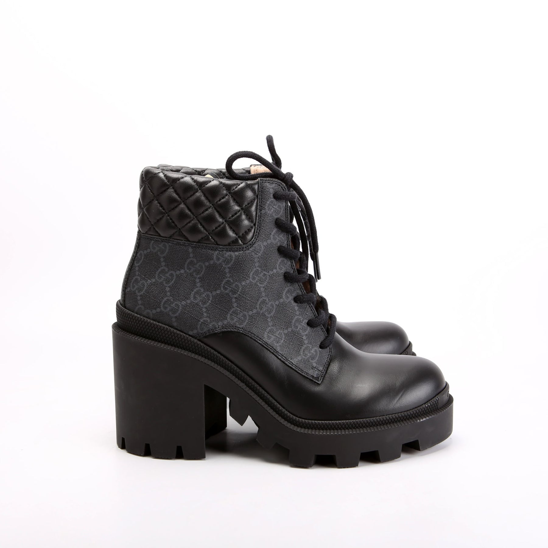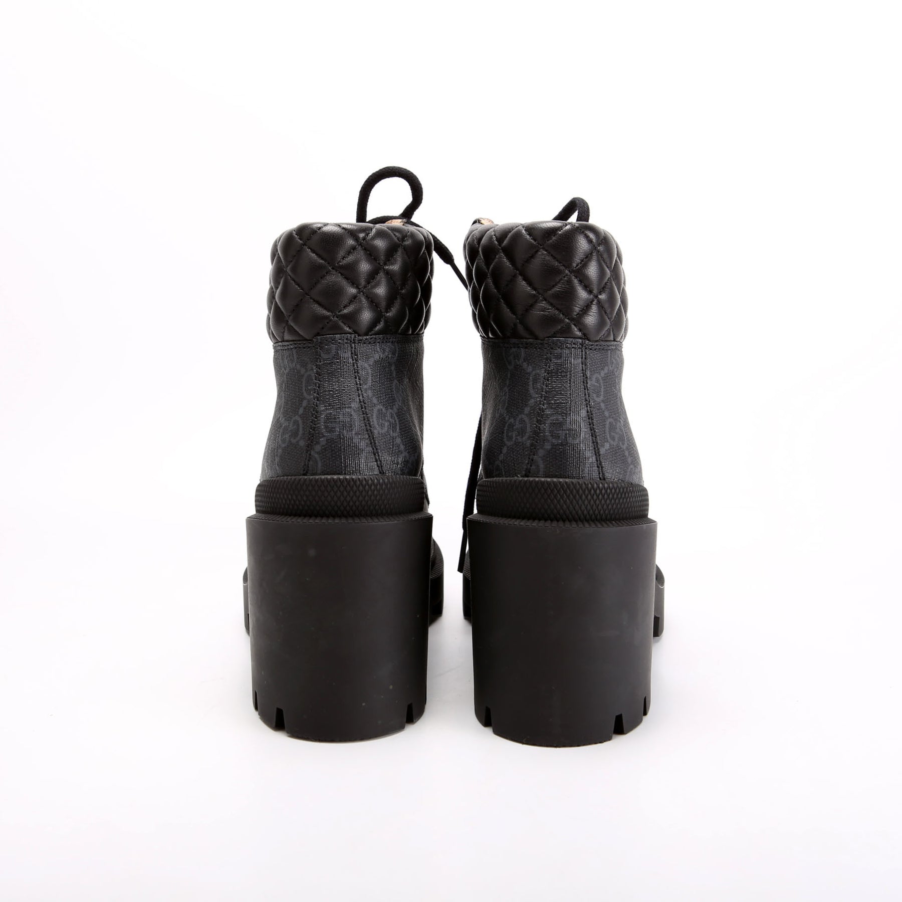 These pre-owned Gucci GG Supreme/Quilted Leather Lace Up Ankle Boots are guaranteed 100% authentic.