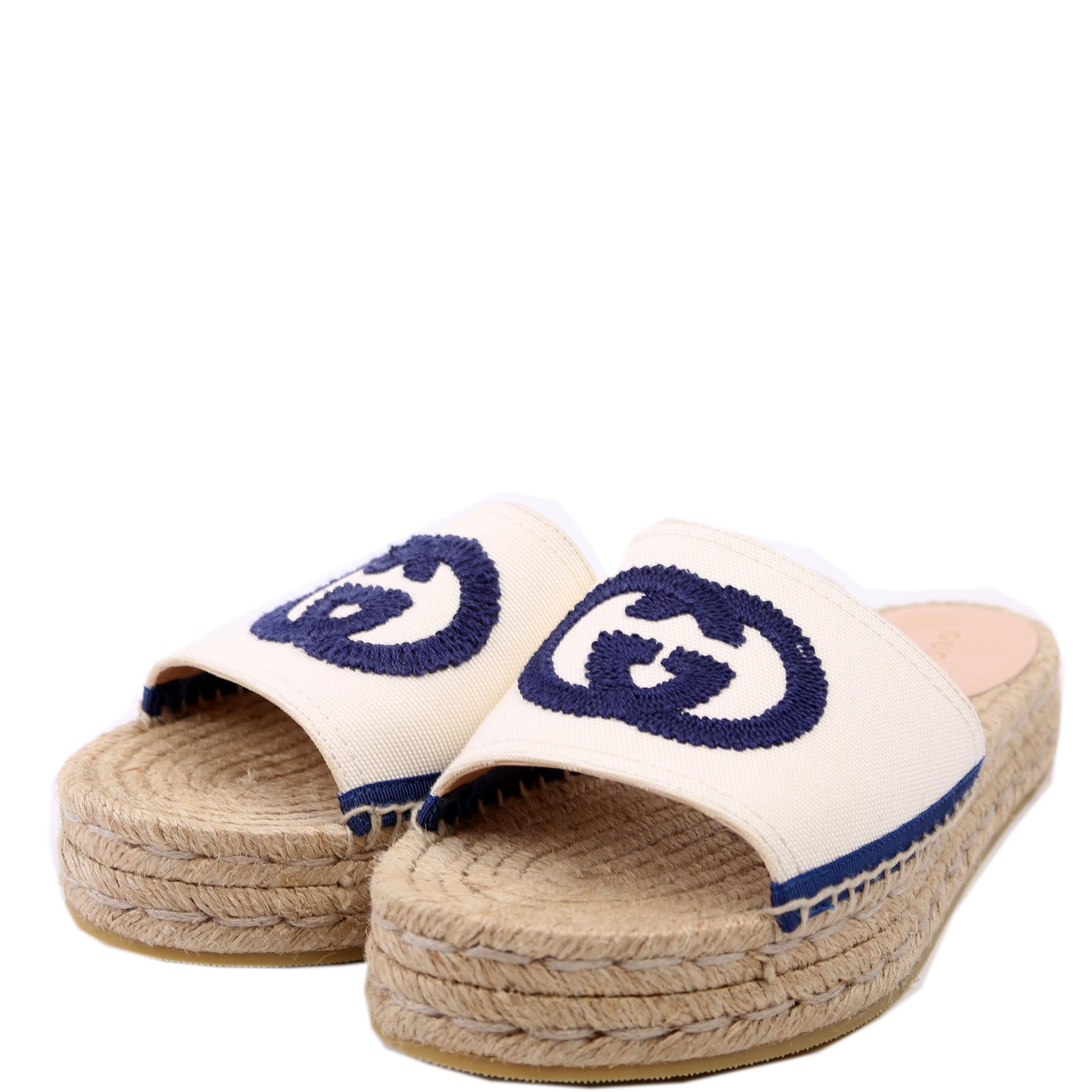Interlocking GG Espadrille Slides Size 36 White/Navy
