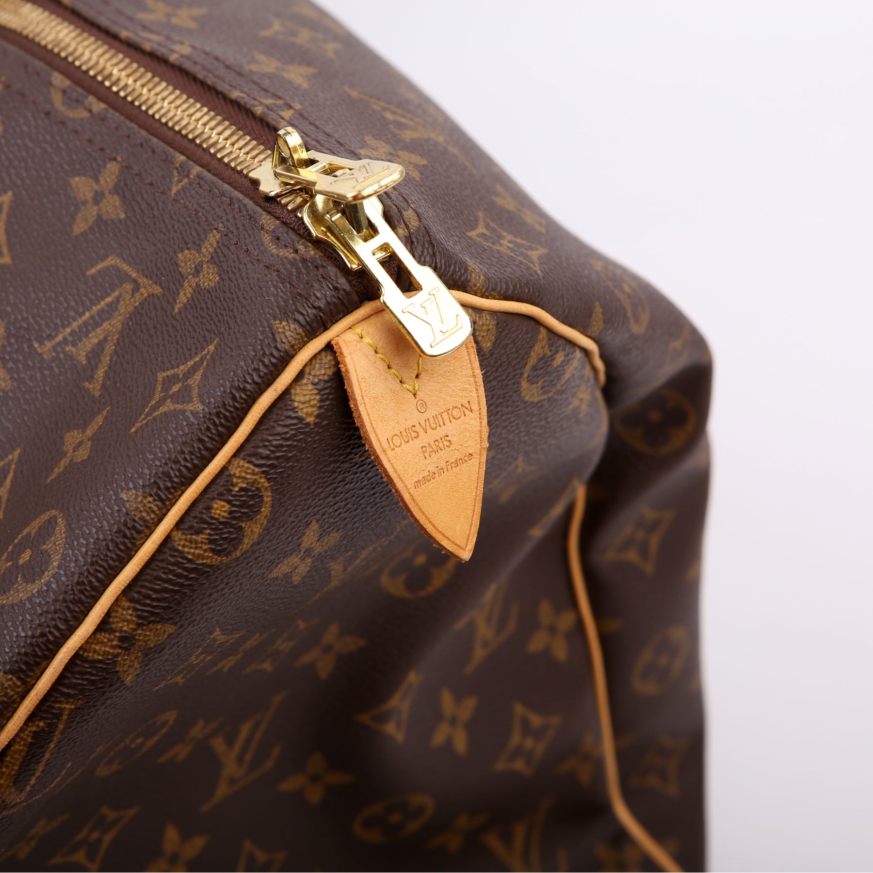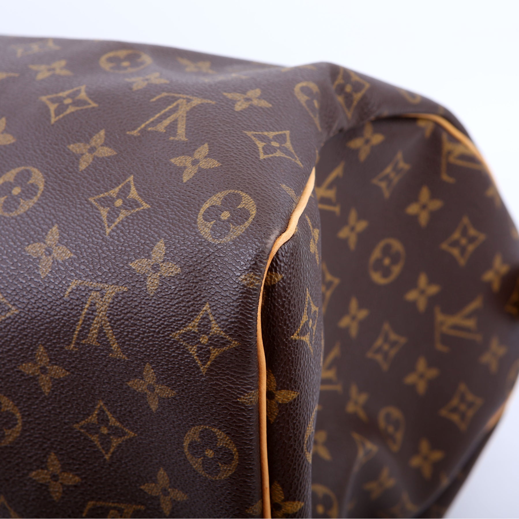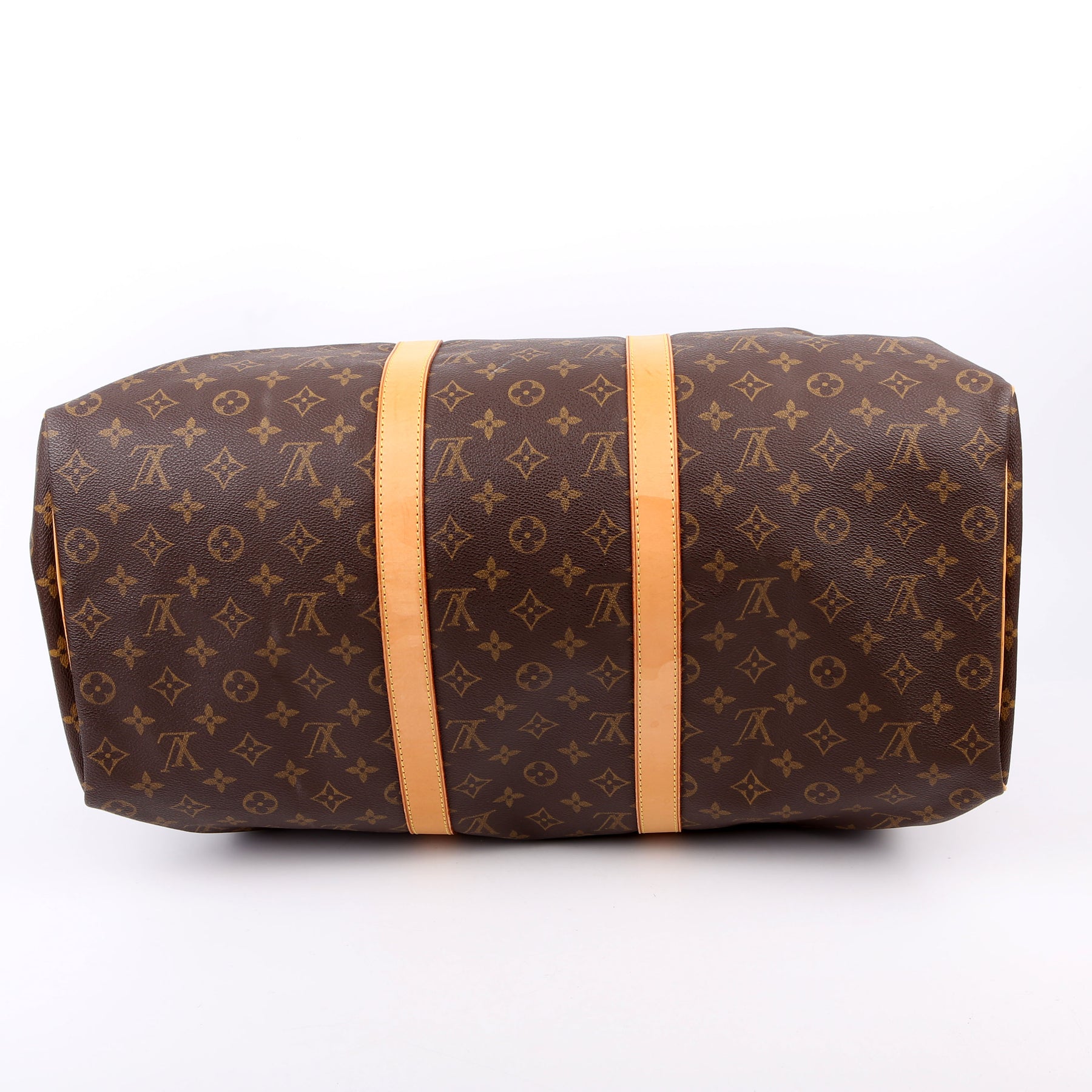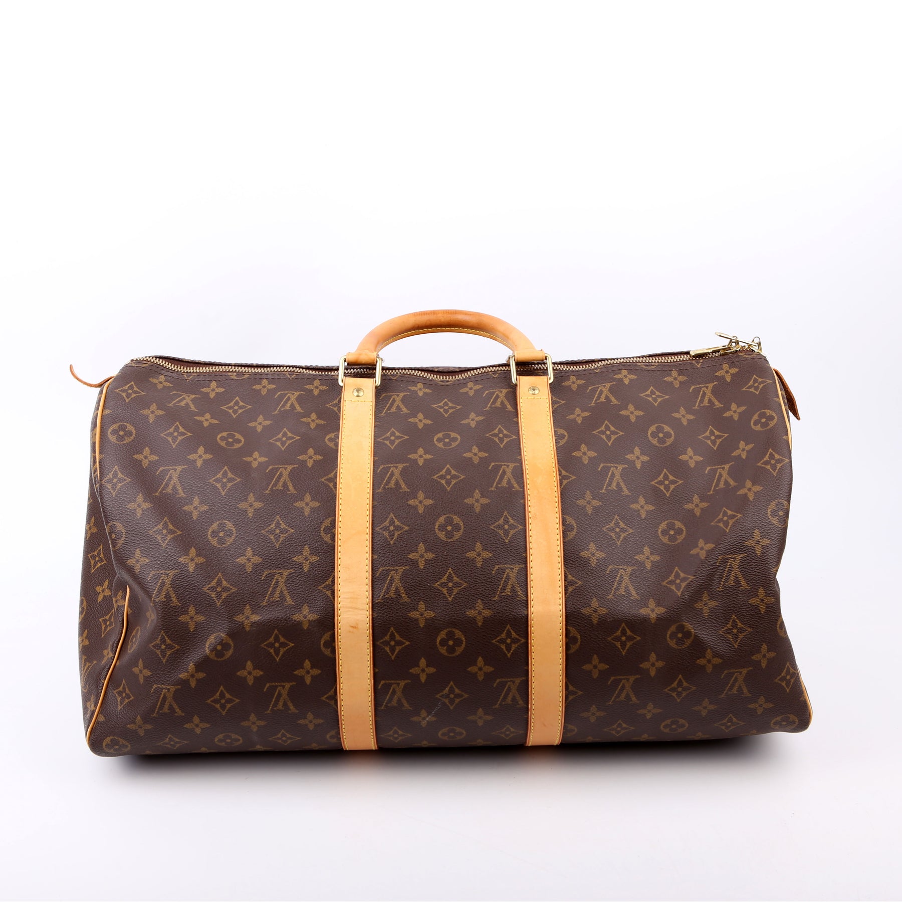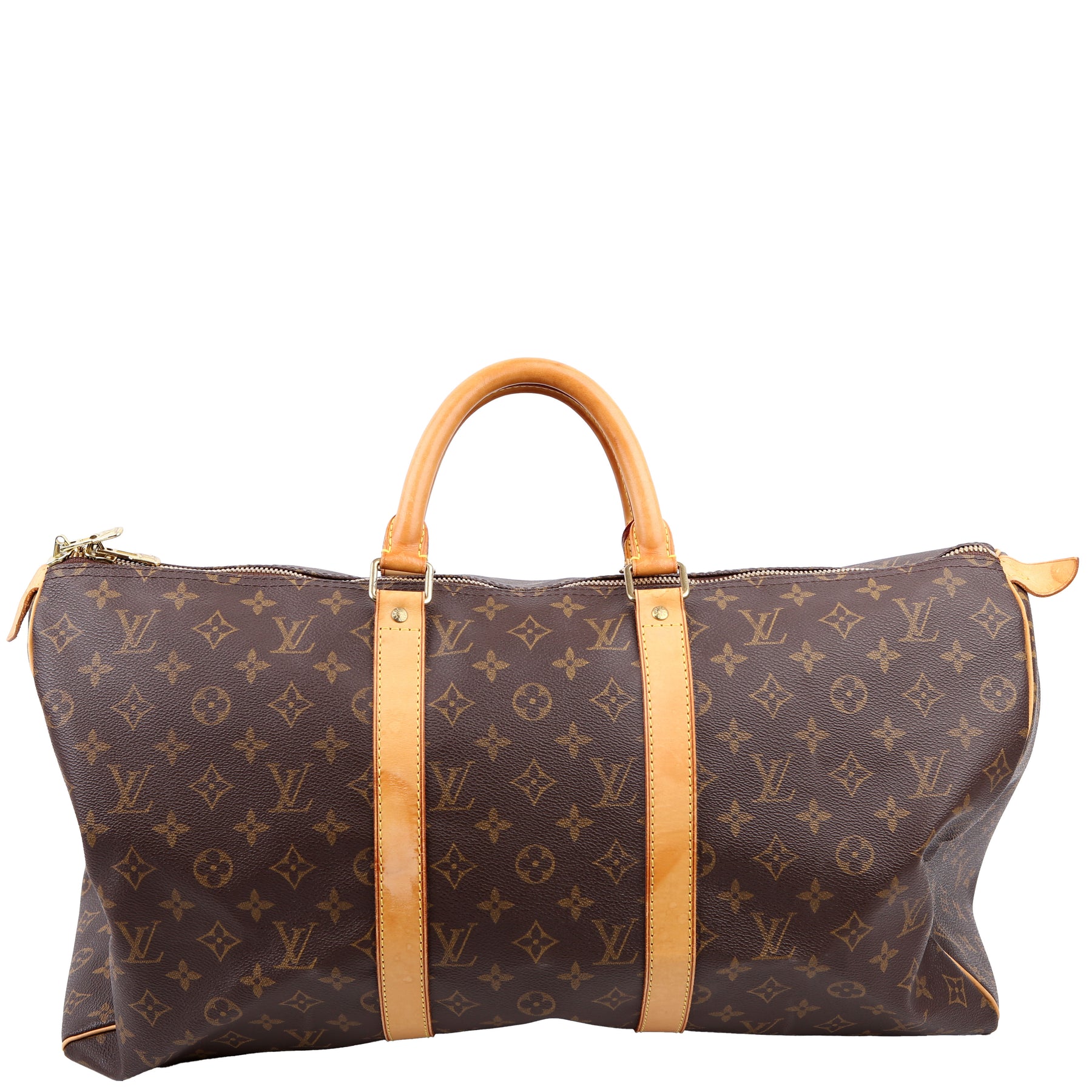 This pre-owned Louis Vuitton Keepall 50 is guaranteed 100% authentic. The exterior is in the classic Louis Vuitton Monogram coated canvas.
