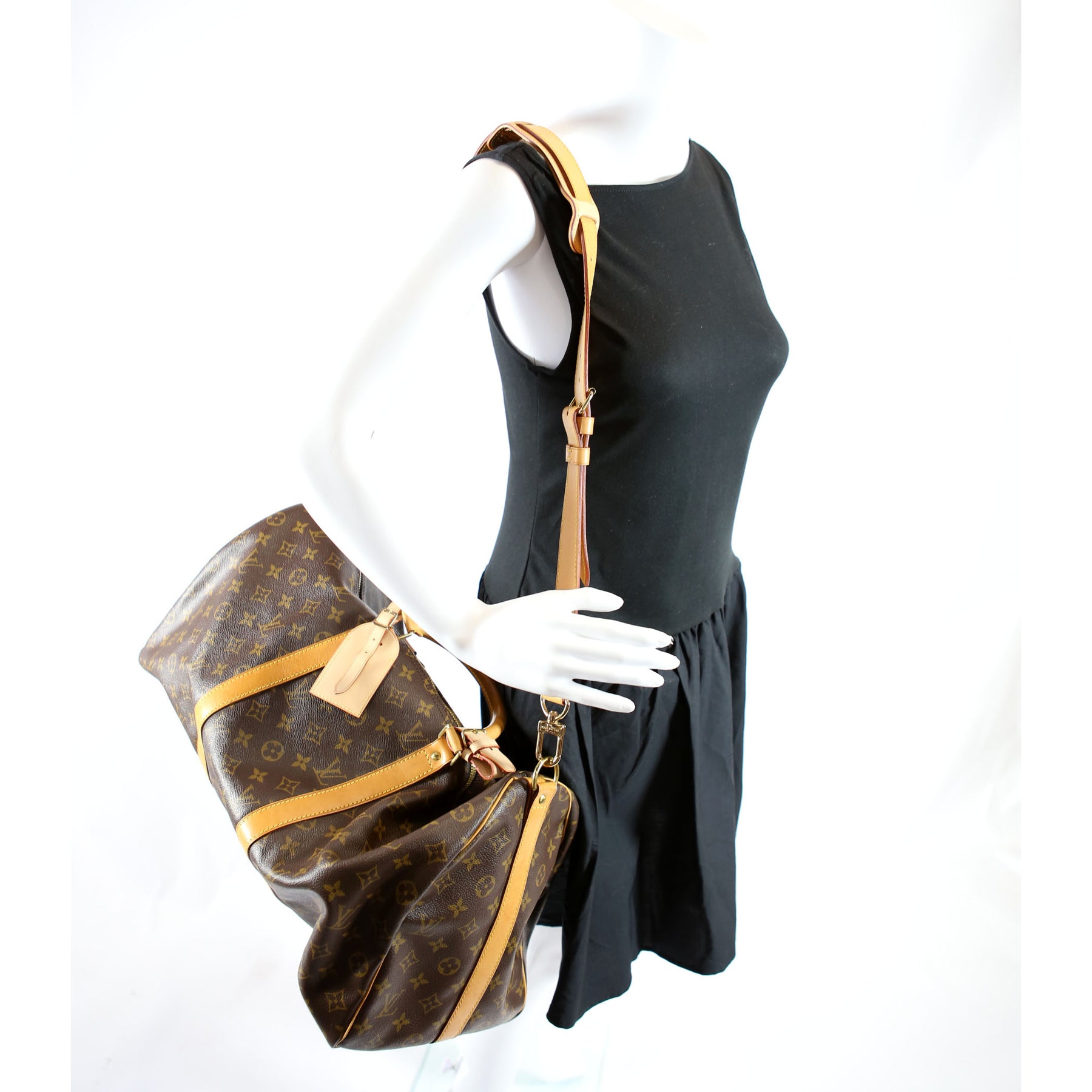 This pre-owned Louis Vuitton Keepall 50 With Strap is guaranteed 100% authentic. The exterior is in the classic Monogram coated canvas.