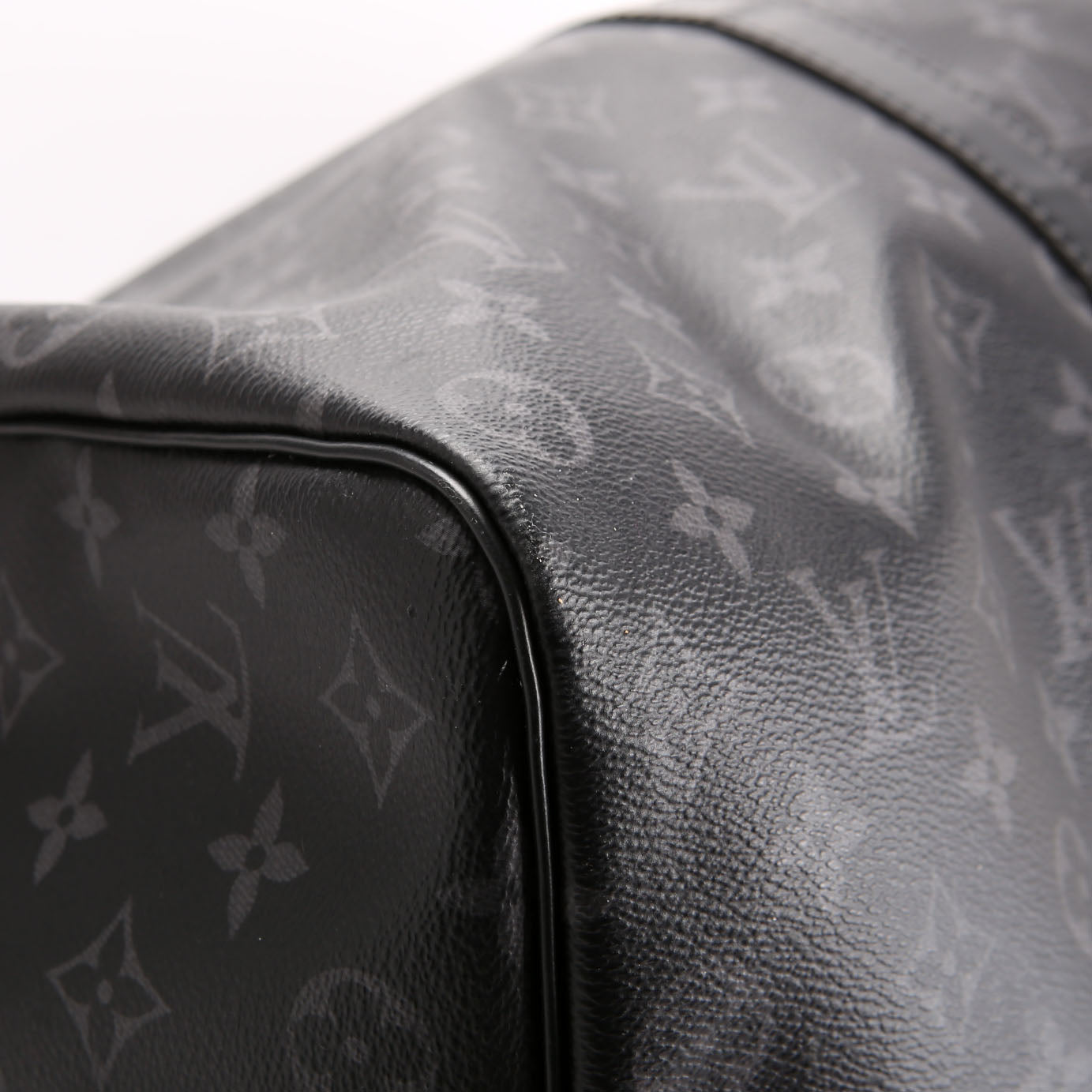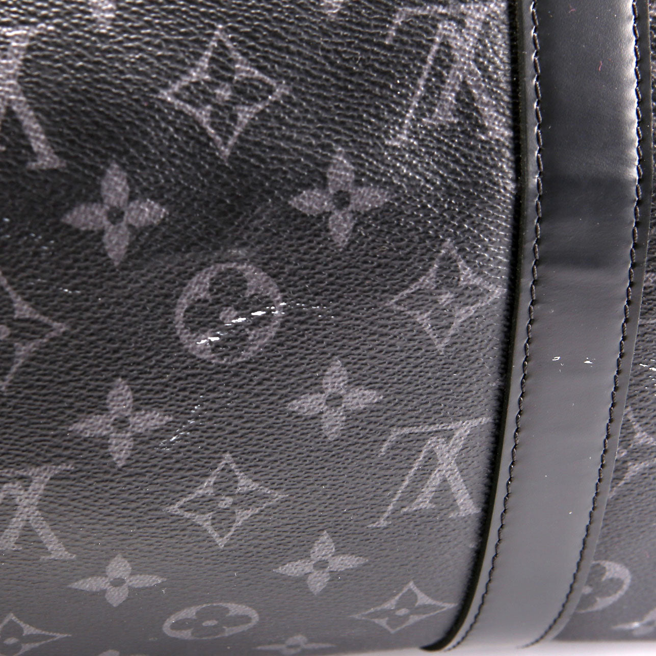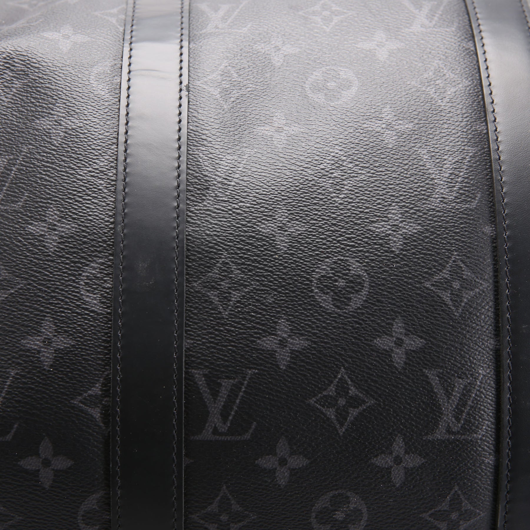 This pre-owned Louis Vuitton Keepall 50 is guaranteed 100% authentic. The exterior is in the classic Louis Vuitton Coated Canvas Monogram Eclipse.