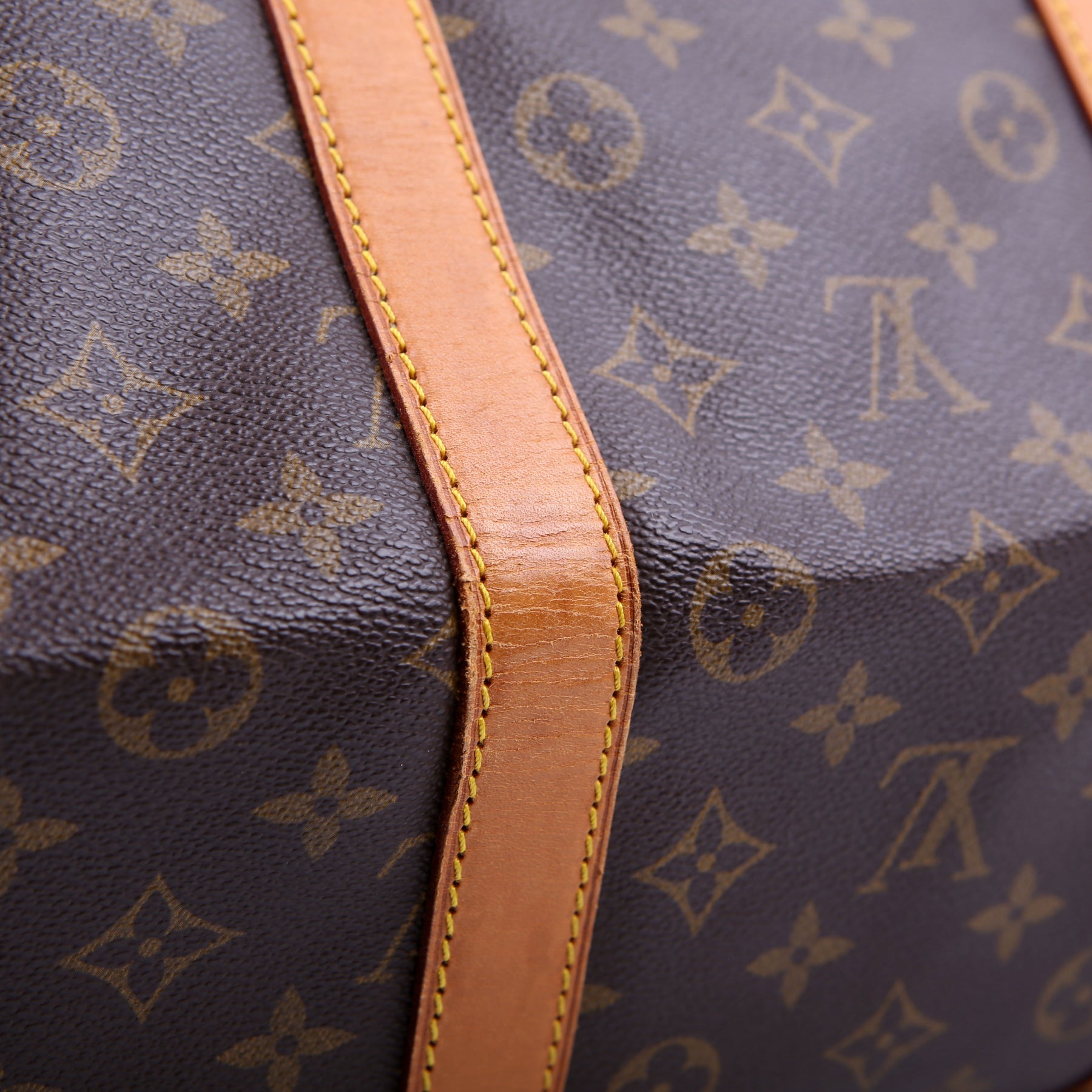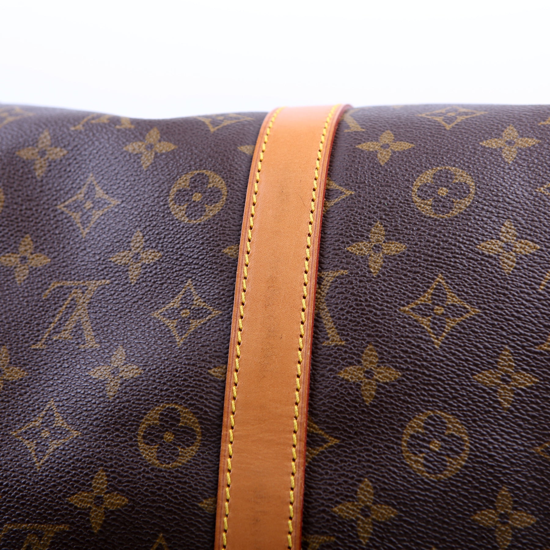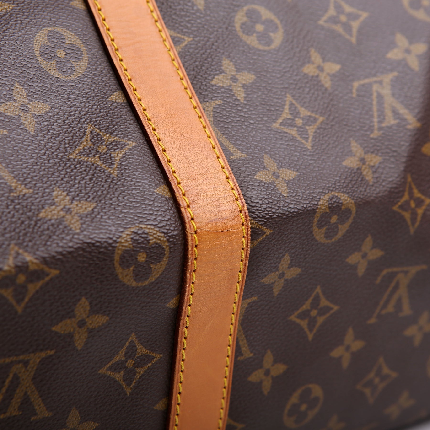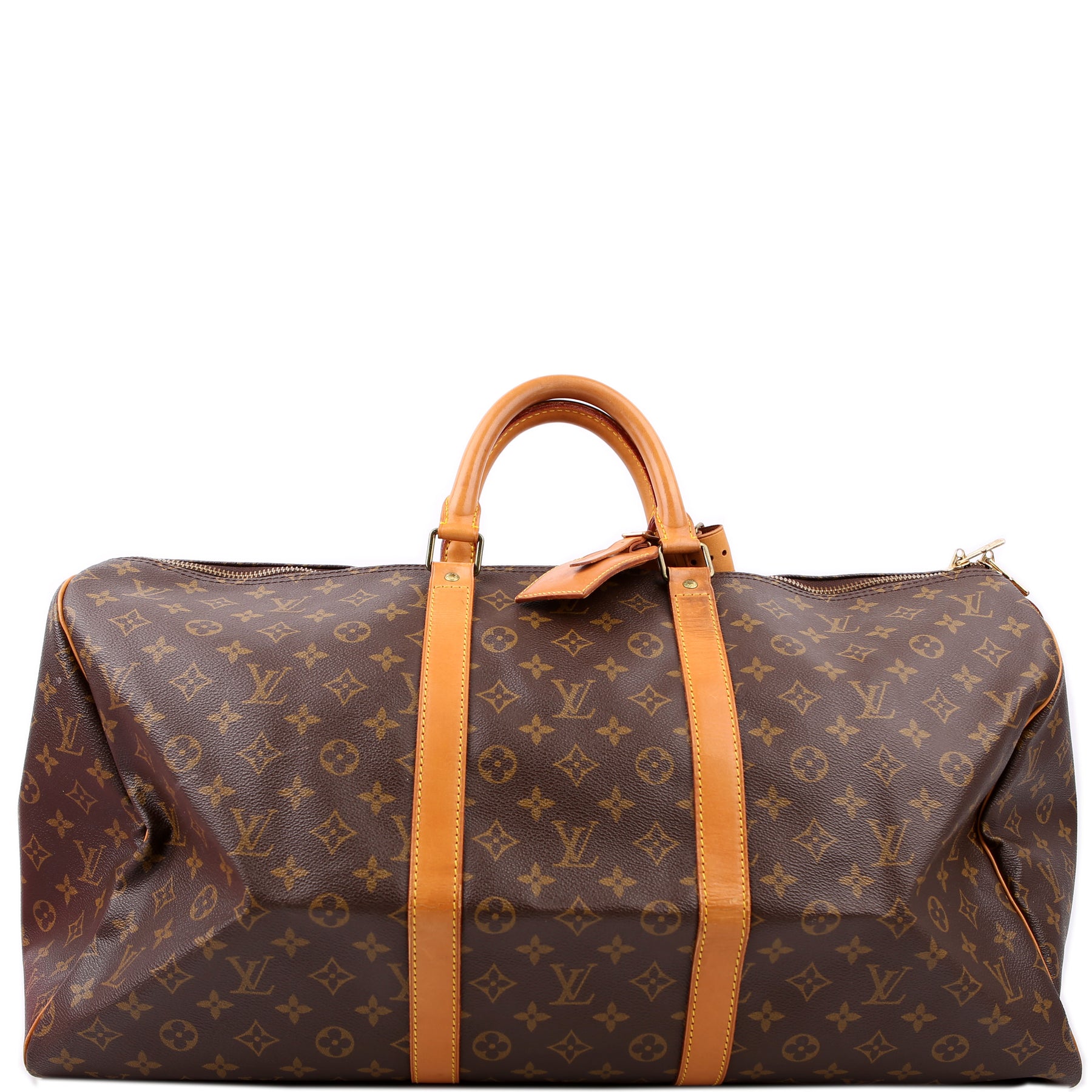 This pre-owned Louis Vuitton Keepall 55 is guaranteed 100% authentic. The exterior is in the classic Louis Vuitton Monogram coated canvas.