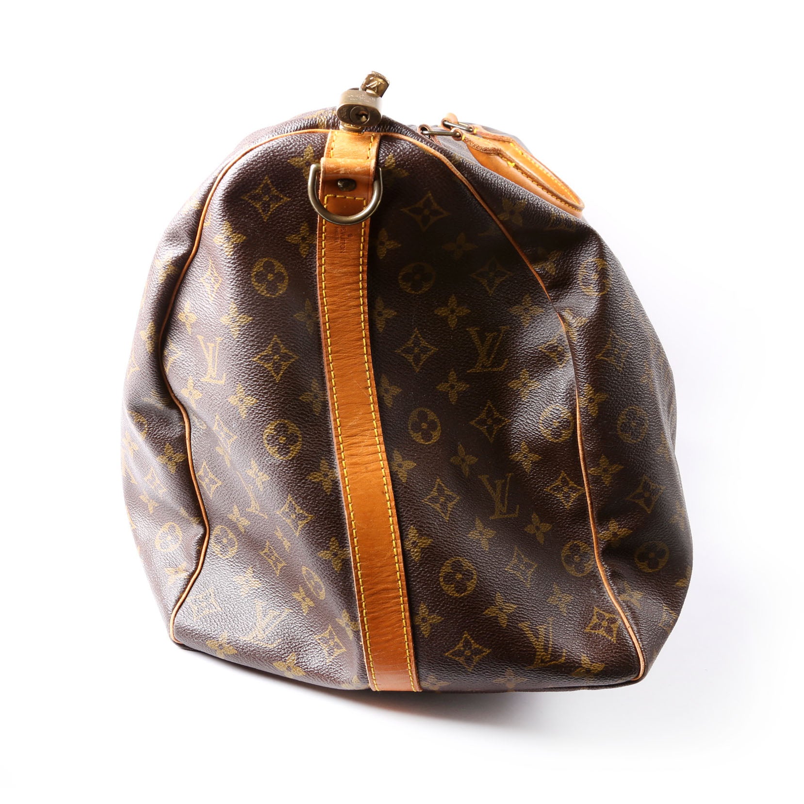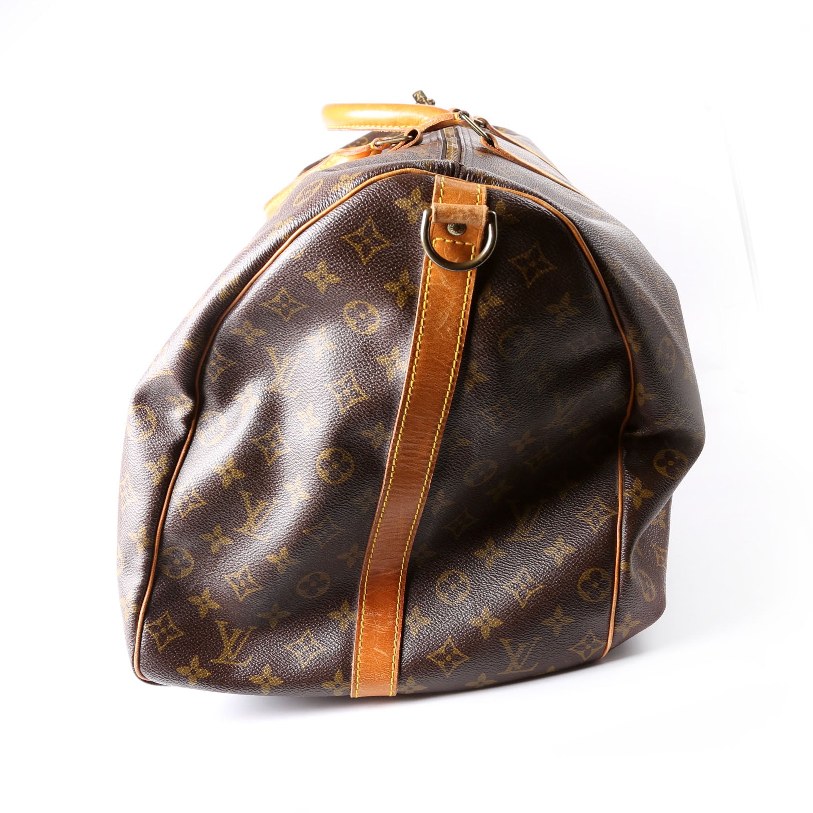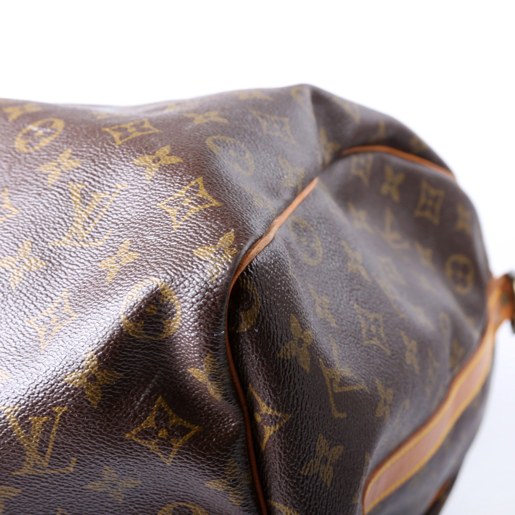 This pre-owned Louis Vuitton Keepall 60 is guaranteed 100% authentic. The exterior is in the classic Louis Vuitton Monogram coated canvas.