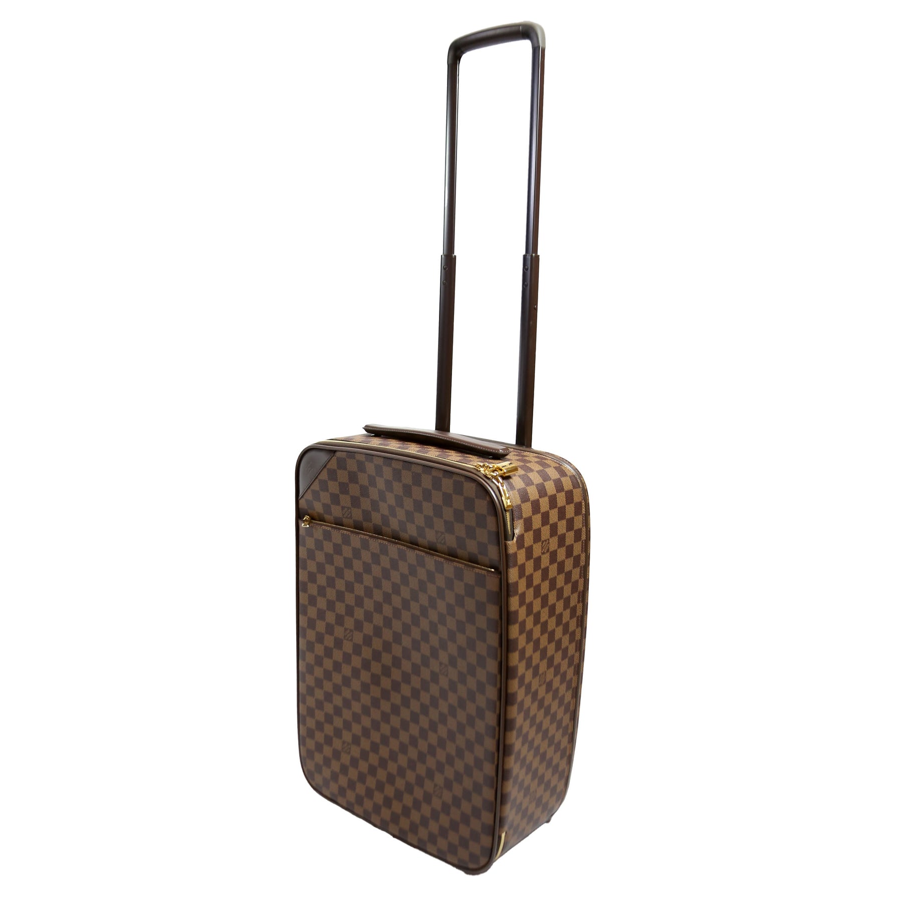 This pre-owned Louis Vuitton Pegase Legere 55 Business is guaranteed 100% authentic. The exterior is in the classic Louis Vuitton Damier Ebene coated canvas.
