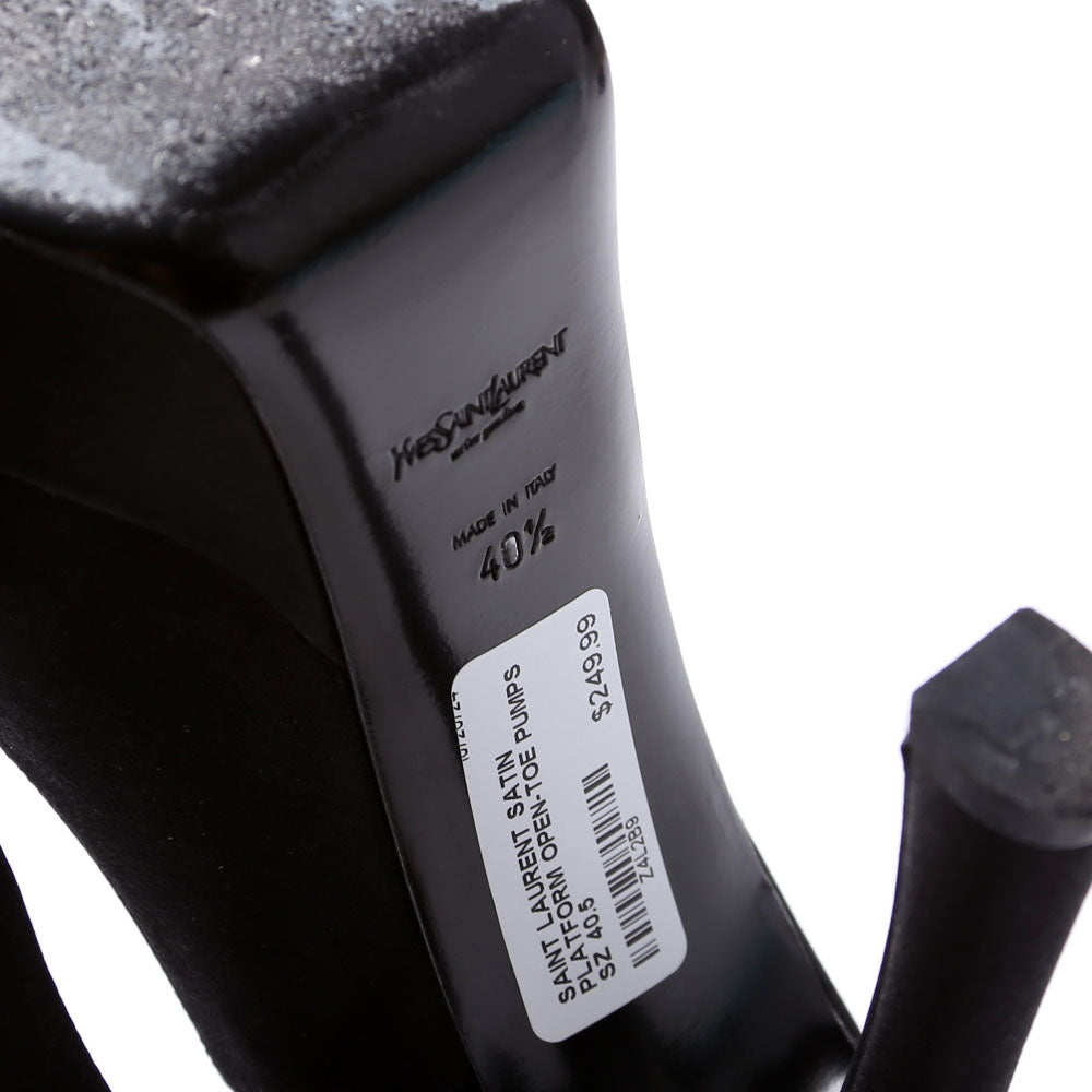 Satin Platform Open-Toe Pumps Size 40.5 Black