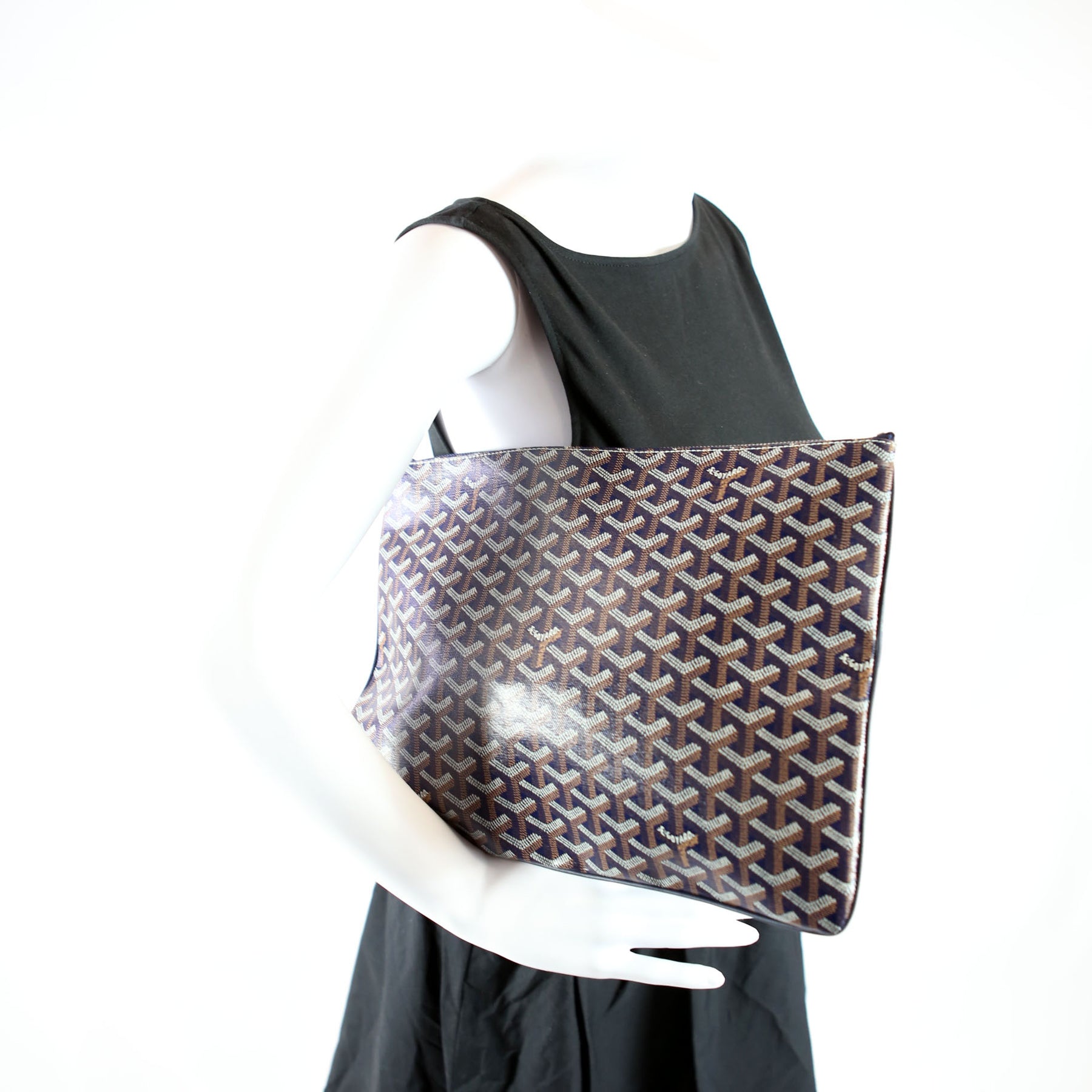 This pre-owned Goyard Senat GM Pouch is guaranteed 100% authentic. The exterior is in the classic Goyard Goyardine Coated Canvas