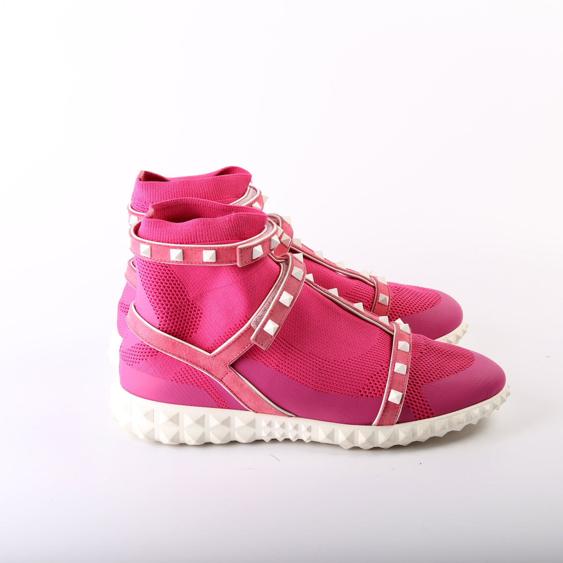 These pre-owned Valentino Tech Knit Fabric Rockstud High Top Sock Sneakers are guaranteed 100% authentic.