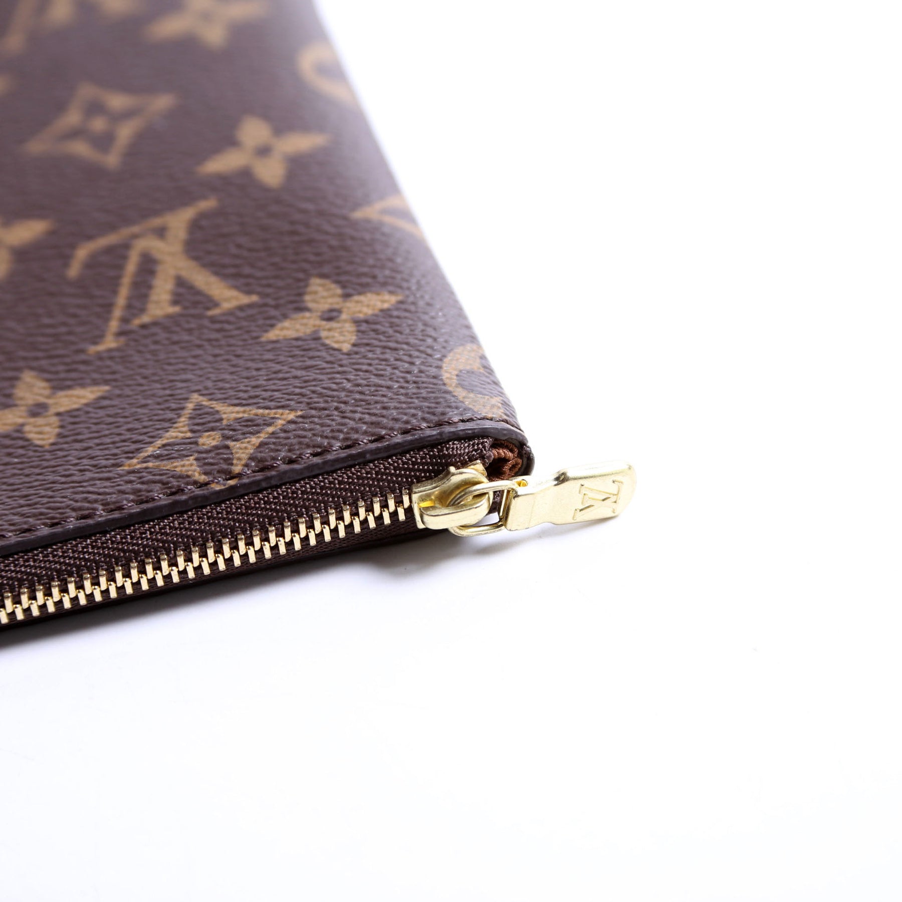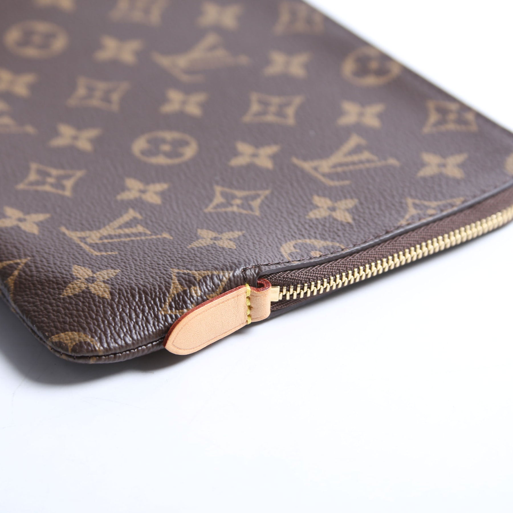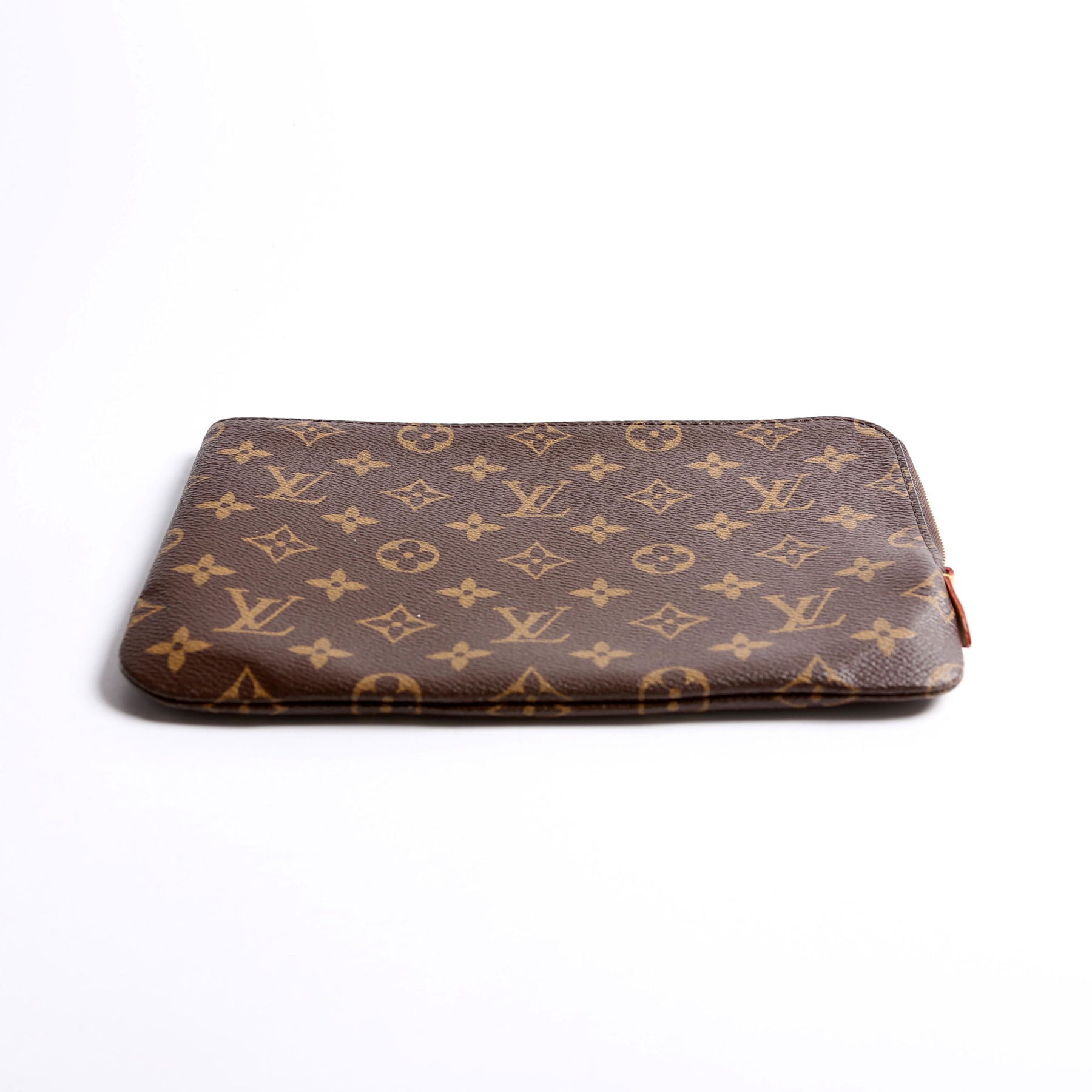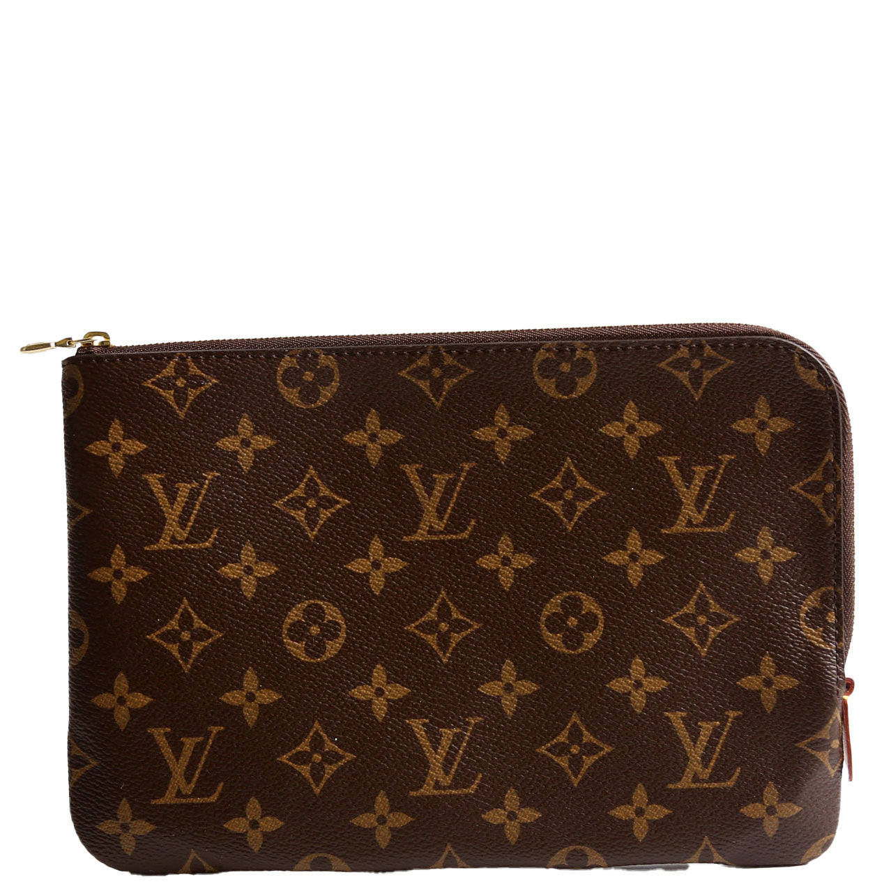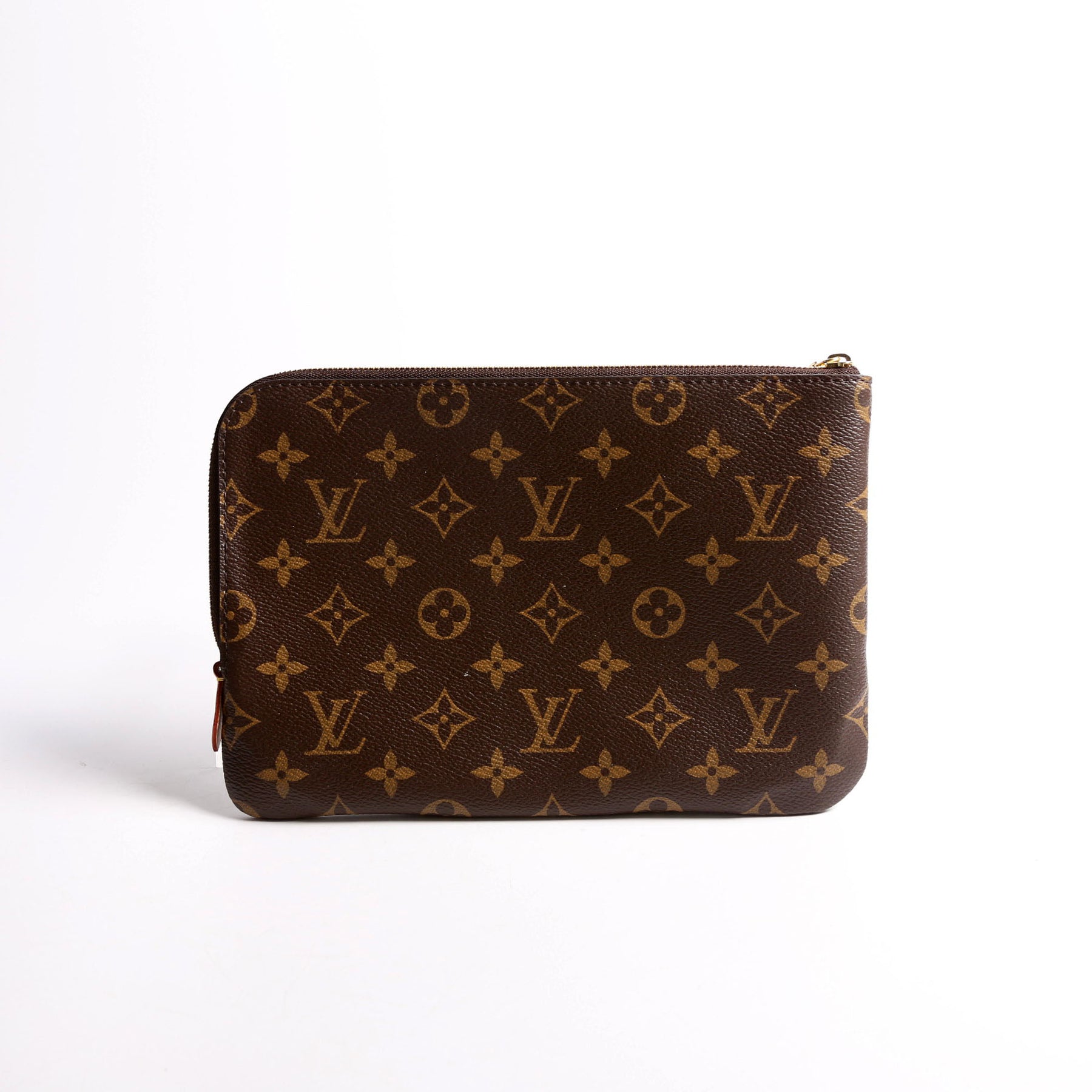 This pre-owned Louis Vuitton Etui Voyage Pouch PM is guaranteed 100% authentic. The exterior is in the classic Louis Vuitton Monogram coated canvas.