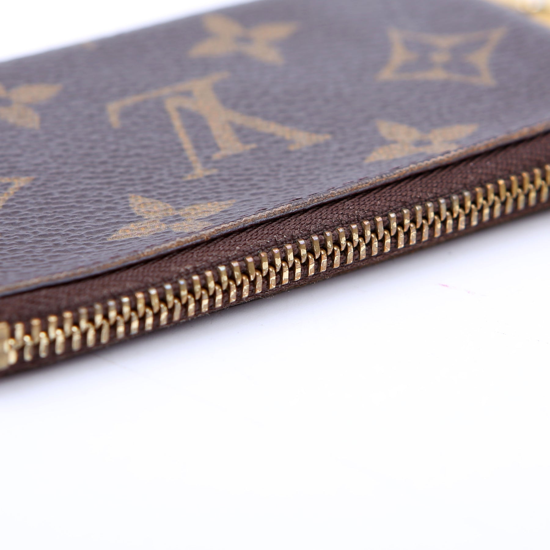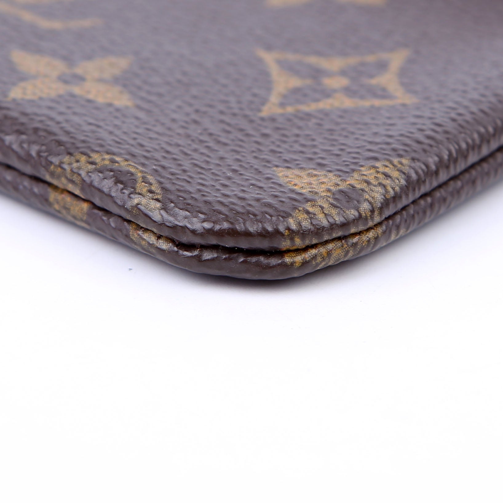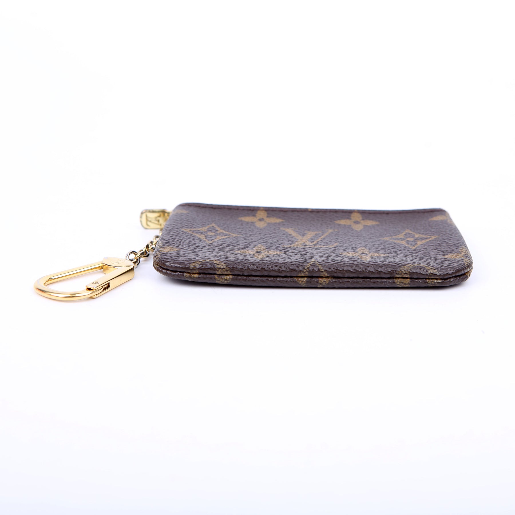 This pre-owned Louis Vuitton Pochette Cles is guaranteed 100% authentic. The exterior is in the classic Louis Vuitton Monogram coated canvas.