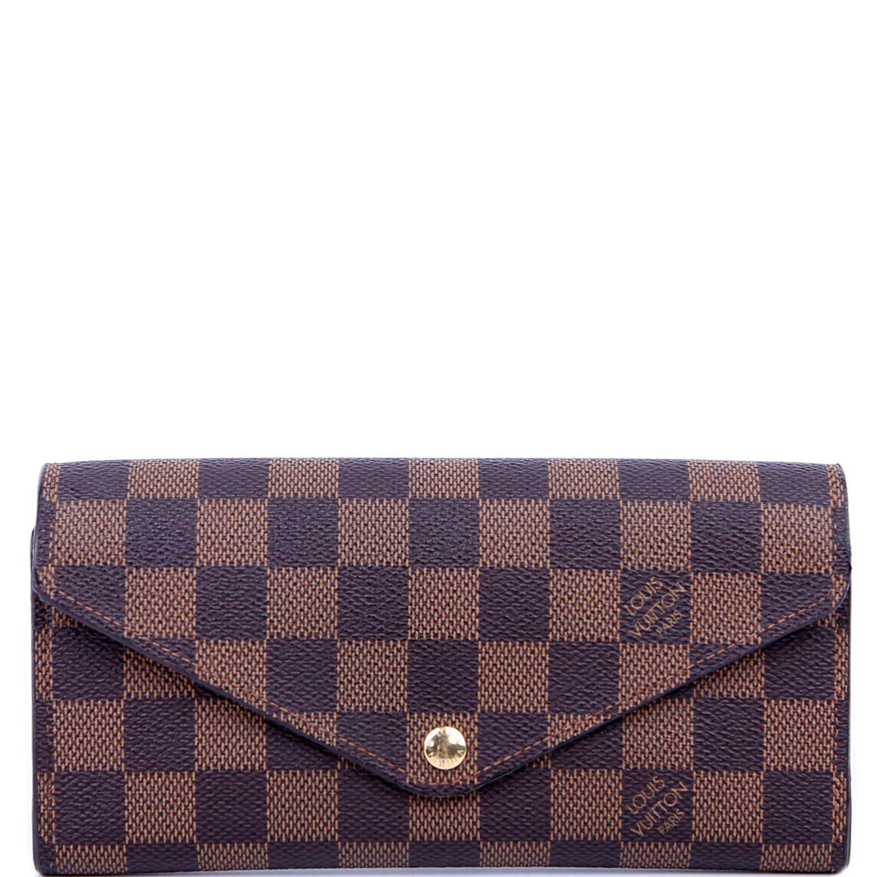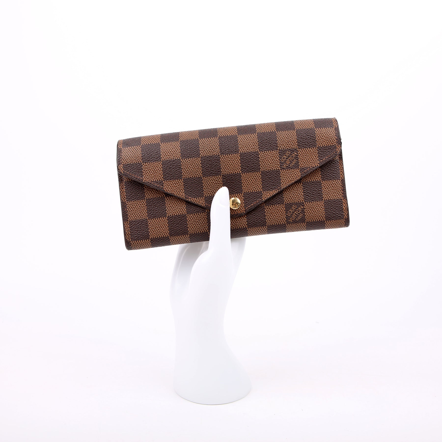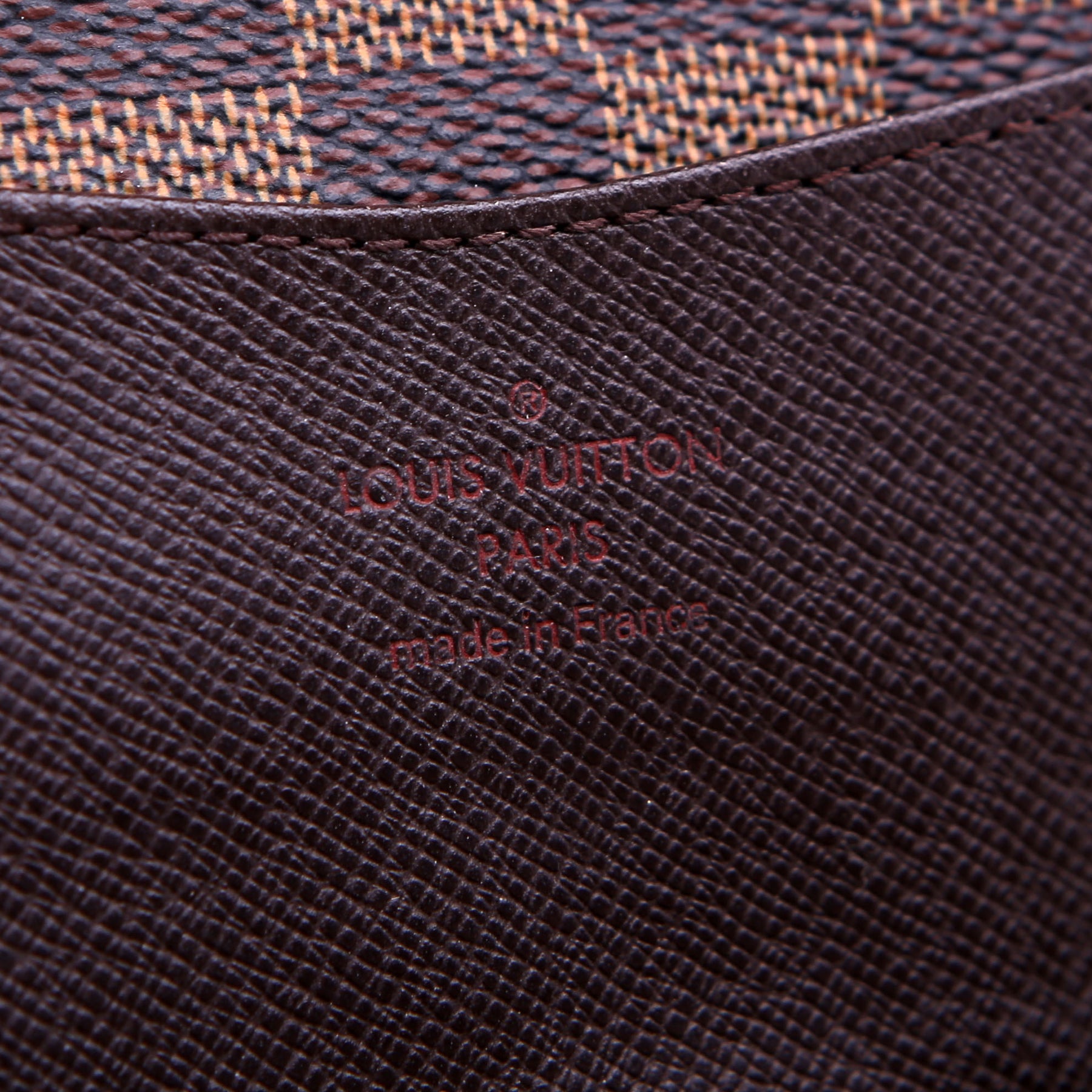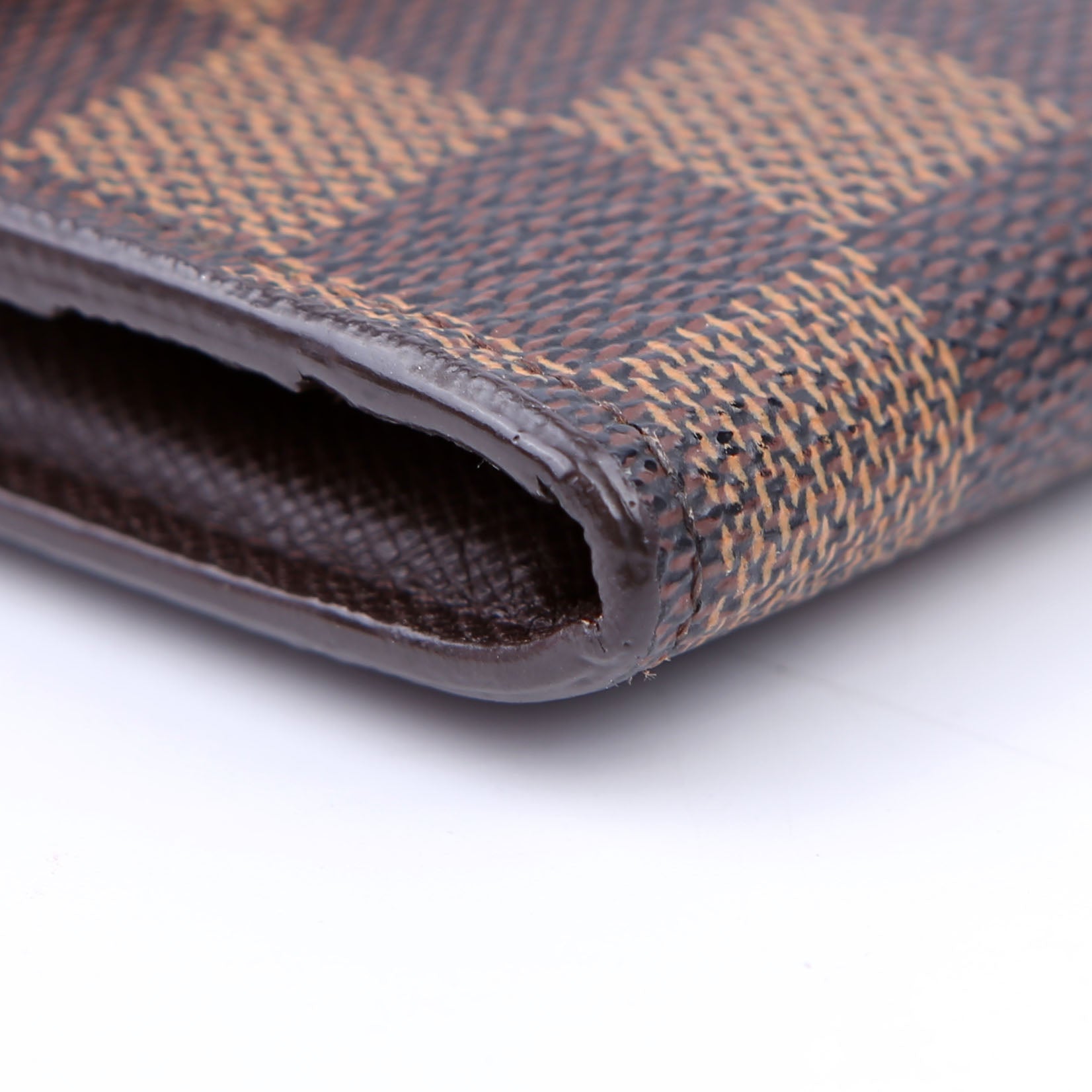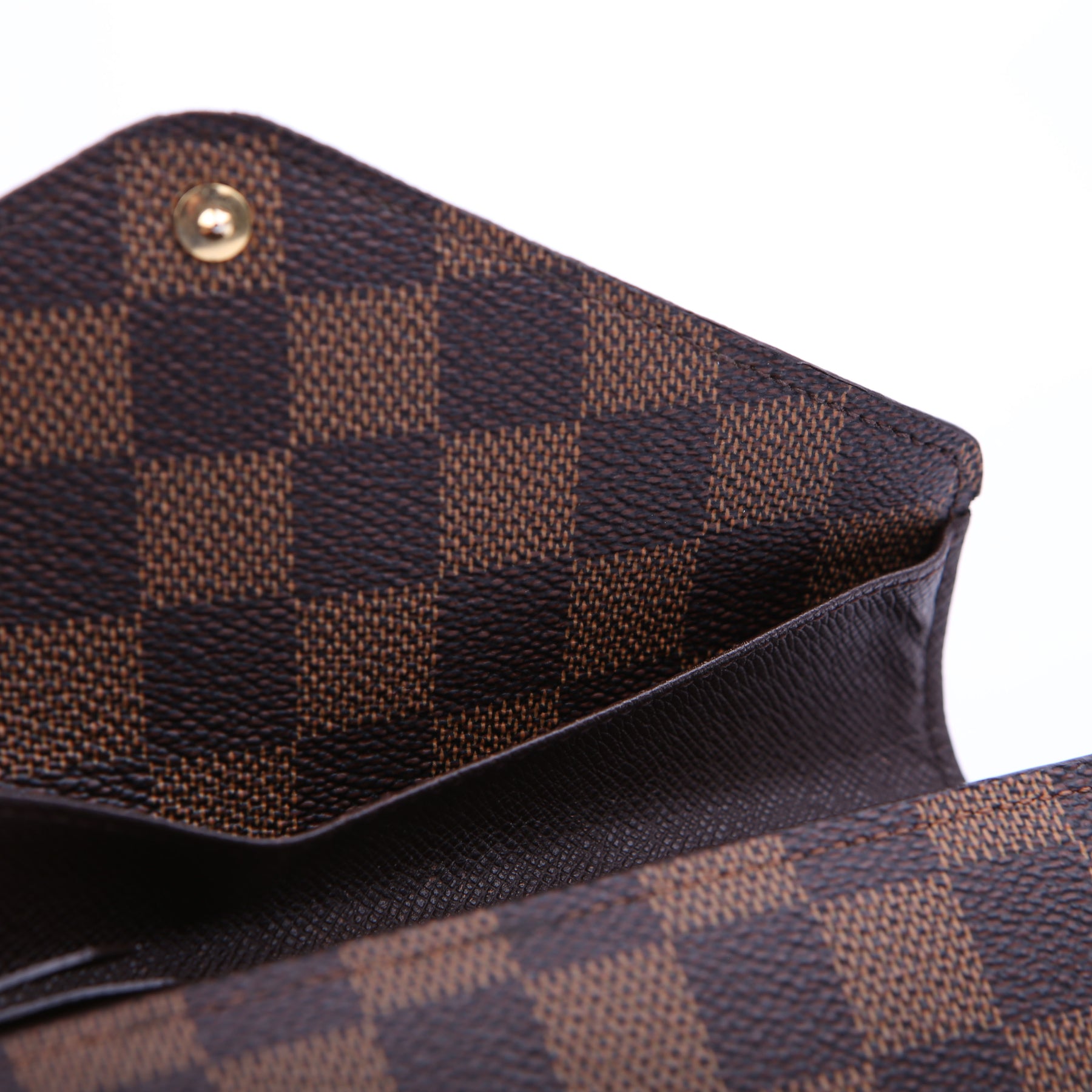 This pre-owned Louis Vuitton Josephine Wallet is guaranteed 100% authentic. The exterior is in the classic Louis Vuitton Damier Ebene coated canvas.