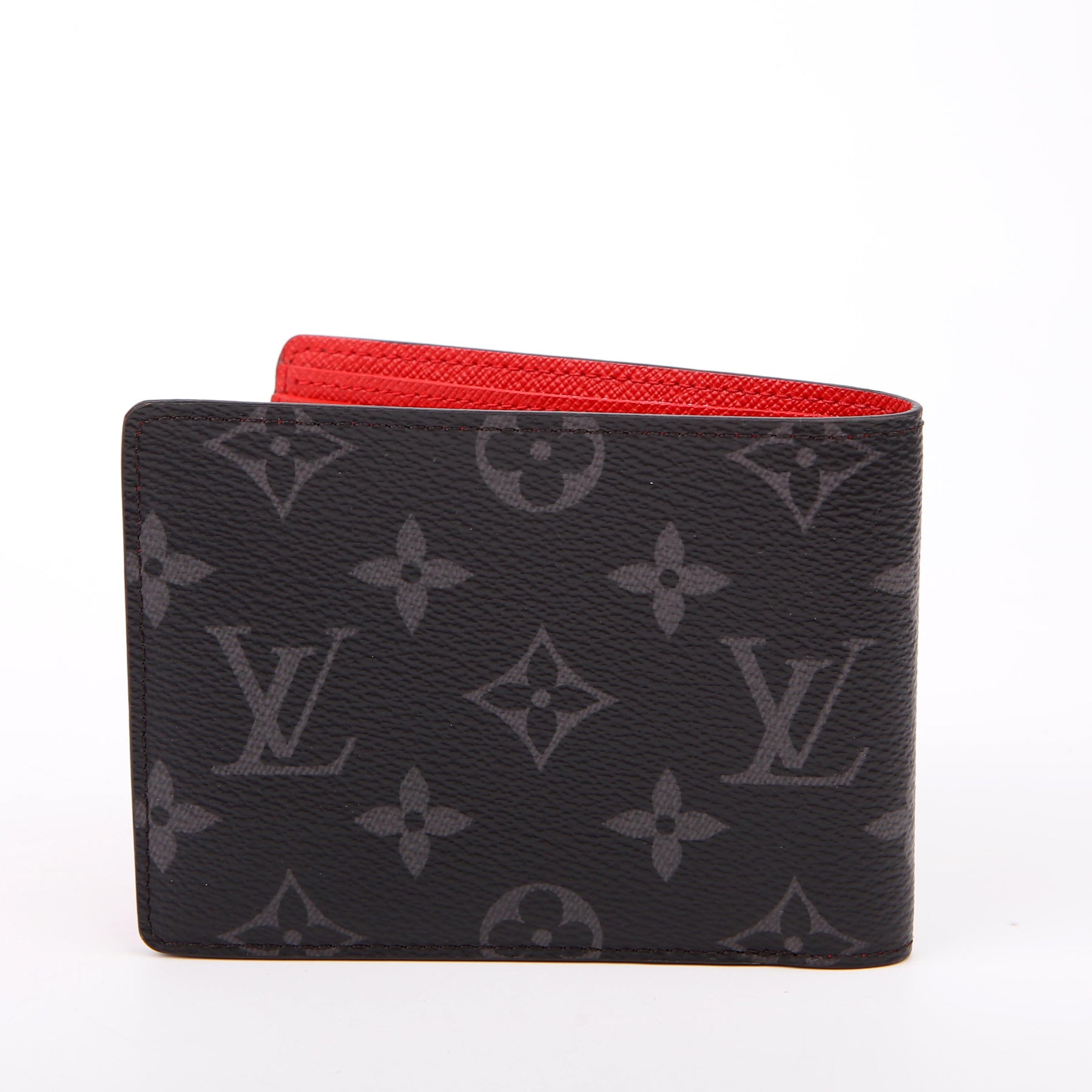 This pre-owned Louis Vuitton Mens Multiple Wallet Space Age is guaranteed 100% authentic. The exterior is in the classic Louis Vuitton Monogram Eclipse coated canvas.