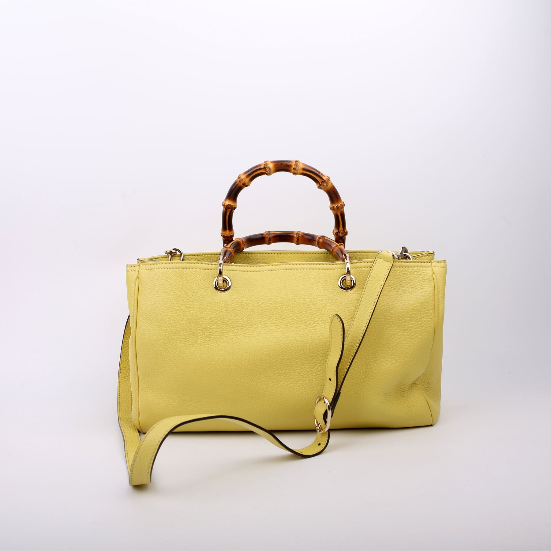 323660 Leather Bamboo Shopper Medium Yellow