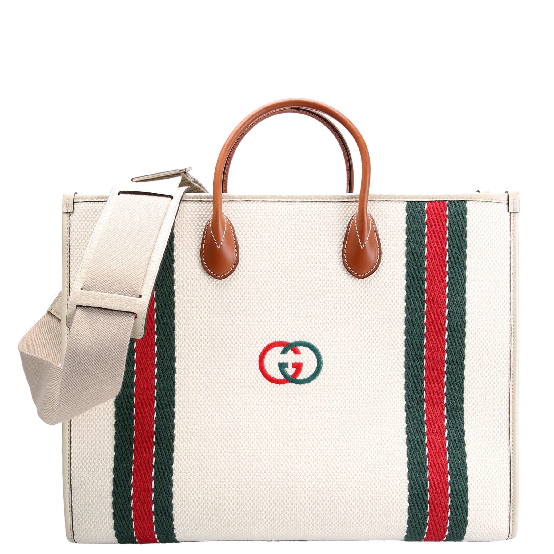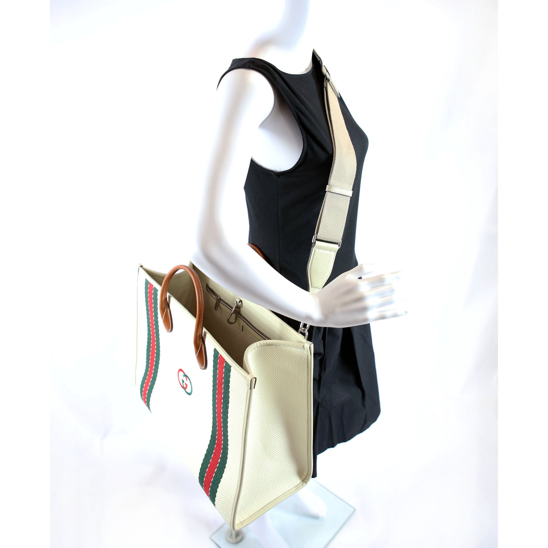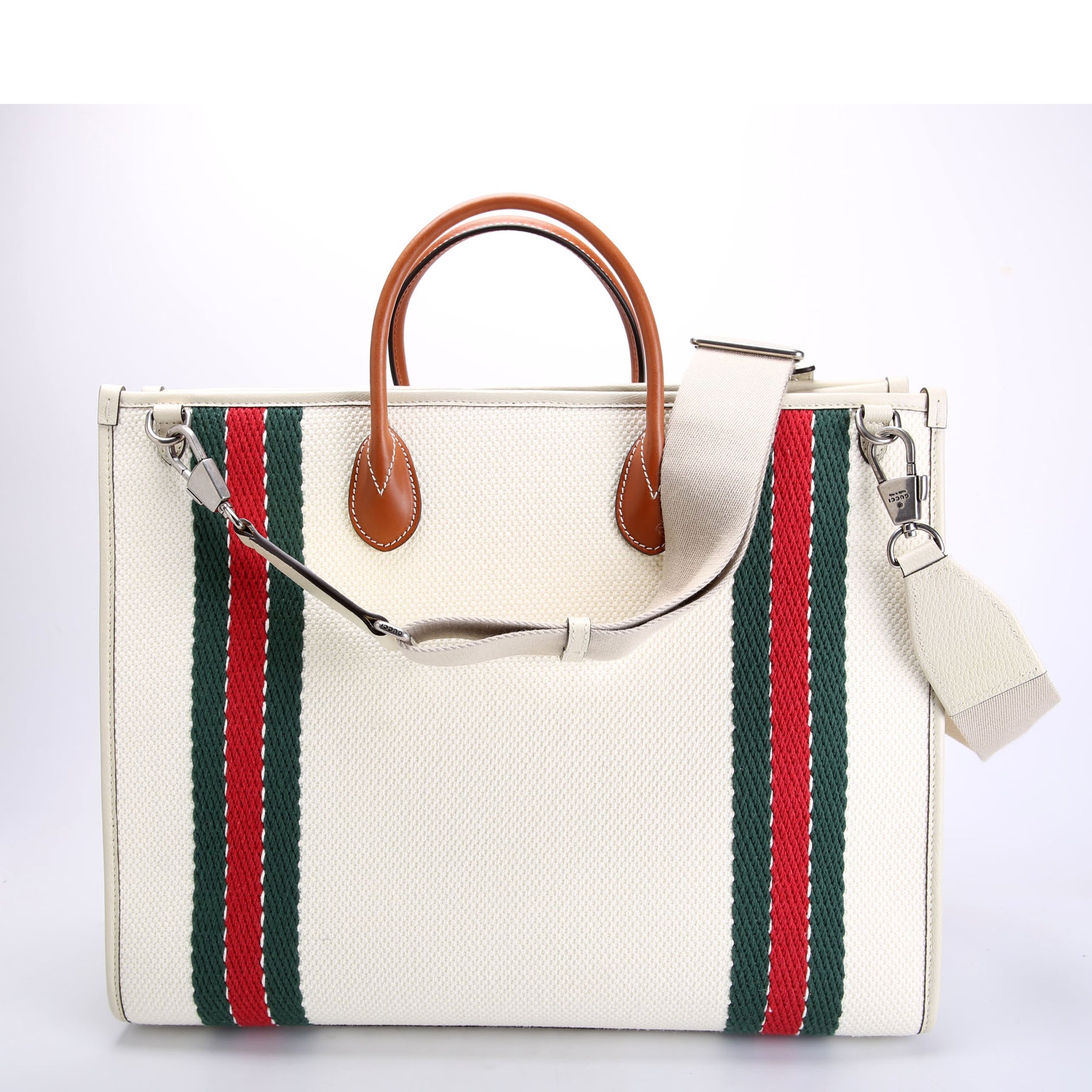 This pre-owned Gucci Interlocking G Web Canvas Tote is guaranteed 100% authentic. T
