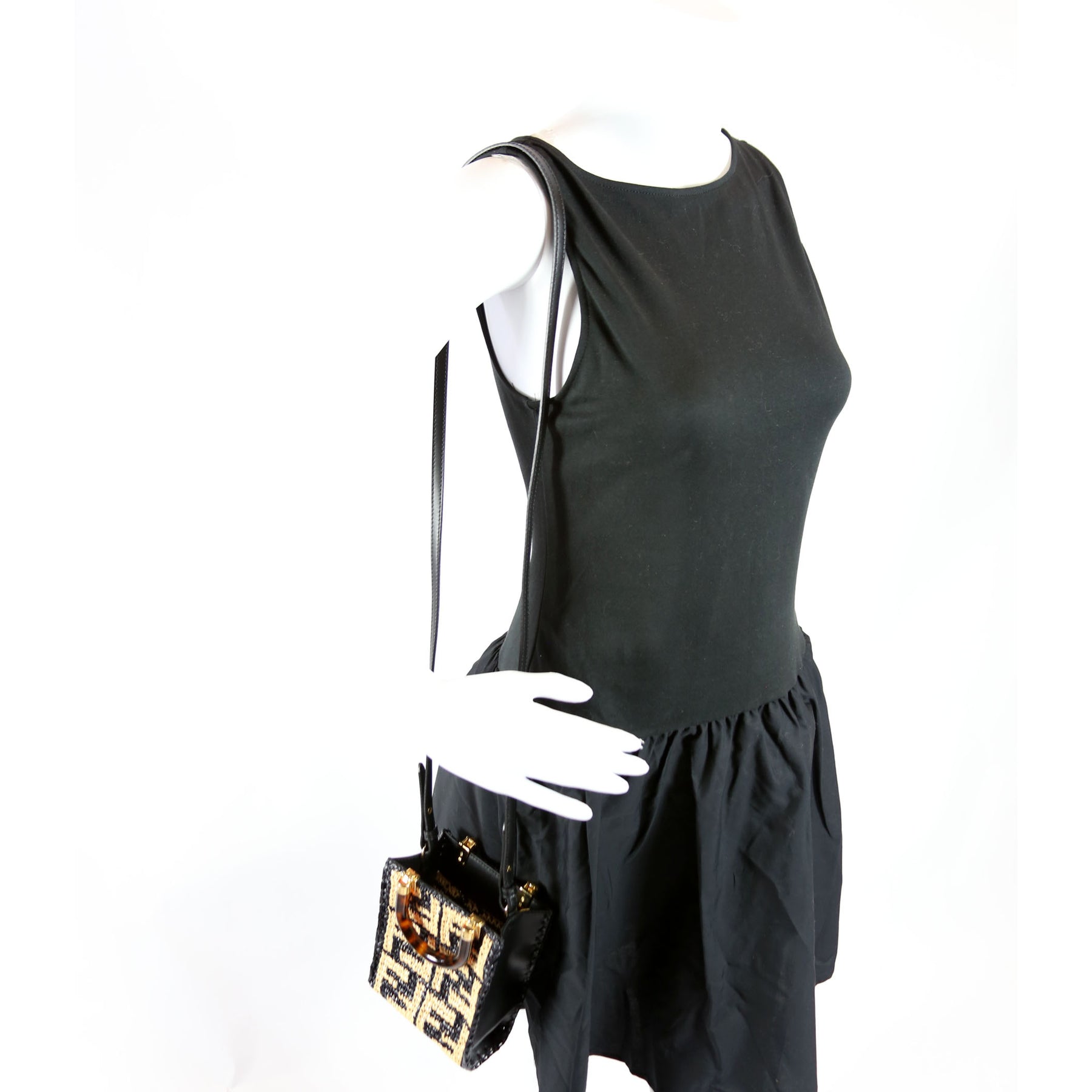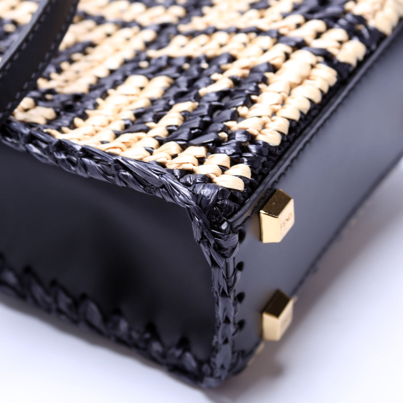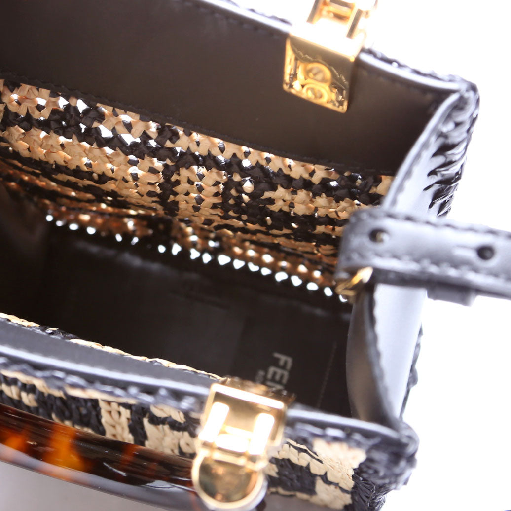8BS051 Raffia FF Mini Sunshine Shopper Black/Tan