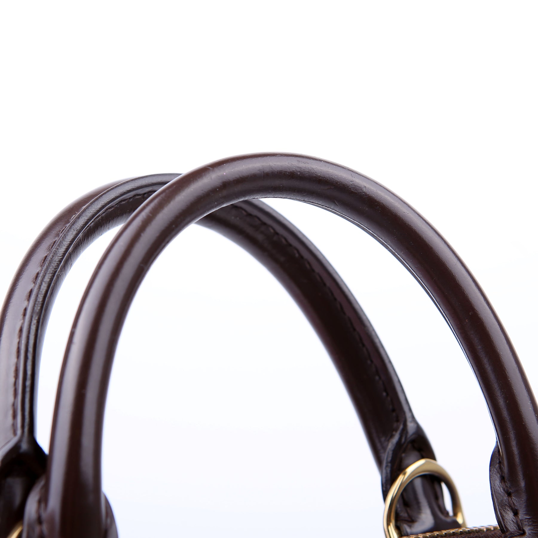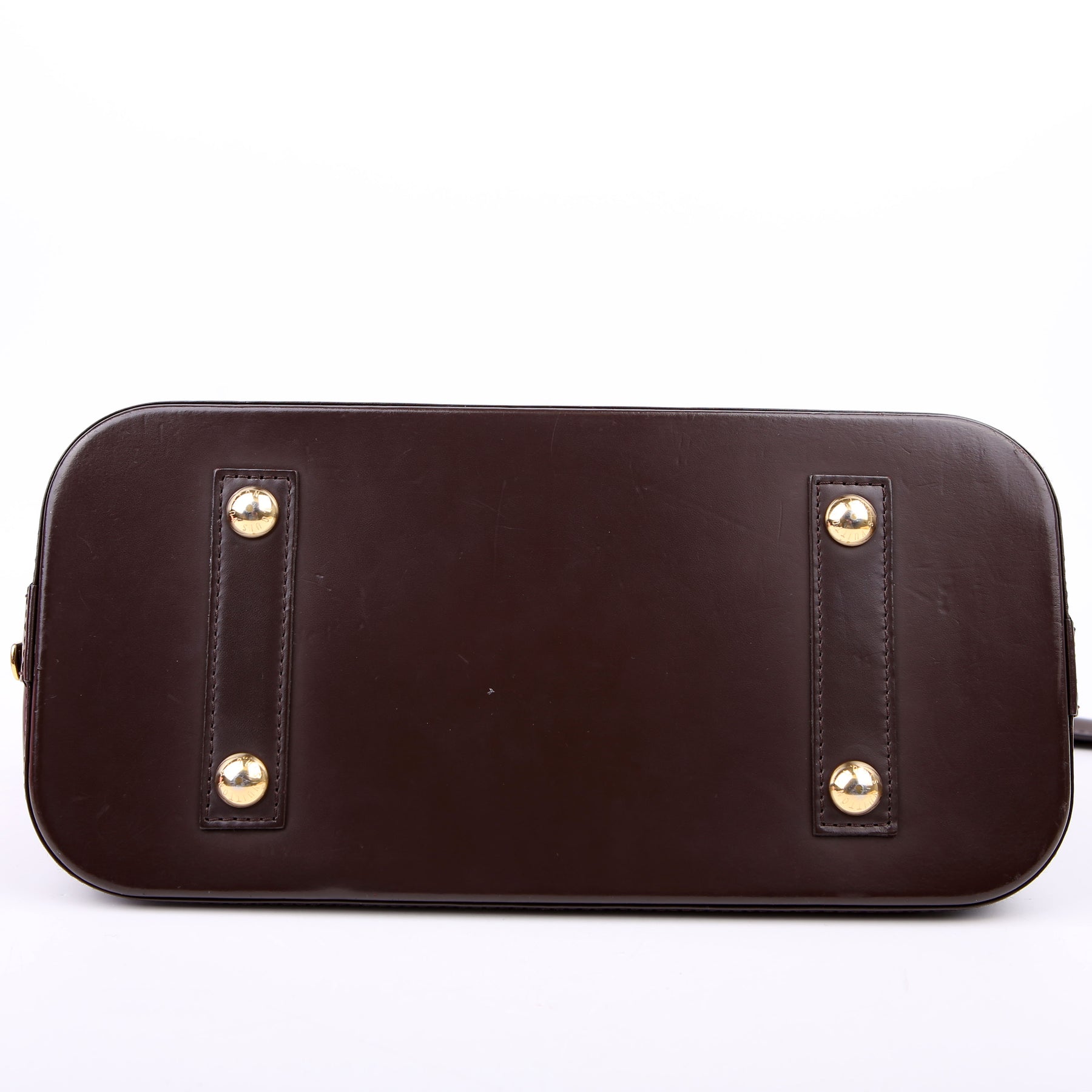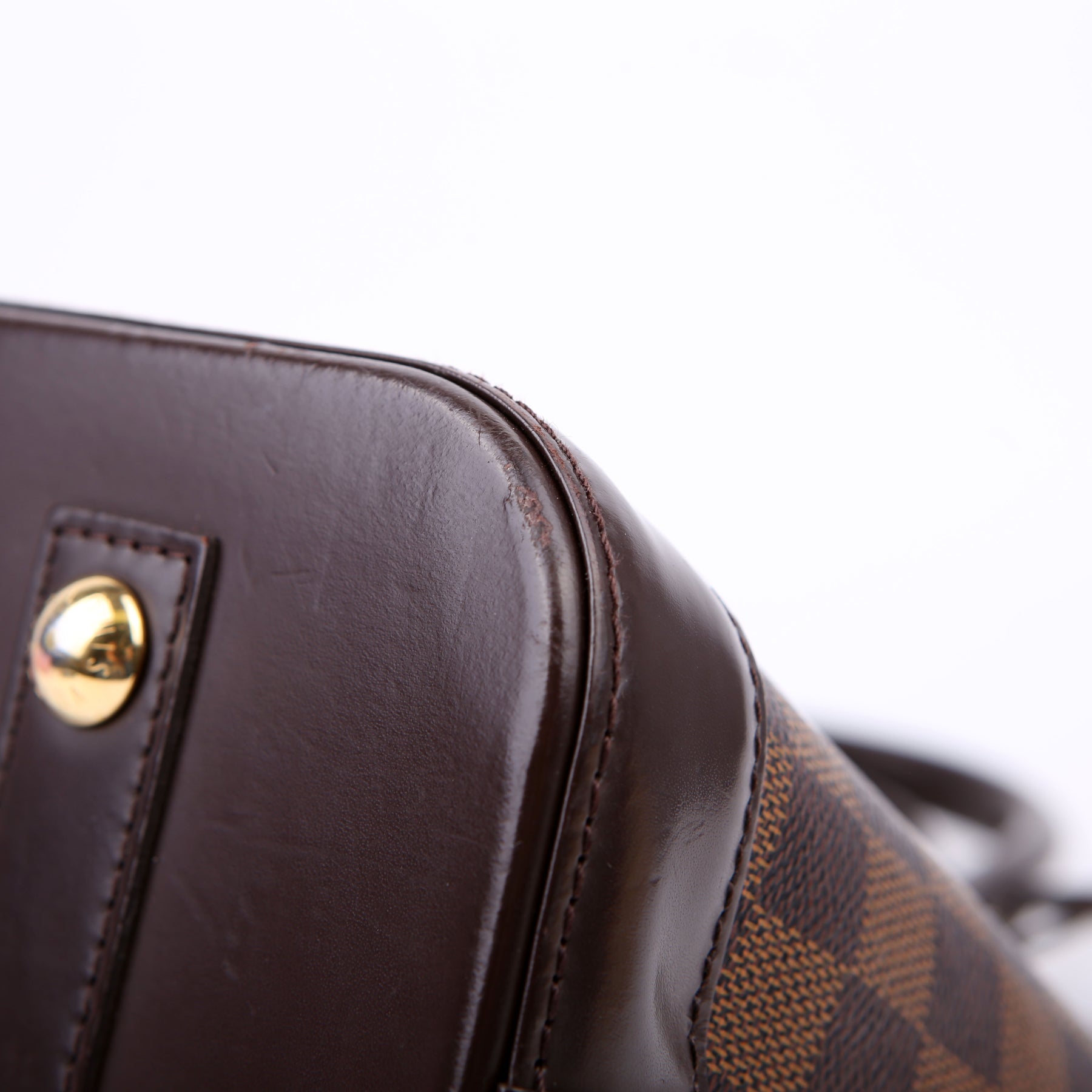 This pre-owned Louis Vuitton Alma PM Newer is guaranteed 100% authentic. The exterior is in the classic Louis Vuitton Damier Ebene coated canvas.