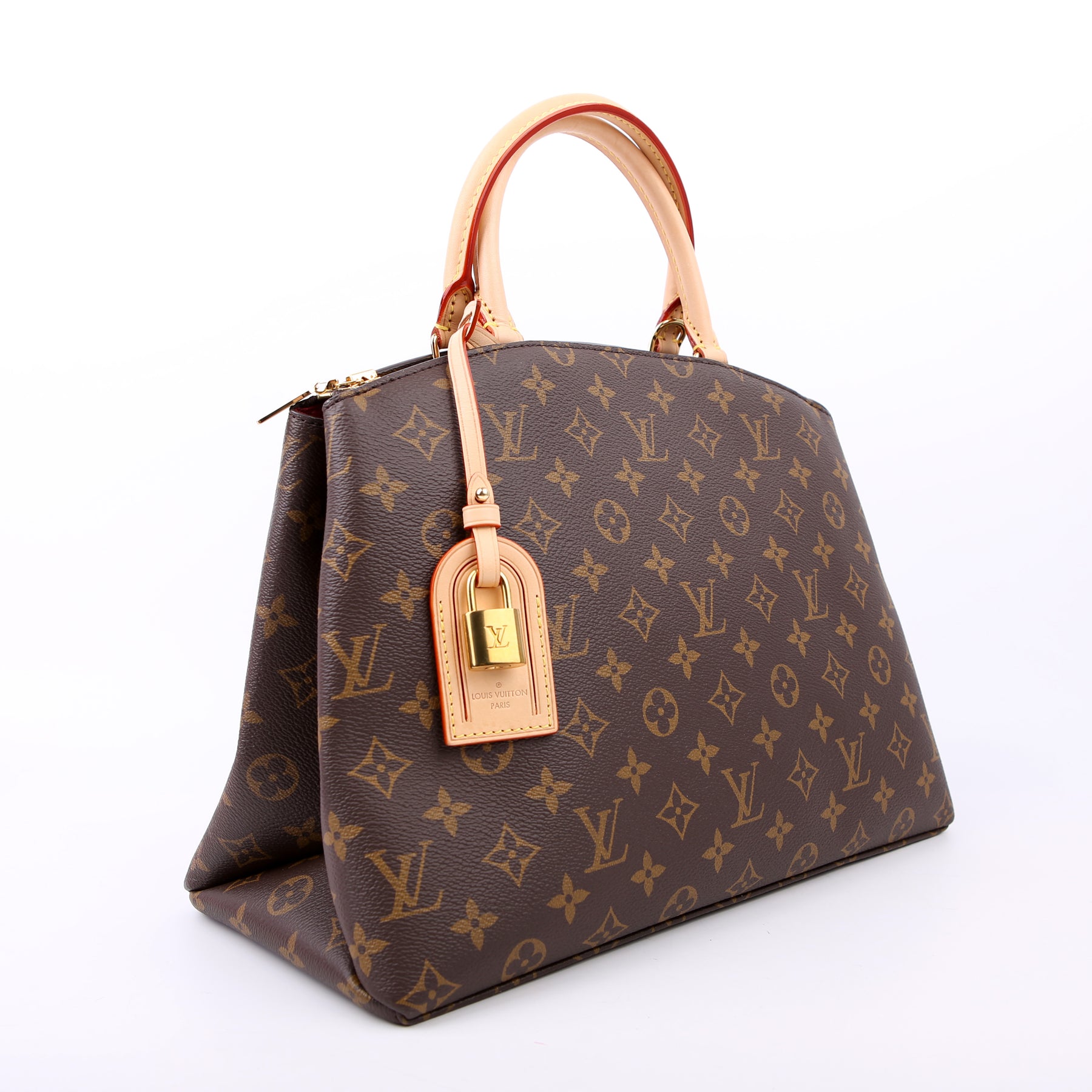 This pre-owned Louis Vuitton Grand Palais MM is guaranteed 100% authentic. The exterior is in the classic Louis Vuitton Monogram coated canvas.