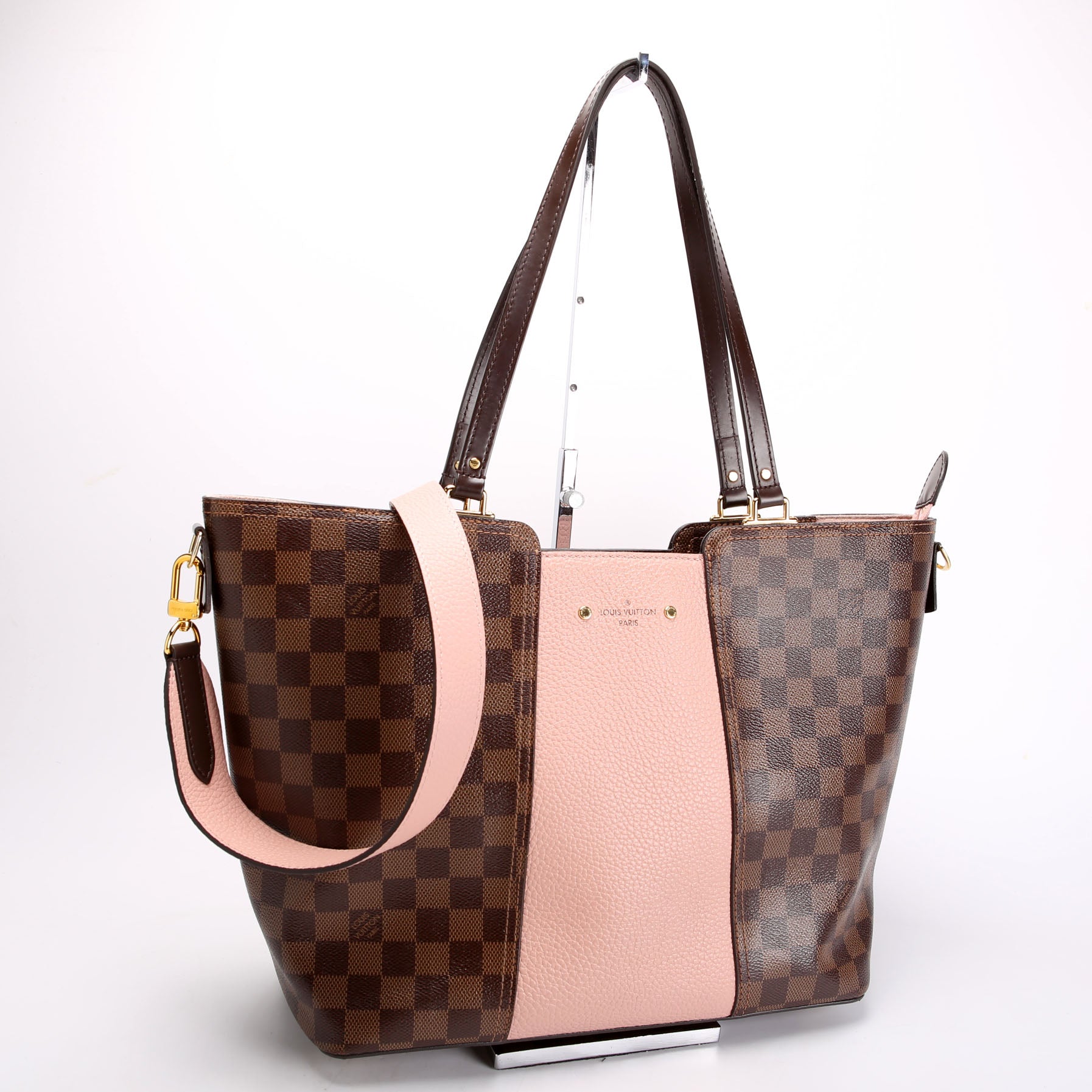 This pre-owned Louis Vuitton Jersey Bag is guaranteed 100% authentic. The exterior is in the classic Louis Vuitton Ebene Coated Canvas.