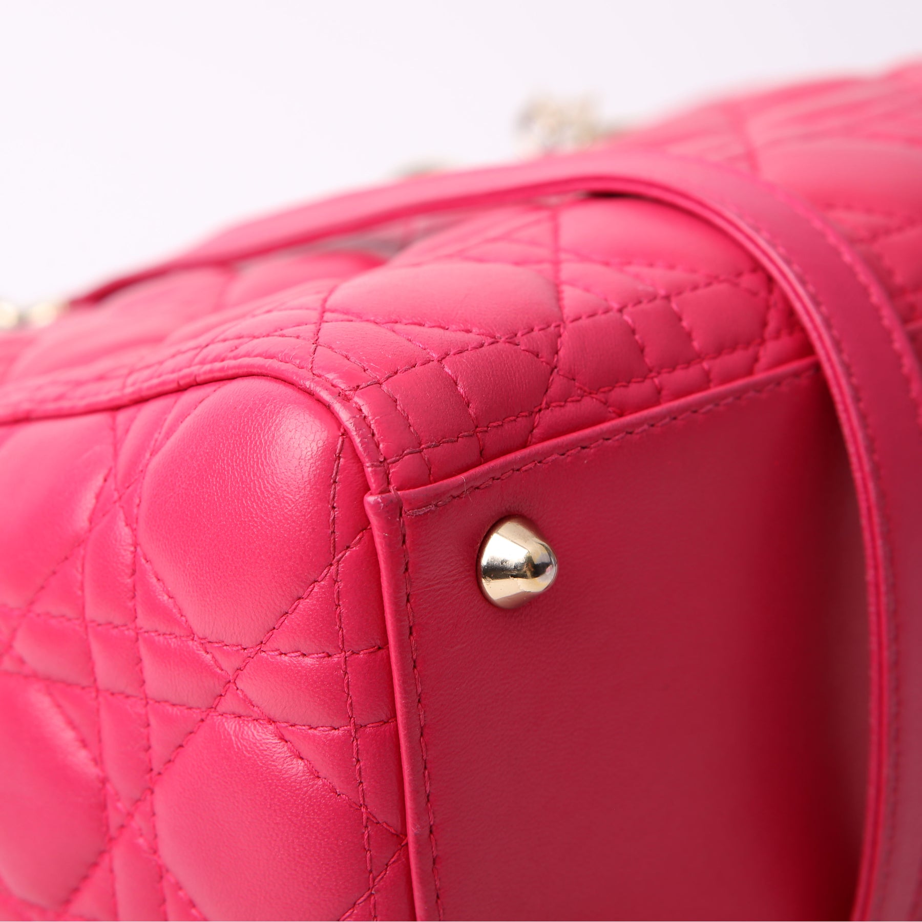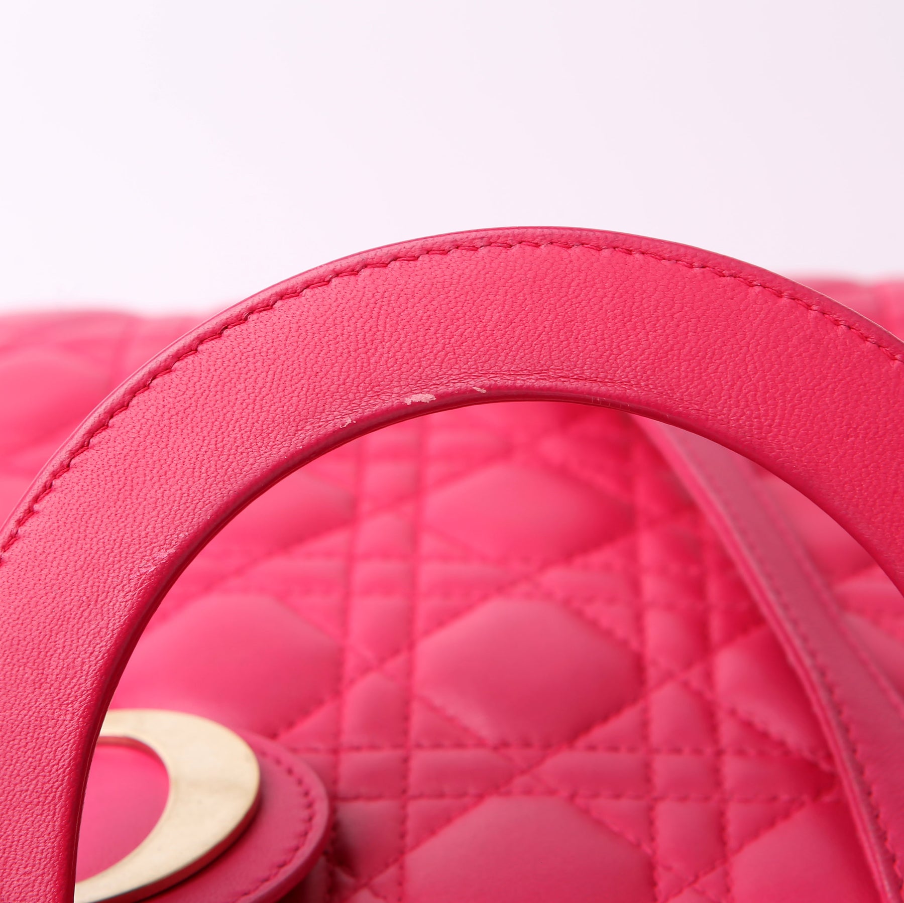 This pre-owned Lady Dior Large is guaranteed 100% authentic. The exterior is in the classic Lambskin leather.