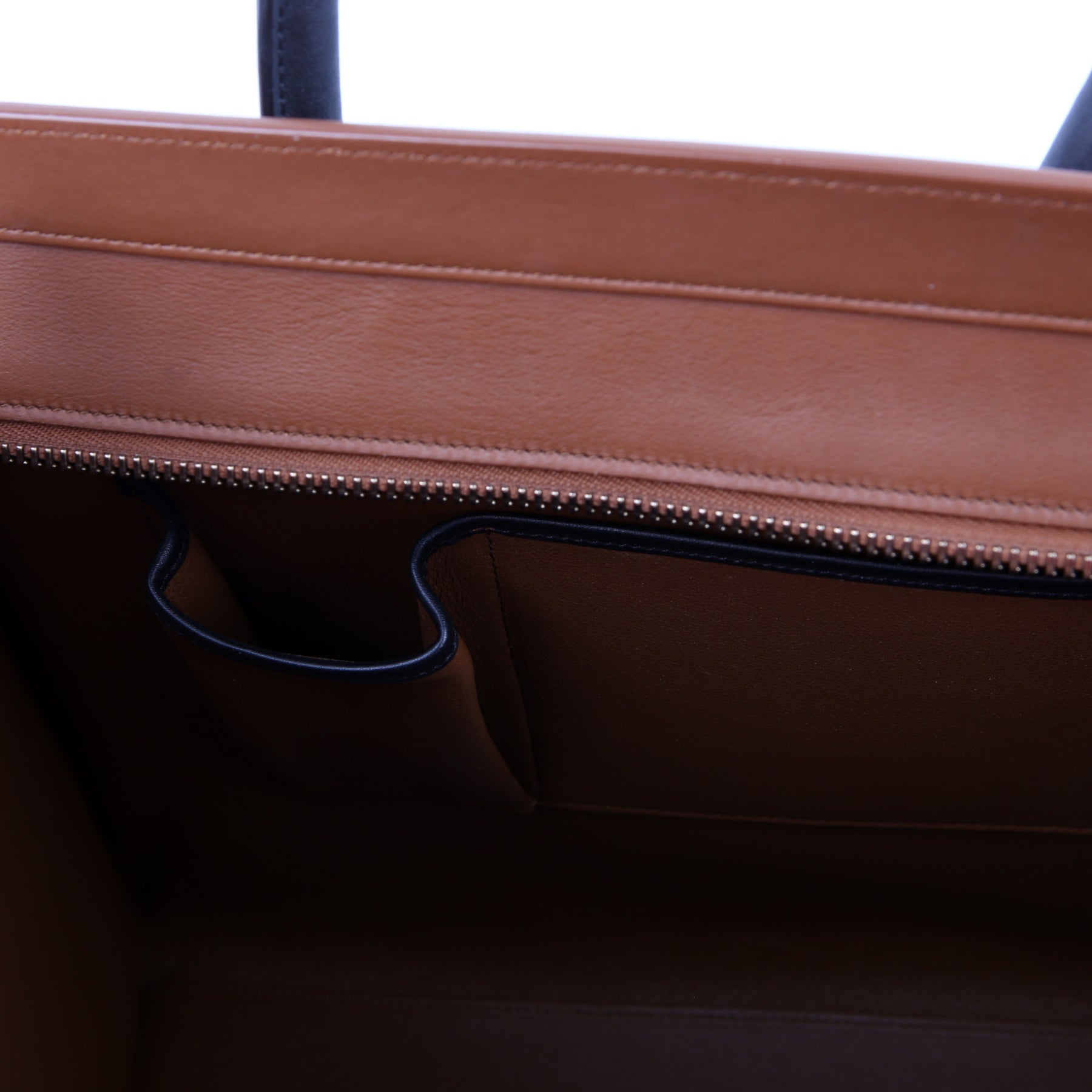 Interior: The interior is clean, and features one zip closure pocket and two open pockets.
